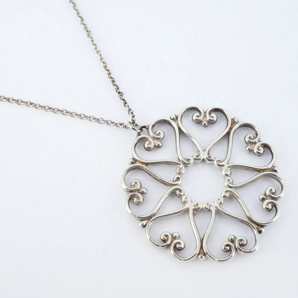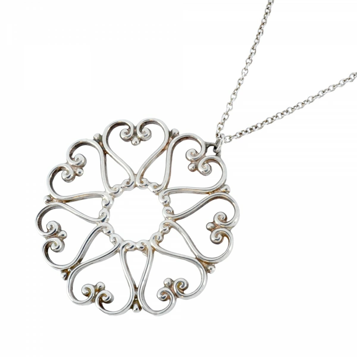 【5job0673】ティファニー ネックレス ヴェネチア/ゴルドーニ/メダリオン ハートモチーフ シルバー925【中古】レディース