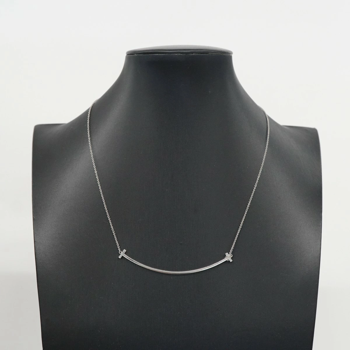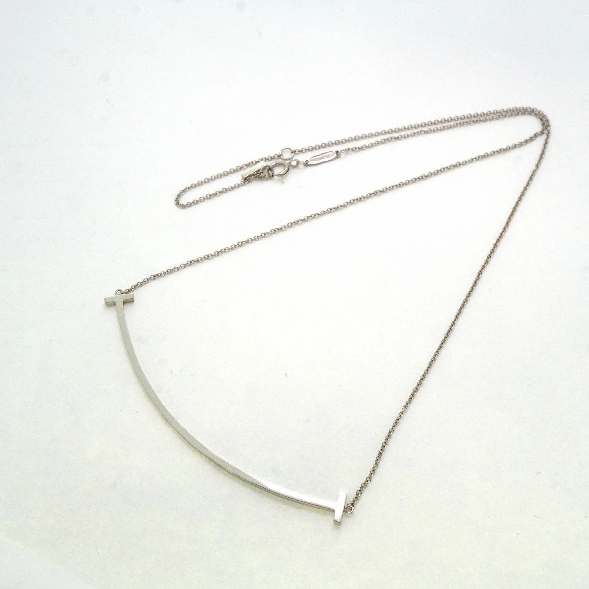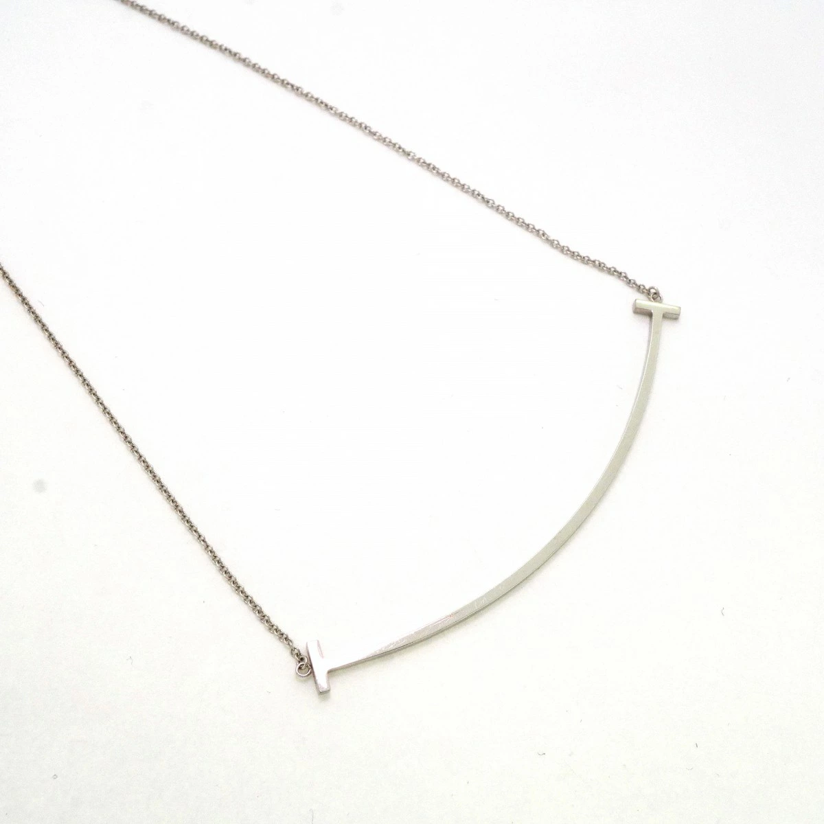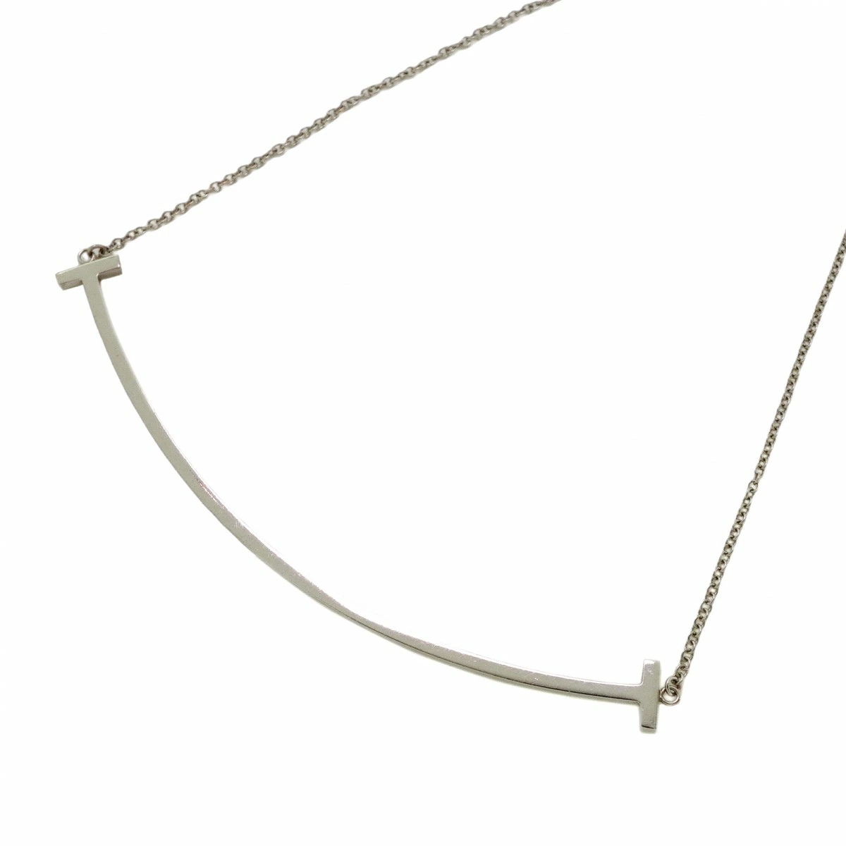【5job0699】ティファニー ネックレス Tスマイル ラージ K18WG ホワイトゴールド【中古】レディース