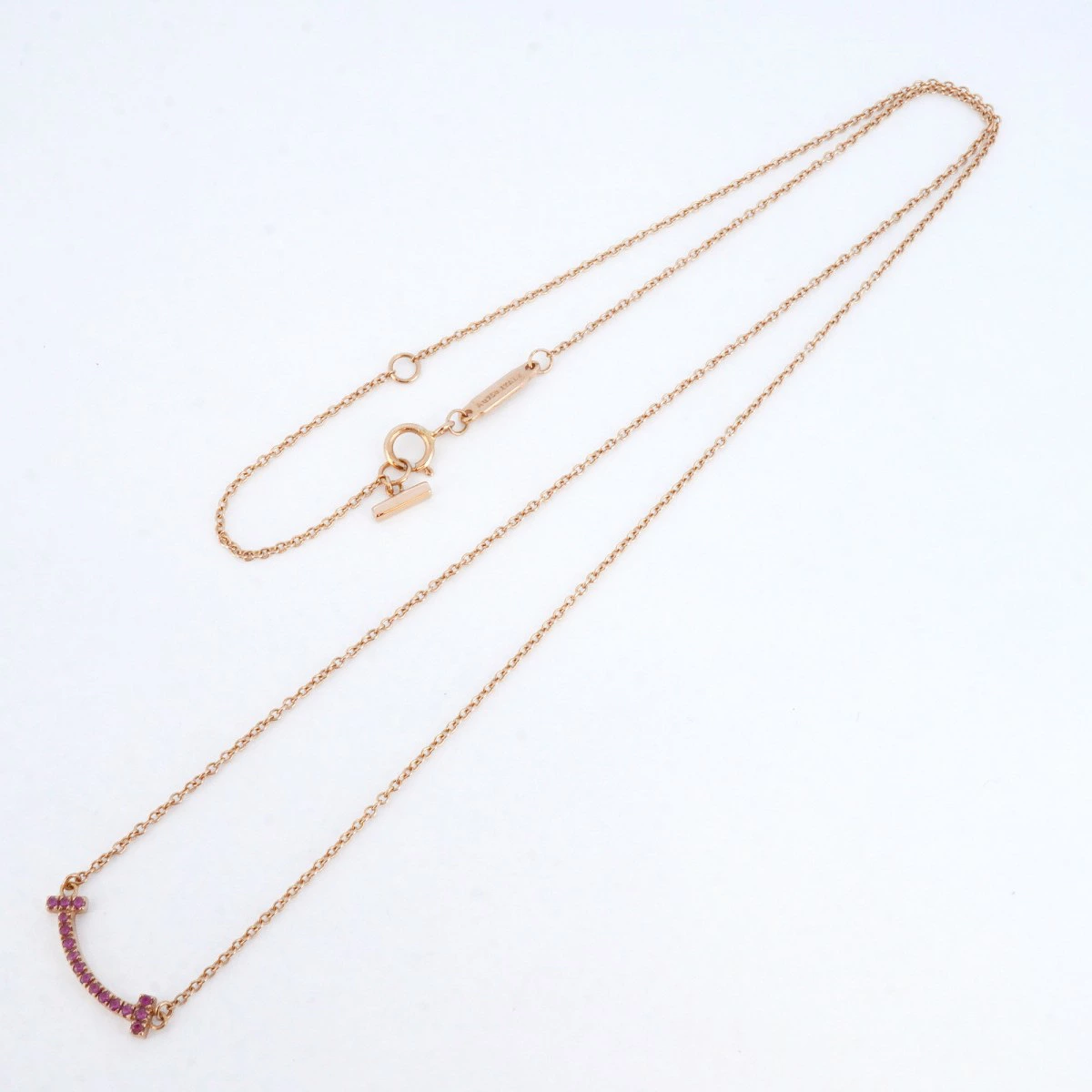 【5job0712】ティファニー ネックレス Tスマイル ミニ K18PG ピンクゴールド ピンクサファイア【中古】レディース