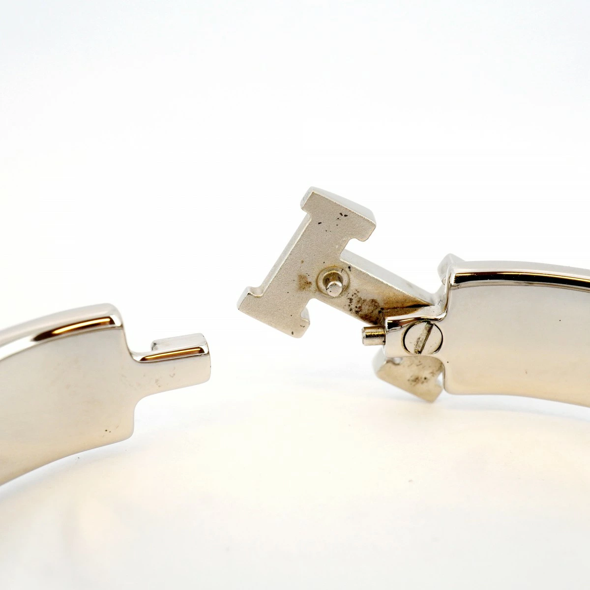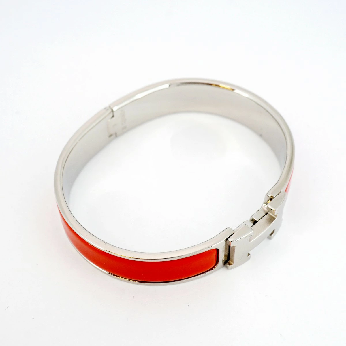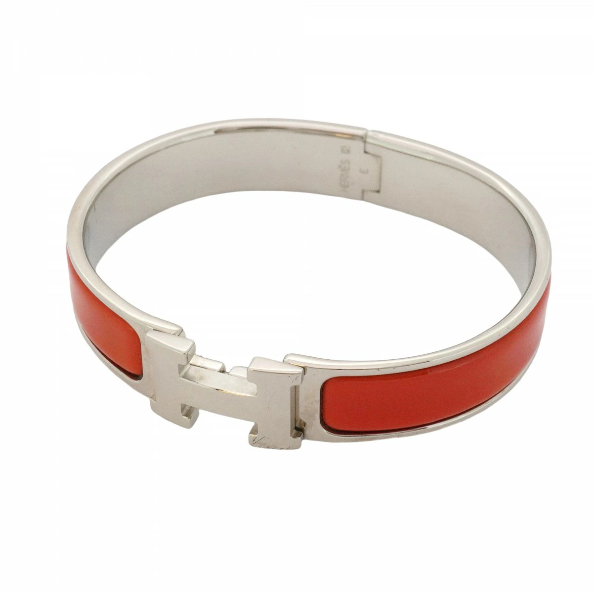 【5jpb0093】エルメス バングル クリッククラックPM メタル シルバー レッド【中古】レディース
