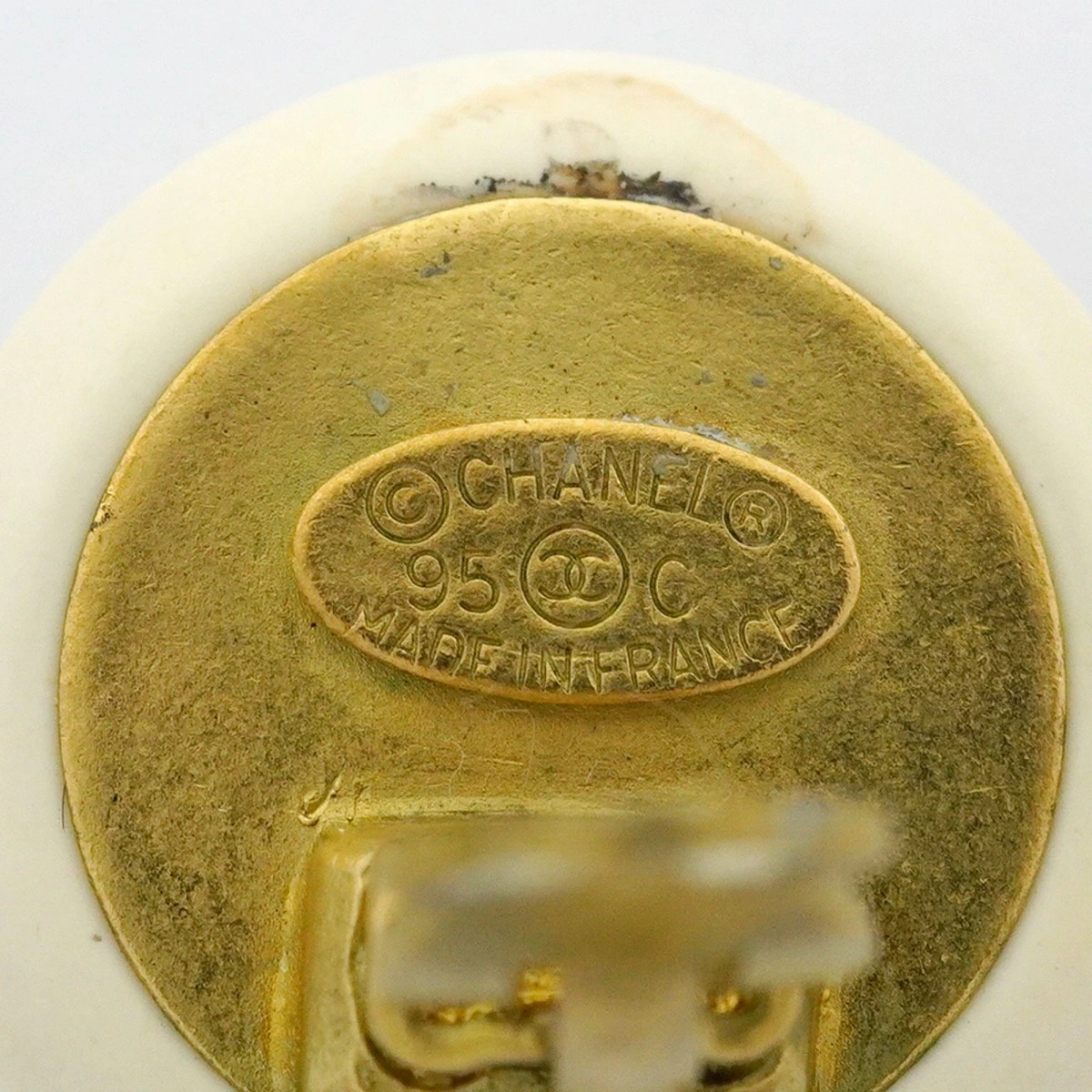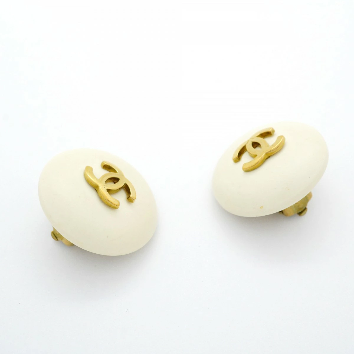 【5jpb0142】シャネル イヤリング ヴィンテージ ココマーク 丸型 サークル GPメッキ ゴールド ホワイト【中古】レディース