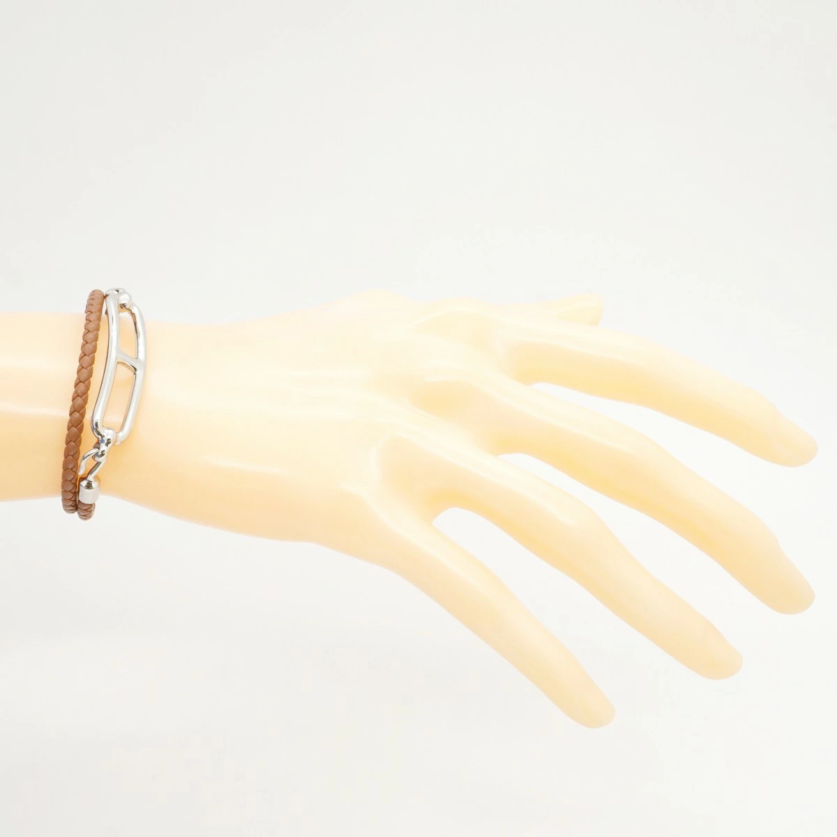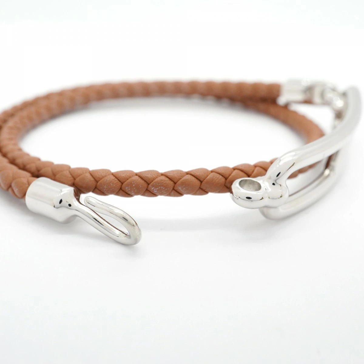 【5jpb0155】エルメス ブレスレット ルリ/ドゥブルトゥール メタル レザー シルバー ブラウン【中古】レディース