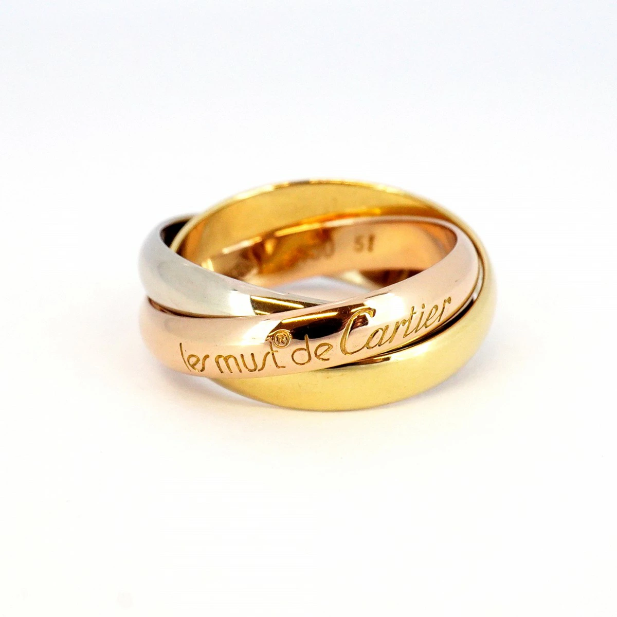 【5jpb0181】カルティエ リング トリニティ クラシックモデル K18YG イエローゴールド K18WG ホワイトゴールド K18PG ピンクゴールド #51【中古】レディース