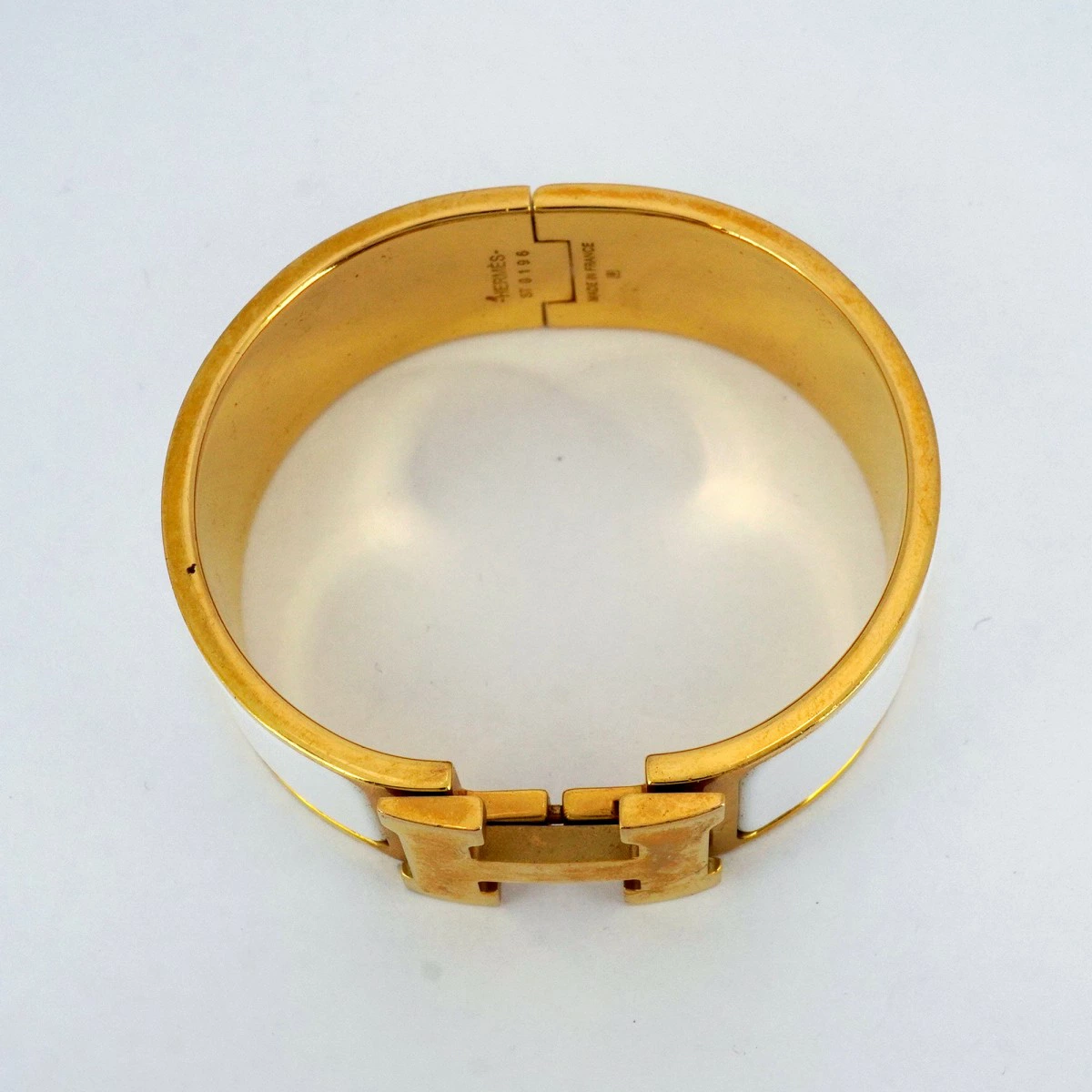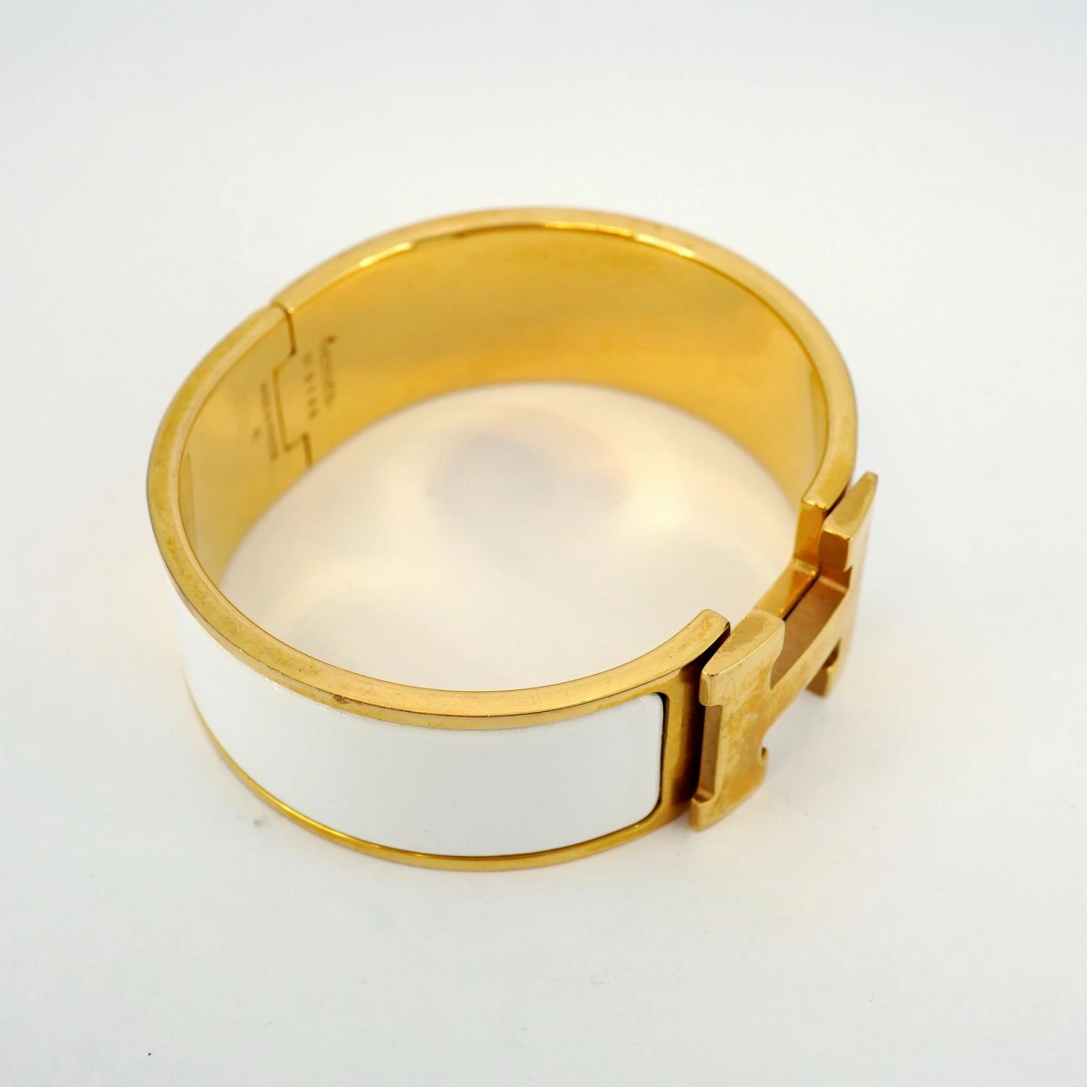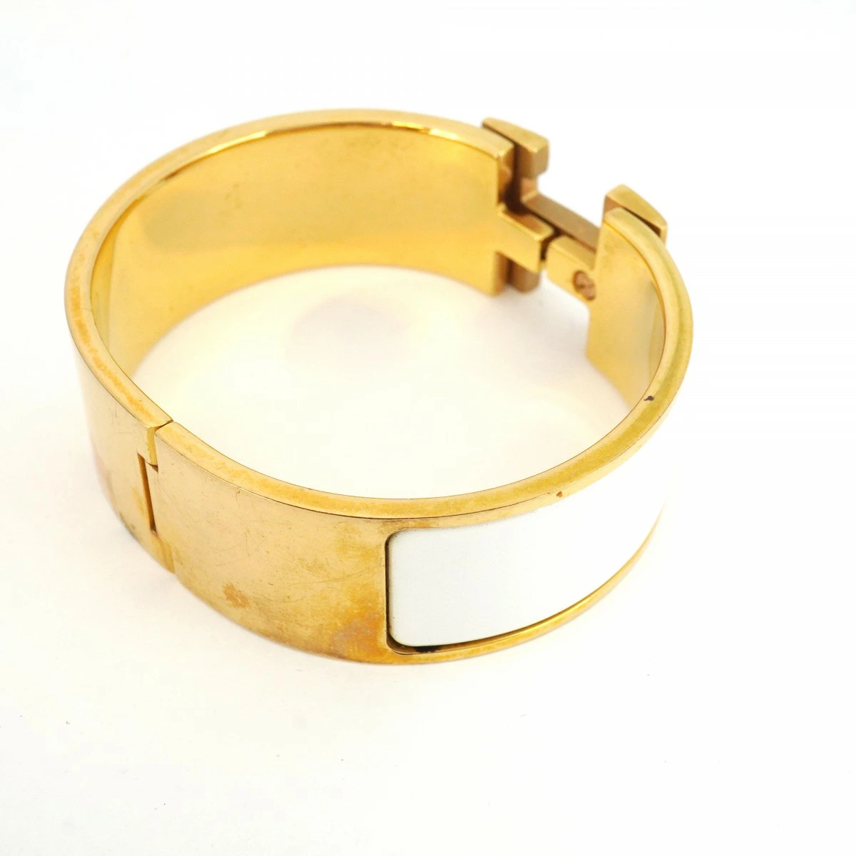 【5jpb0203】エルメス バングル クリッククラックGM GPメッキ ゴールド ホワイト【中古】レディース