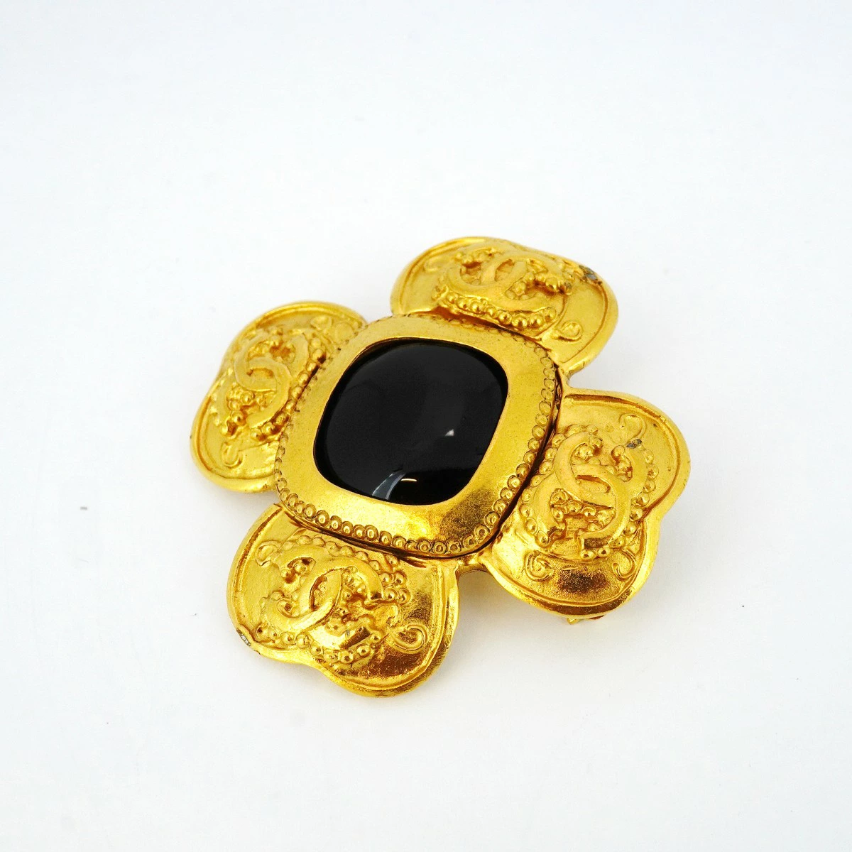 【5jpb0257】シャネル ブローチ ヴィンテージ ココマーク GPメッキ ゴールド ブラック【中古】レディース