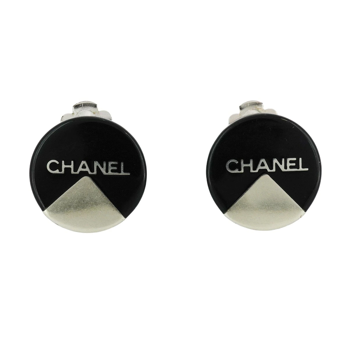 【5jpb0294】シャネル イヤリング シャネルロゴ 丸型 サークル メタル シルバー ブラック【中古】レディース