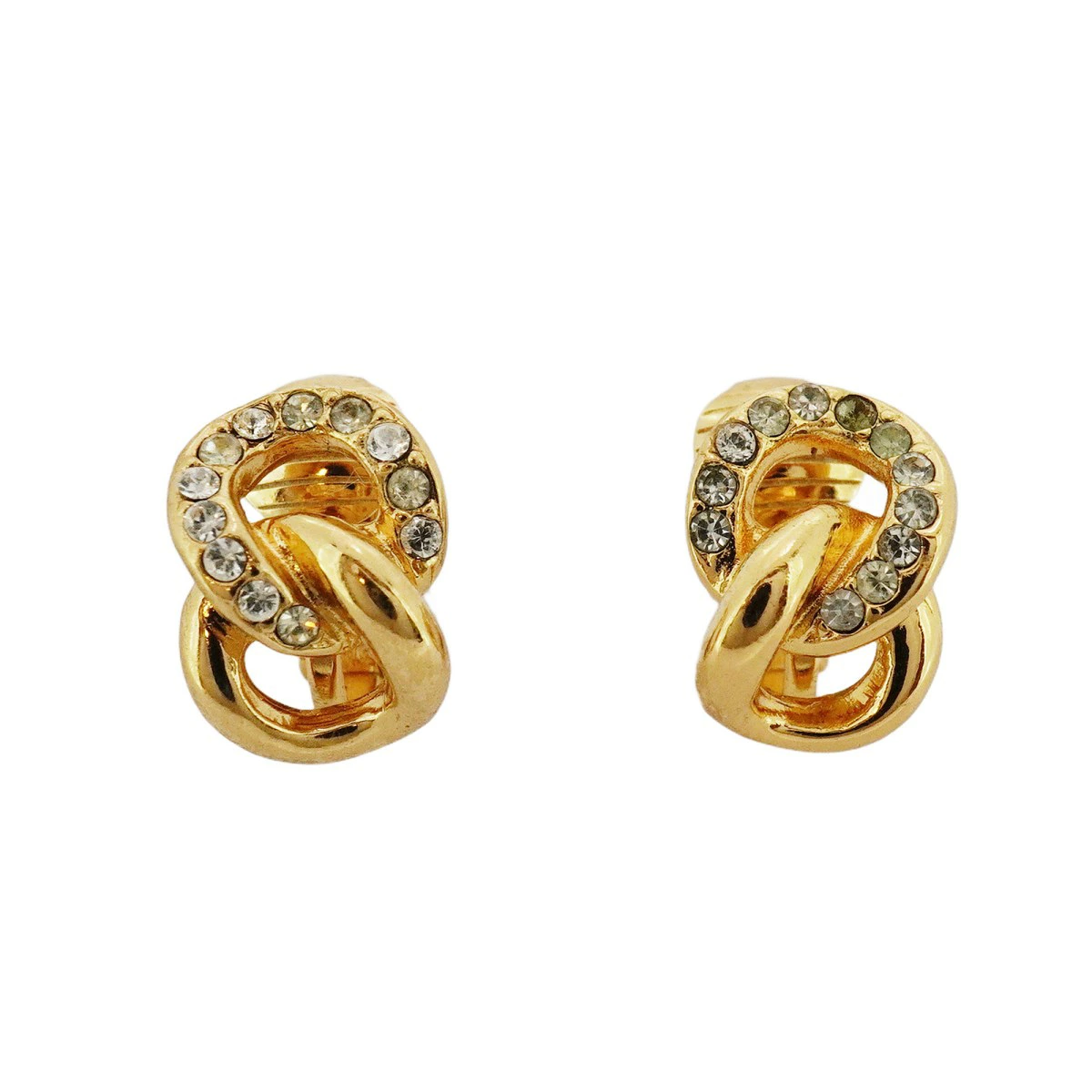 【5jpb0441】クリスチャンディオール イヤリング GPメッキ ラインストーン ゴールド【中古】レディース