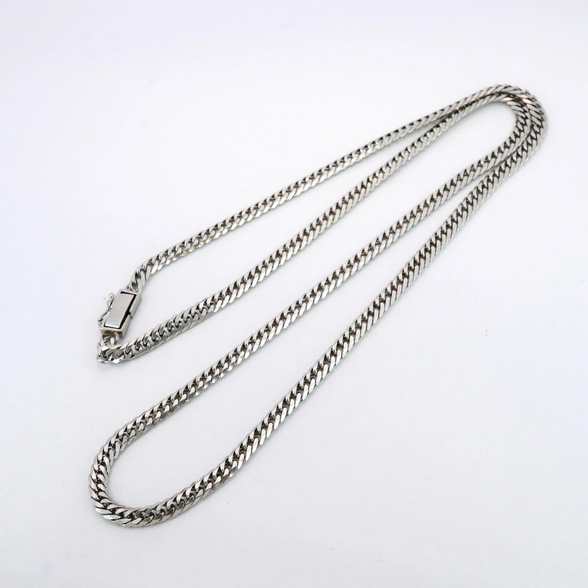 [5khm119] Pre-owned Platinum Pt850 Curb Chain Necklace, 6-Sided, Double, 56.2cm, 30.2g, Unisex