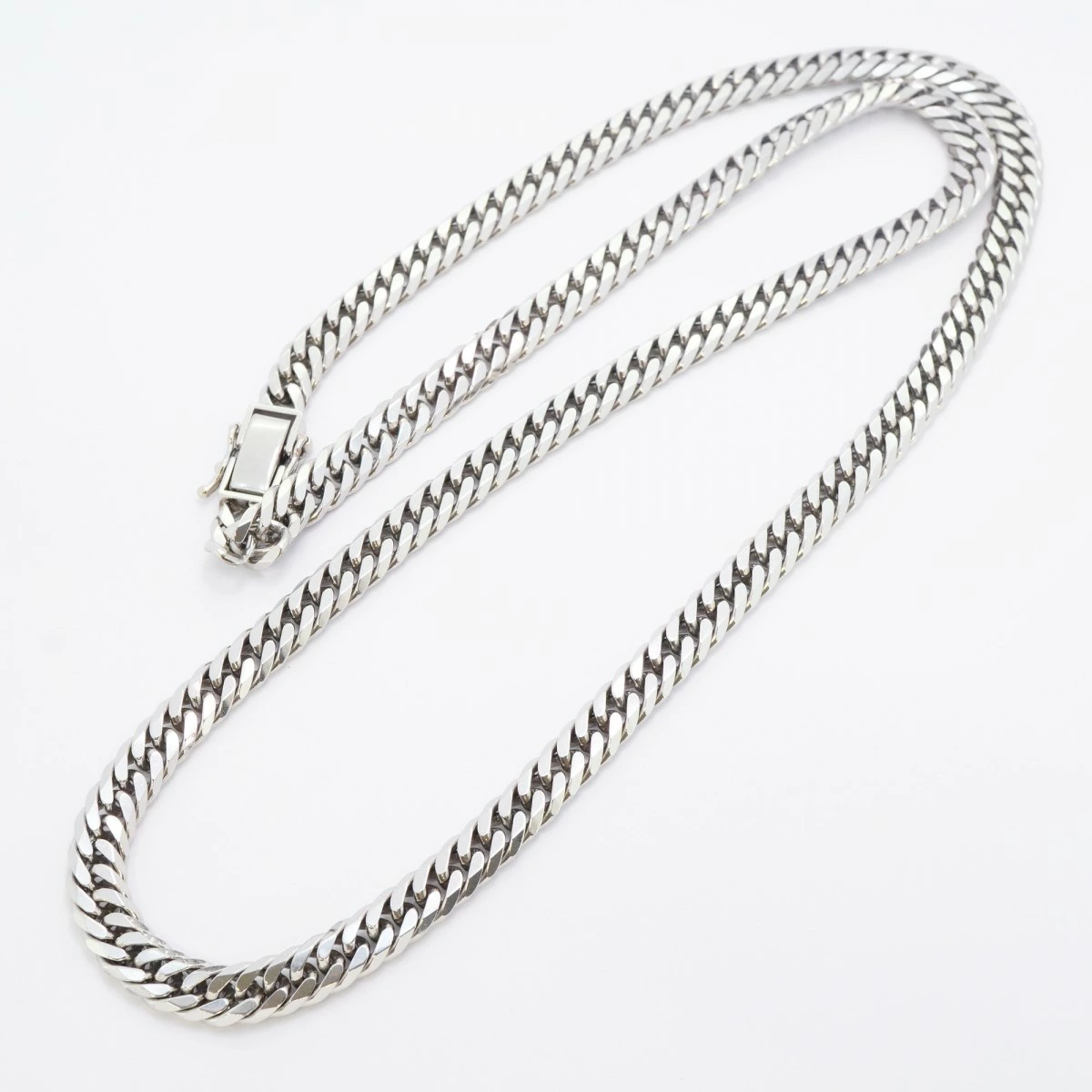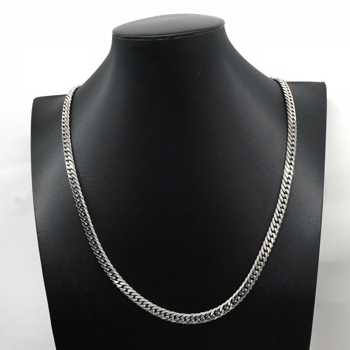 [5kho015] Pre-owned Pt900 Platinum 6-sided Double Curb Chain Necklace, 61.5cm, 100.3g, Unisex