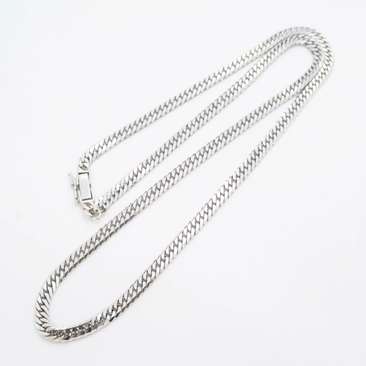 [5kho032] Pre-owned Platinum Pt850 Curb Chain Necklace, 6-sided, Double, 50.6cm, 30.4g, Unisex