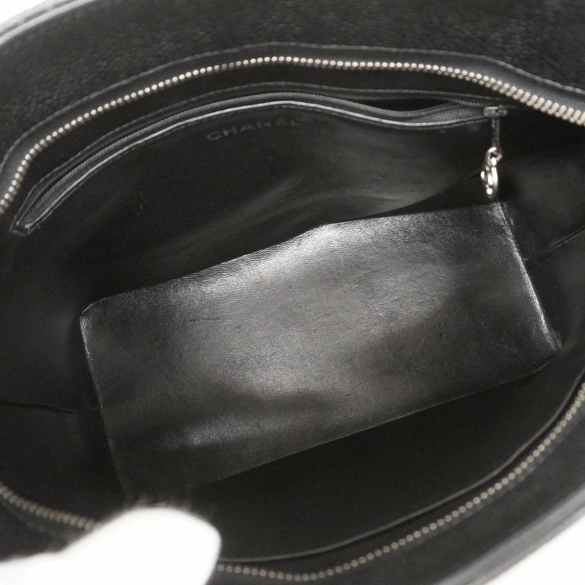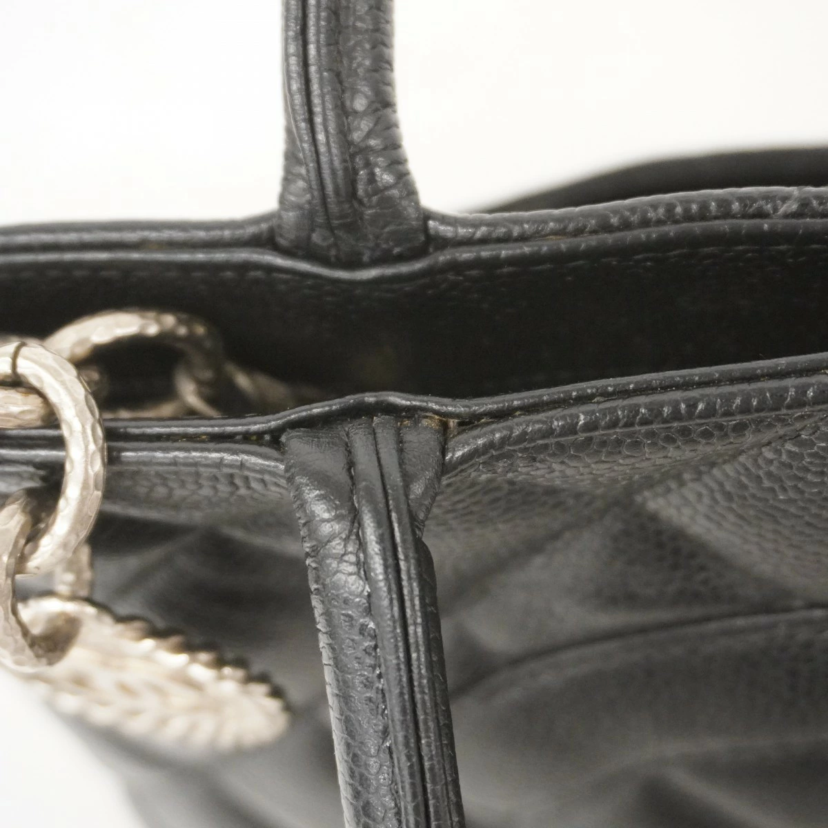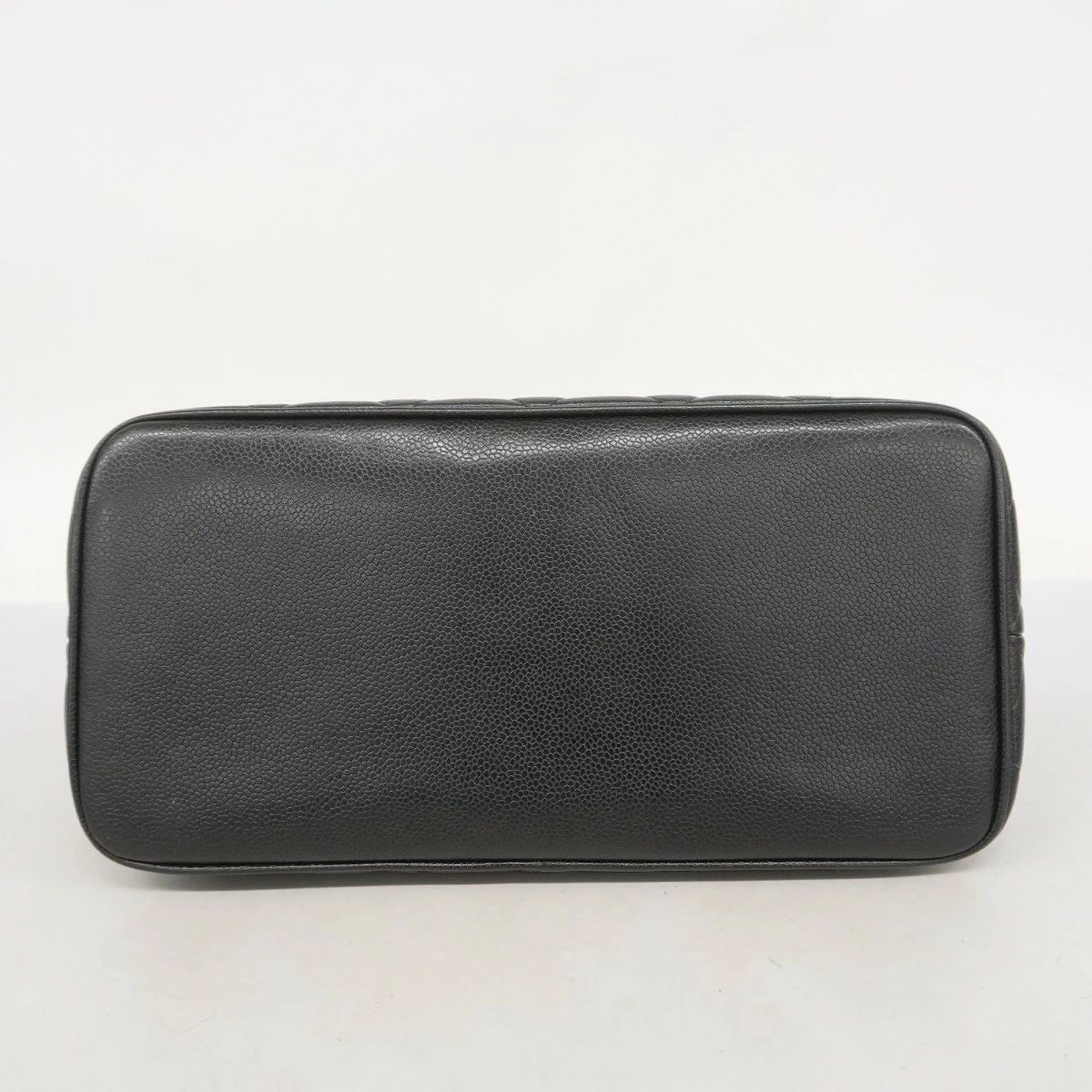【5mb1147-h】シャネル トートバッグトート キャビアスキン ブラック シルバー金具【中古】レディース