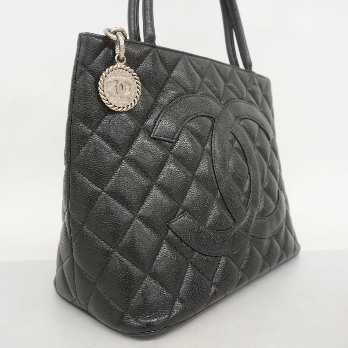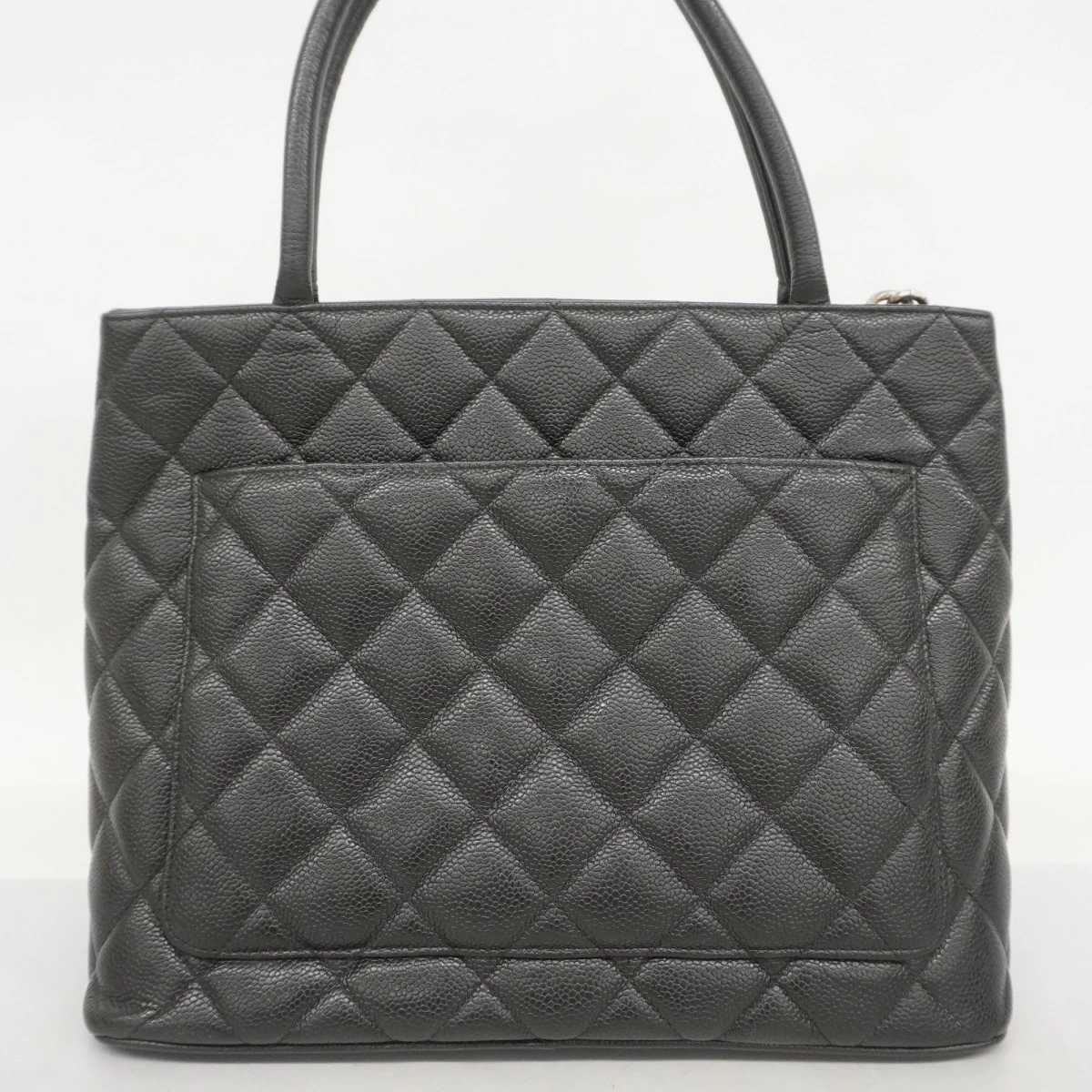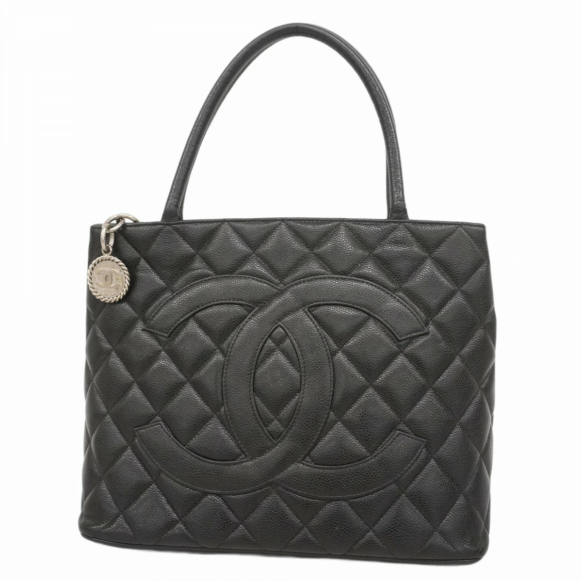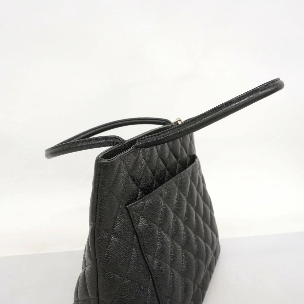 【5mb1147-h】シャネル トートバッグトート キャビアスキン ブラック シルバー金具【中古】レディース