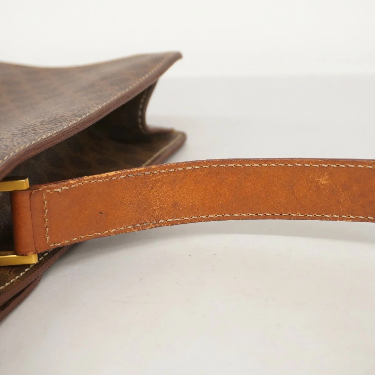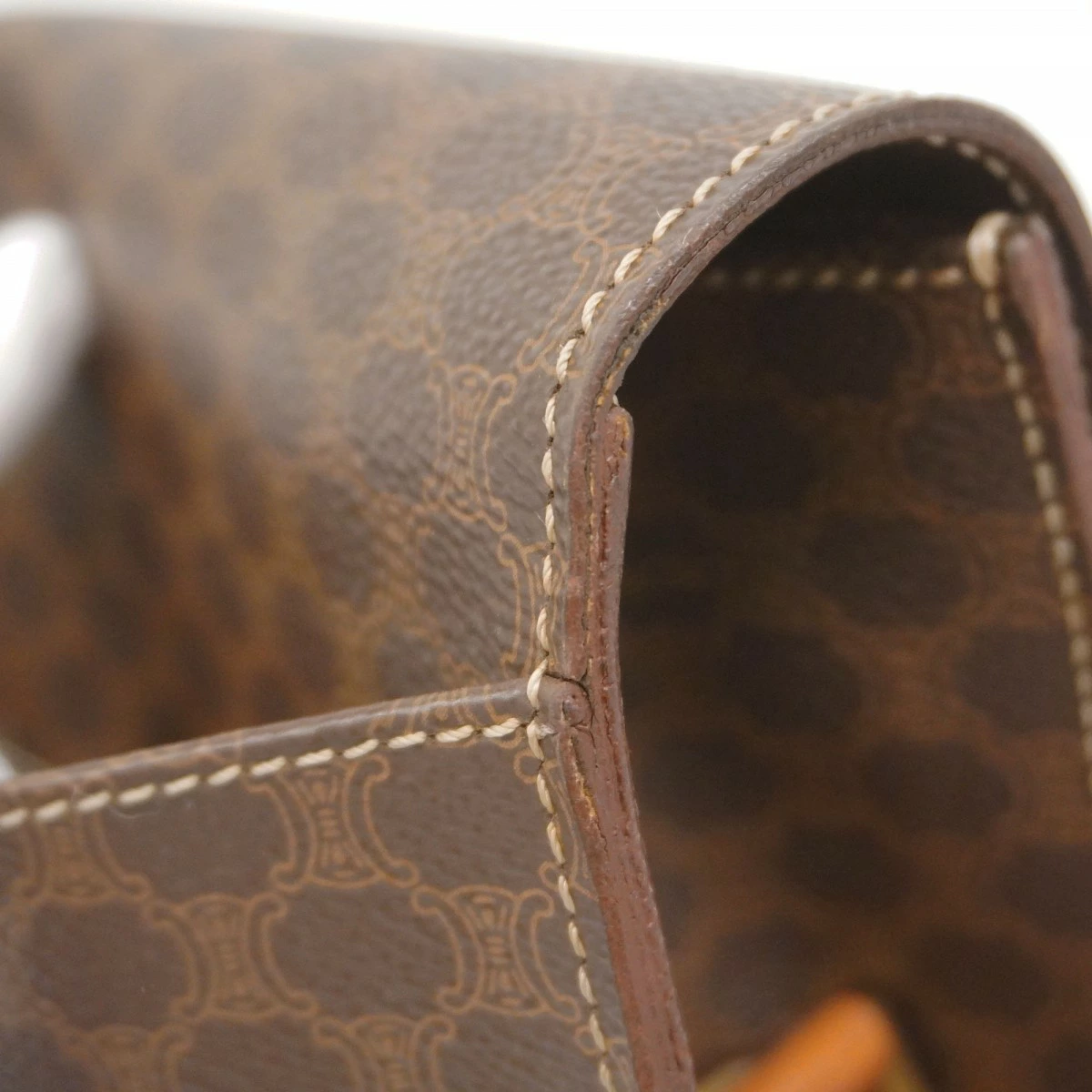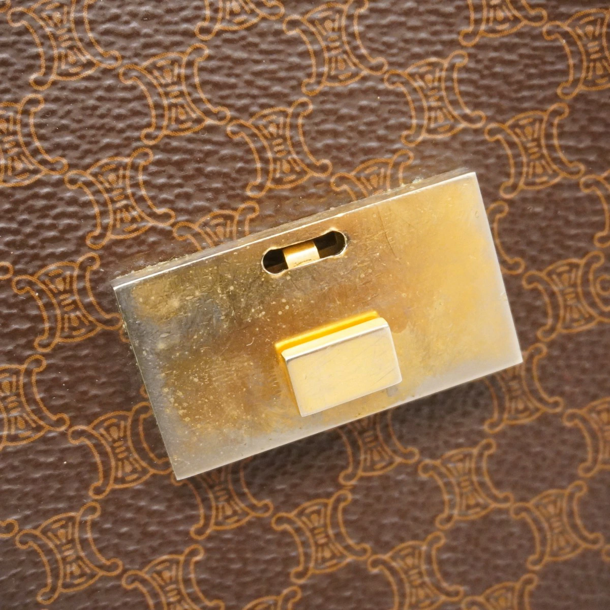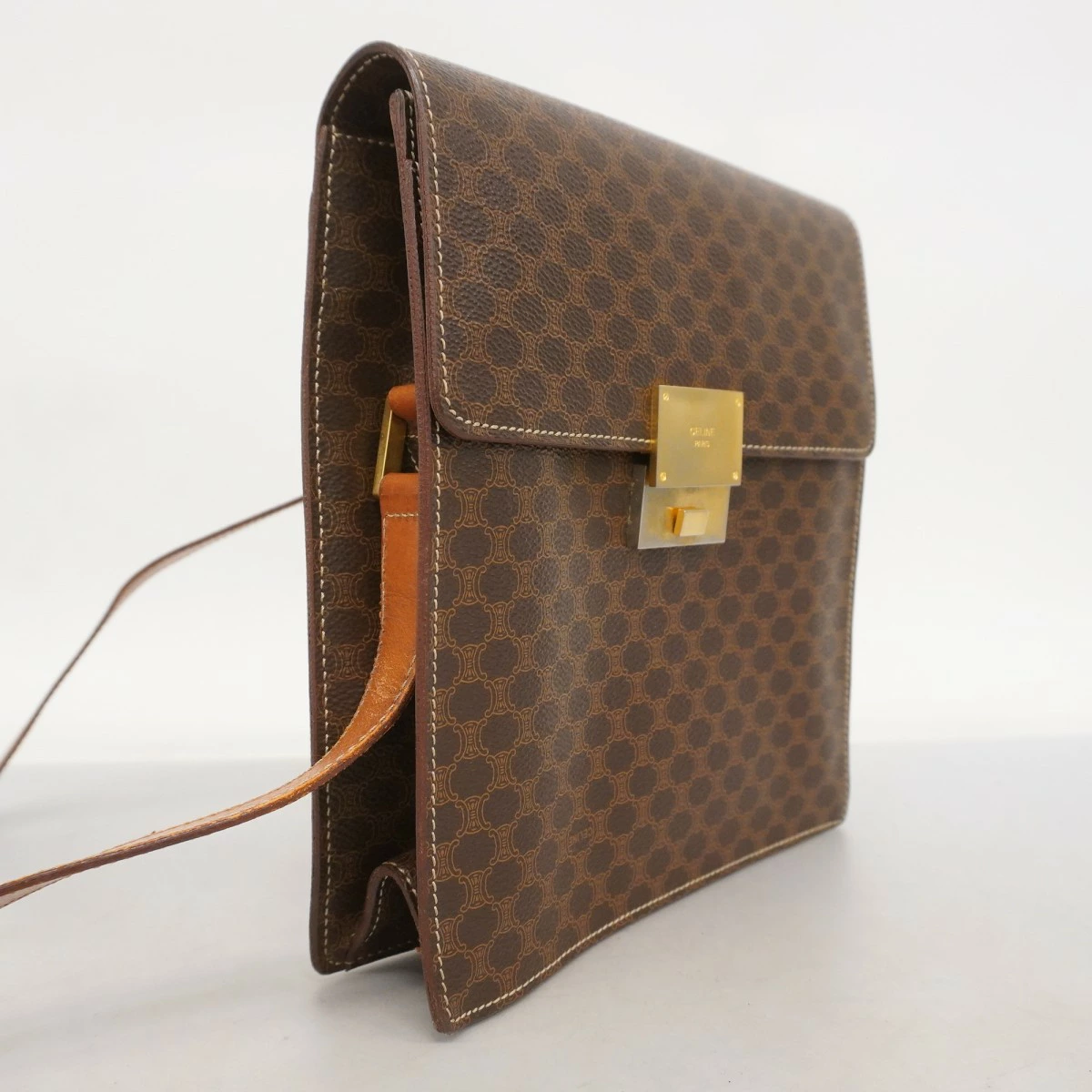 【5mc2850】セリーヌ ショルダーバッグ マカダム PVC ブラウン ゴールド金具【中古】レディース
