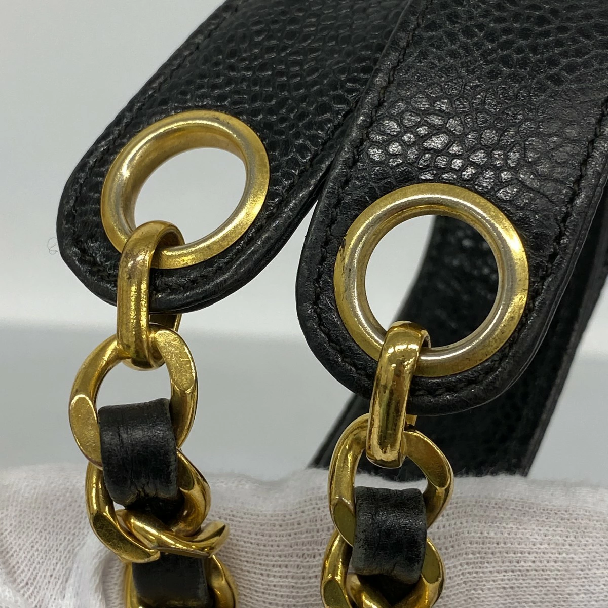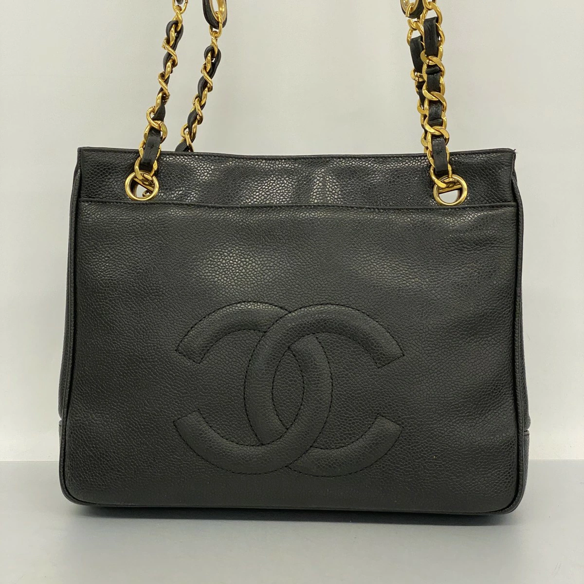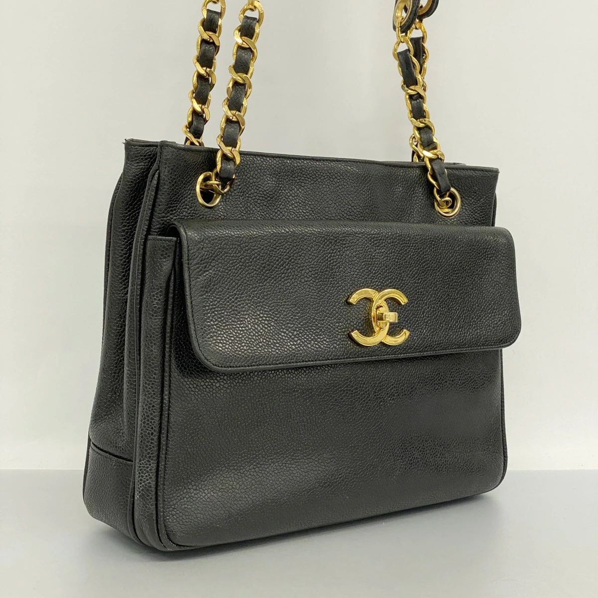 【5md4911-h】シャネル ショルダーバッグ チェーンショルダー キャビアスキン ブラック ゴールド金具【中古】レディース