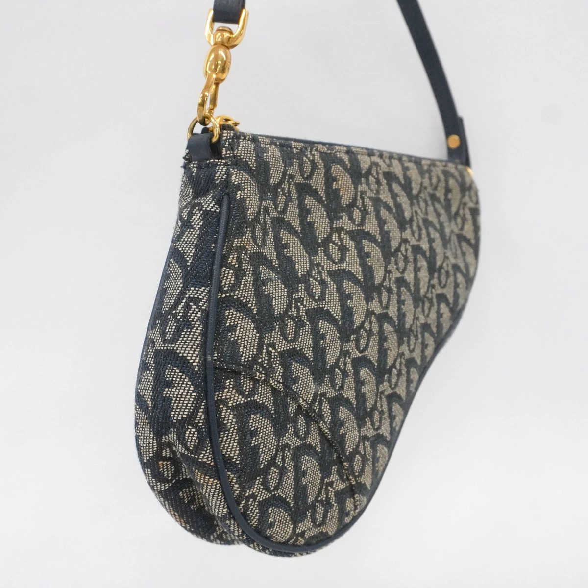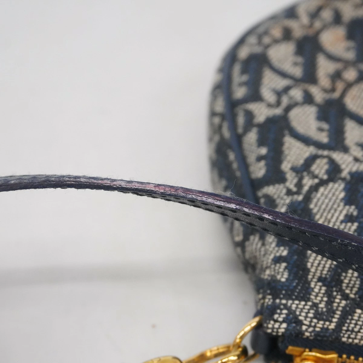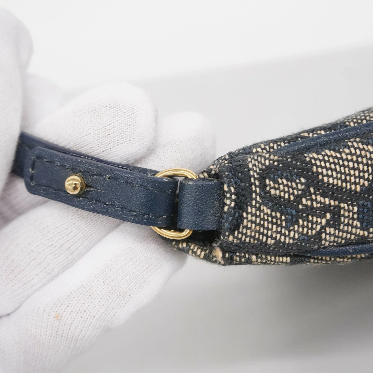 【5md5112】クリスチャンディオール ハンドバッグ トロッター キャンバス ネイビー ゴールド金具【中古】レディース