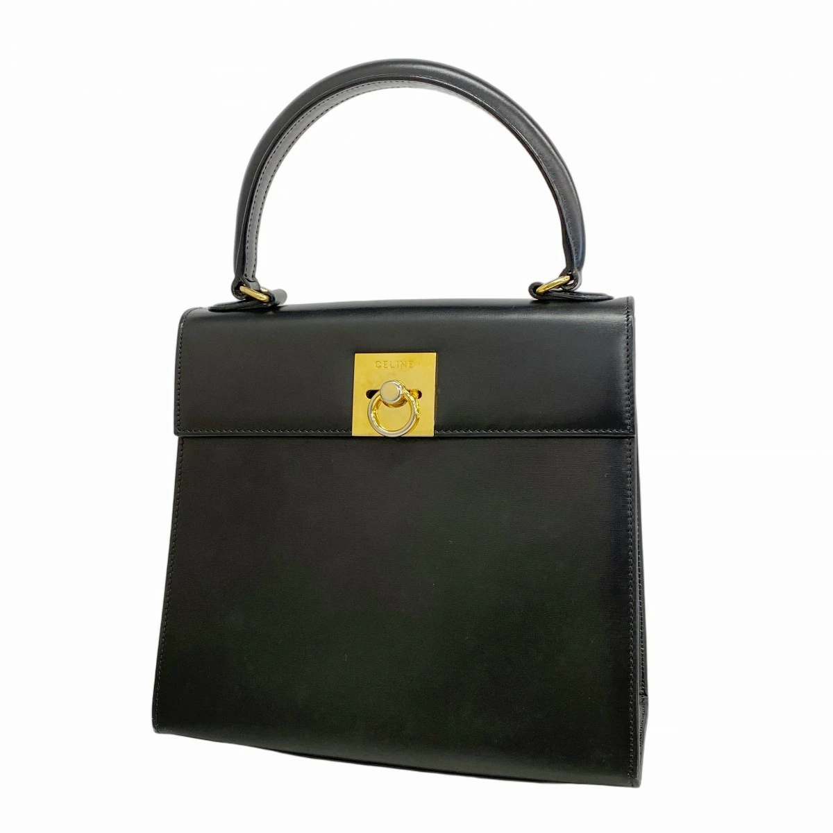 【5me6037】セリーヌ ハンドバッグ レザー ブラック ゴールド金具【中古】レディース