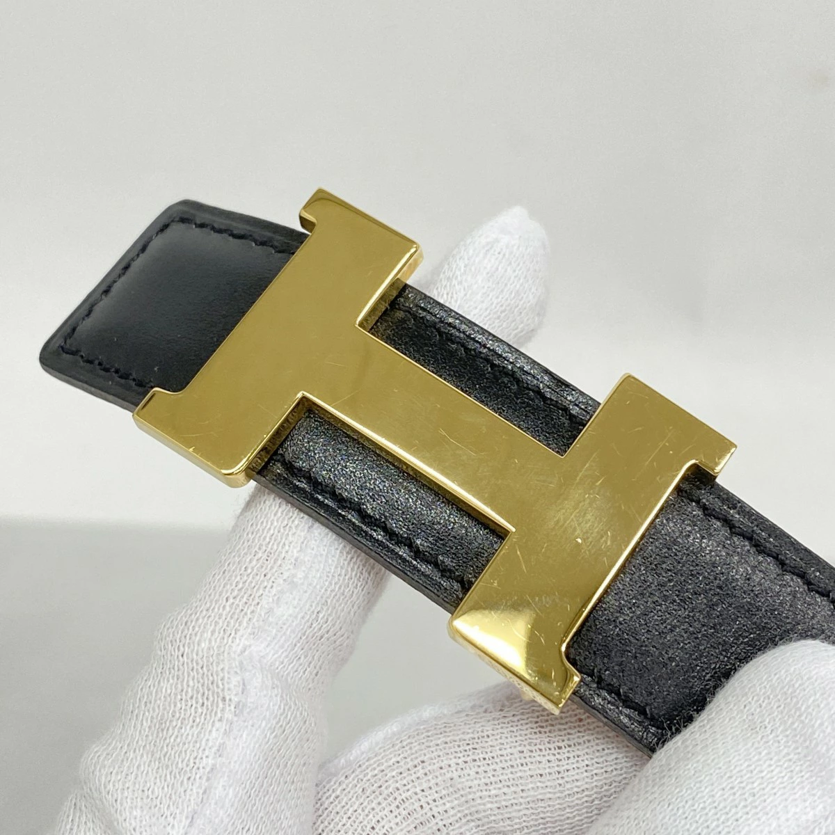 【5me6173-h】エルメス ベルト コンスタンスベルト ボックスカーフ クシュベル ブラック ゴールド ゴールド金具 □D刻印【中古】レディース