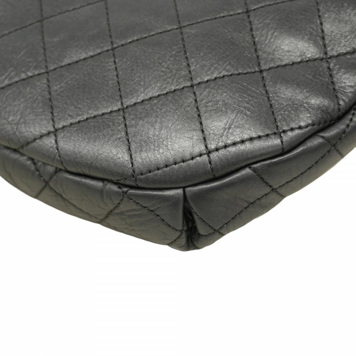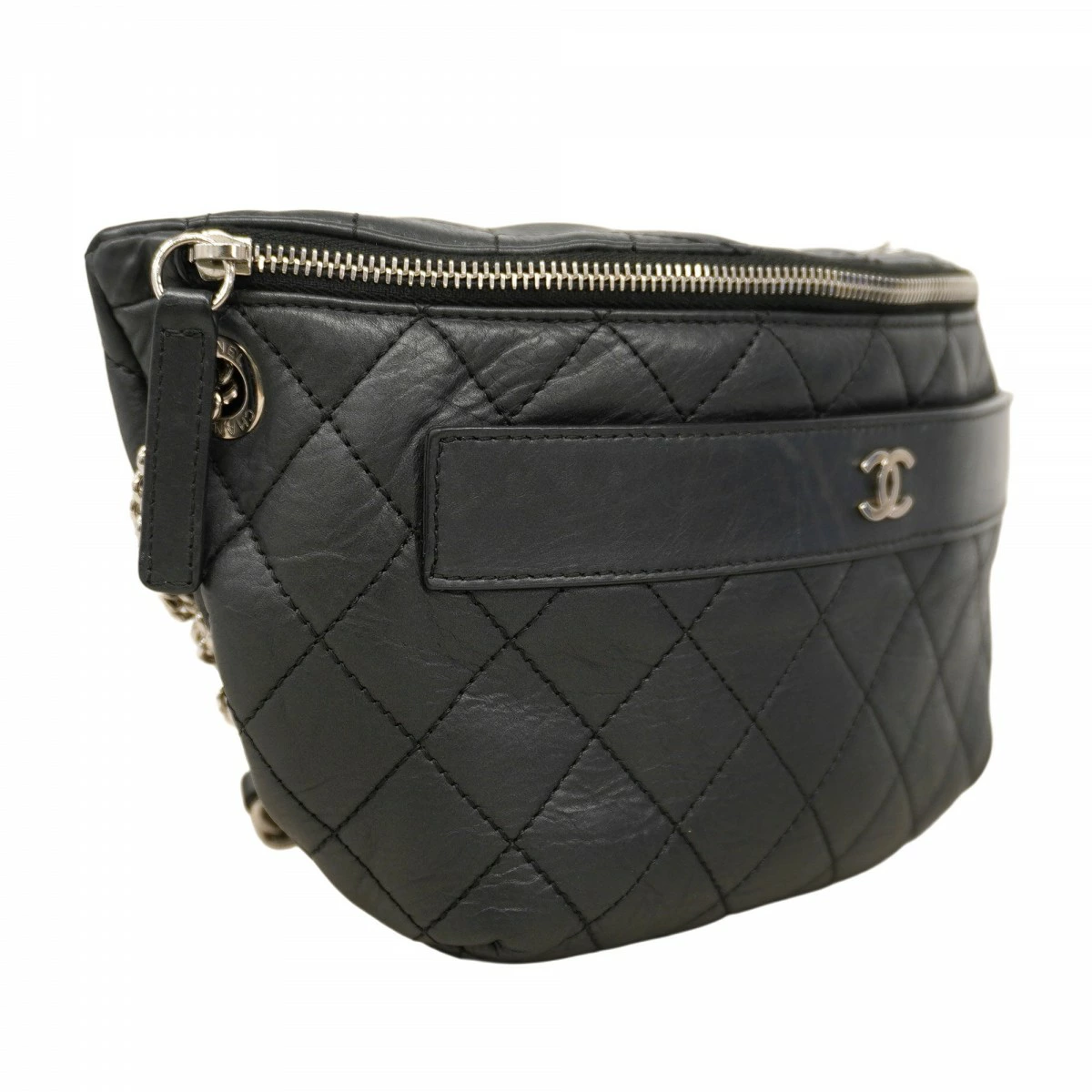 【5me6387-h】シャネル ウエストバッグ マトラッセ レザー ブラック シルバー金具【中古】レディース