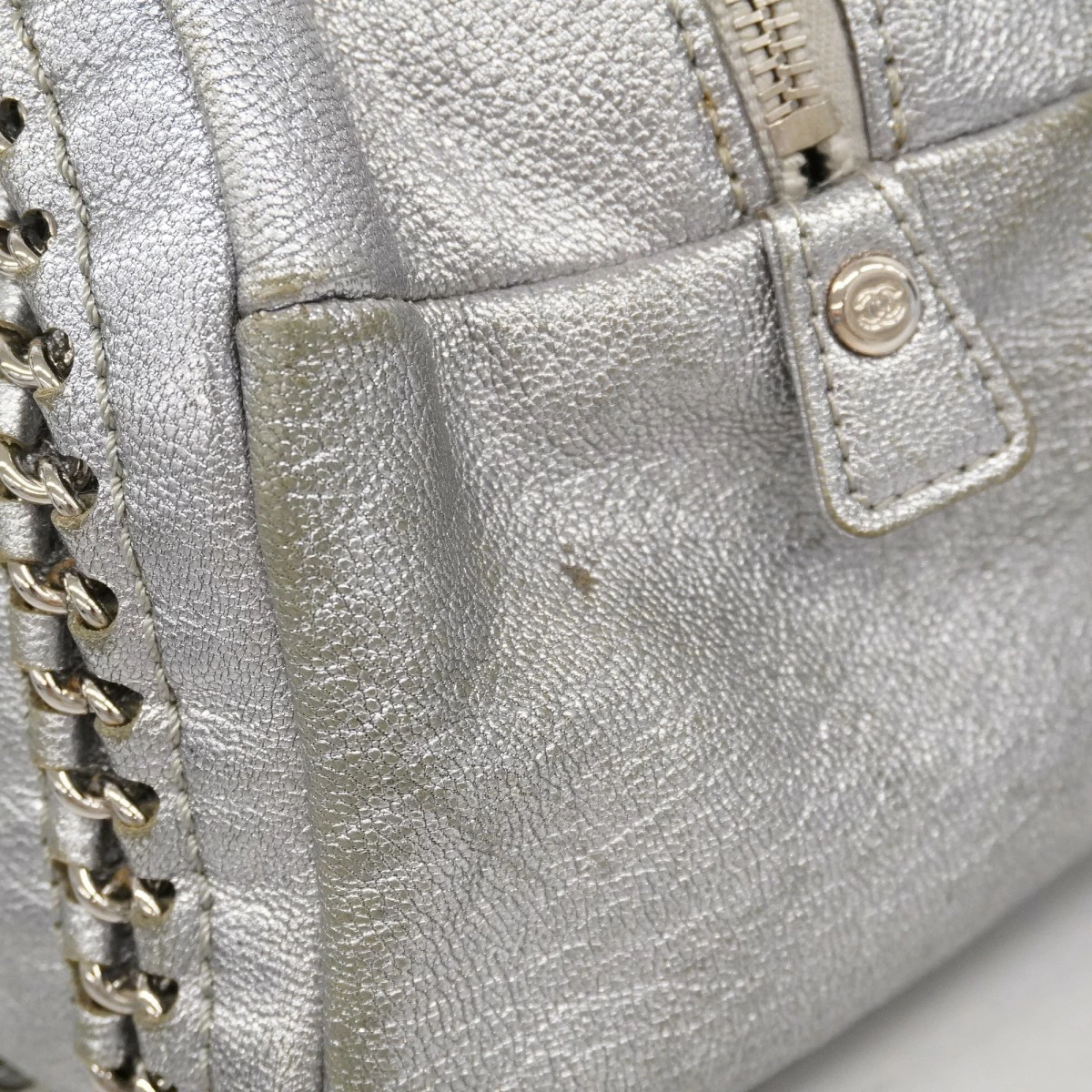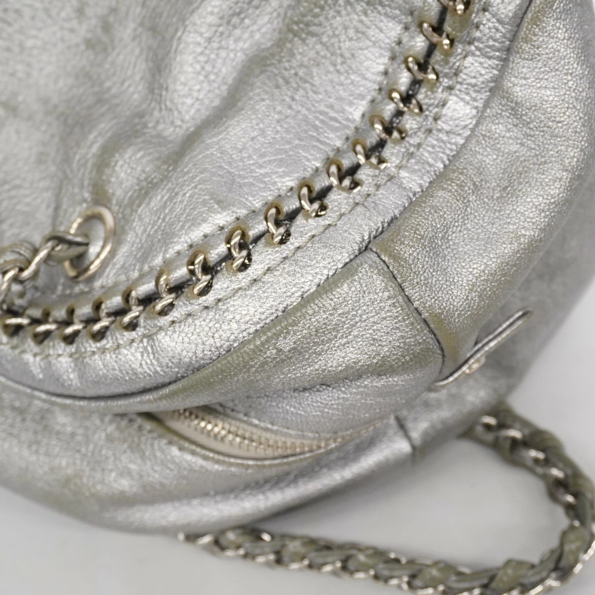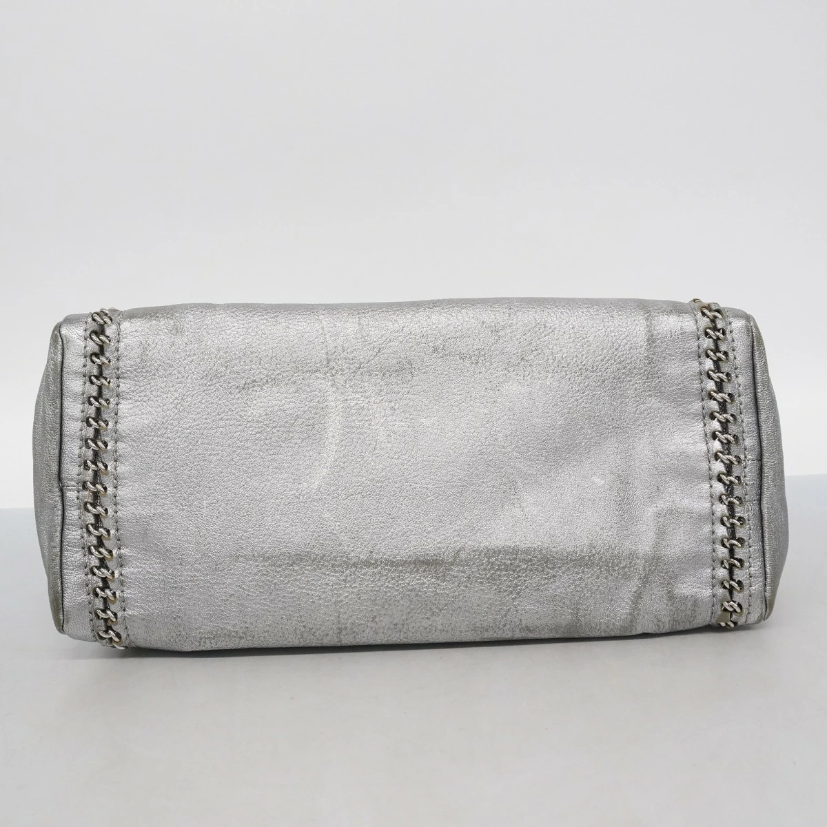 【5me6505-h】シャネル ショルダーバッグ チェーンショルダー ラグジュアリー レザー グレー シルバー金具【中古】レディース