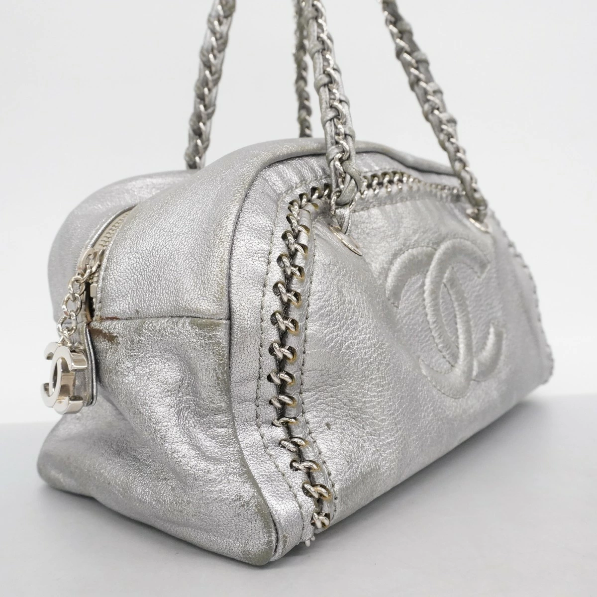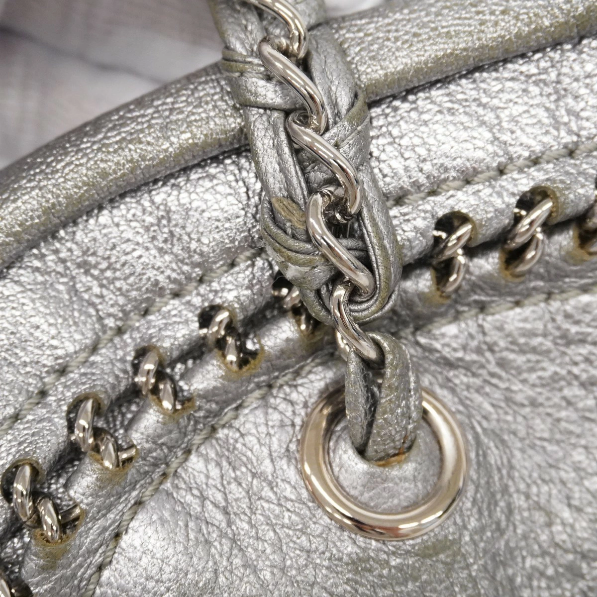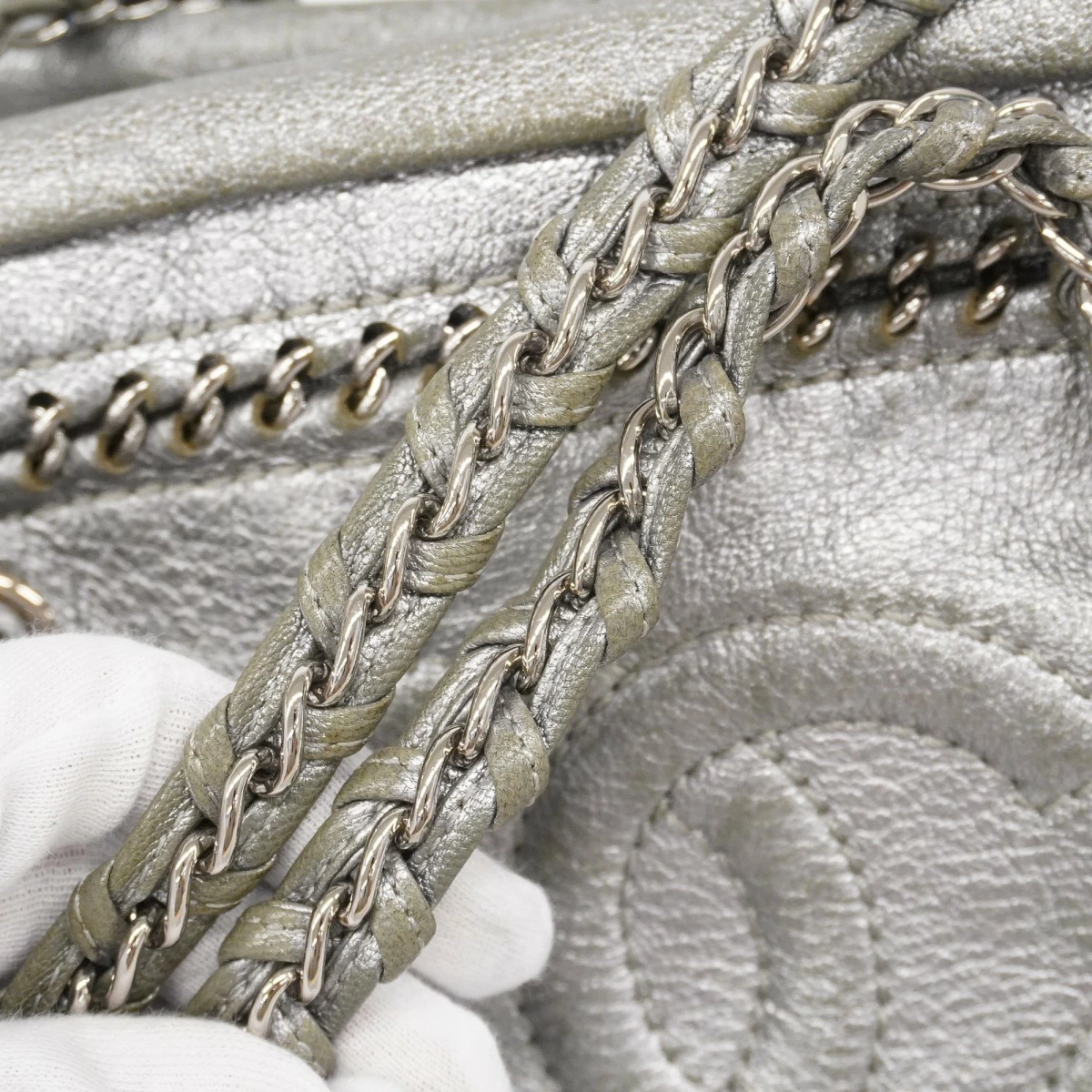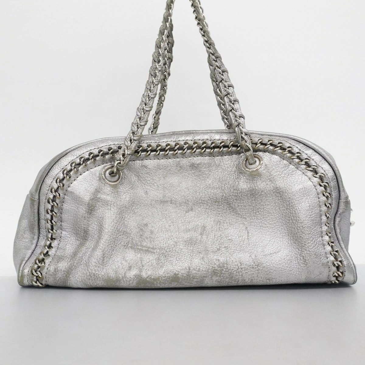 【5me6505-h】シャネル ショルダーバッグ チェーンショルダー ラグジュアリー レザー グレー シルバー金具【中古】レディース