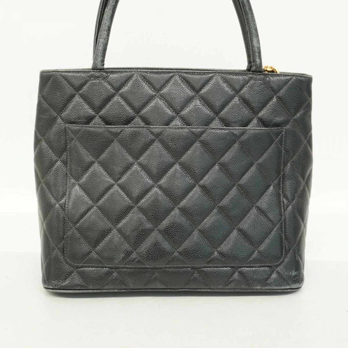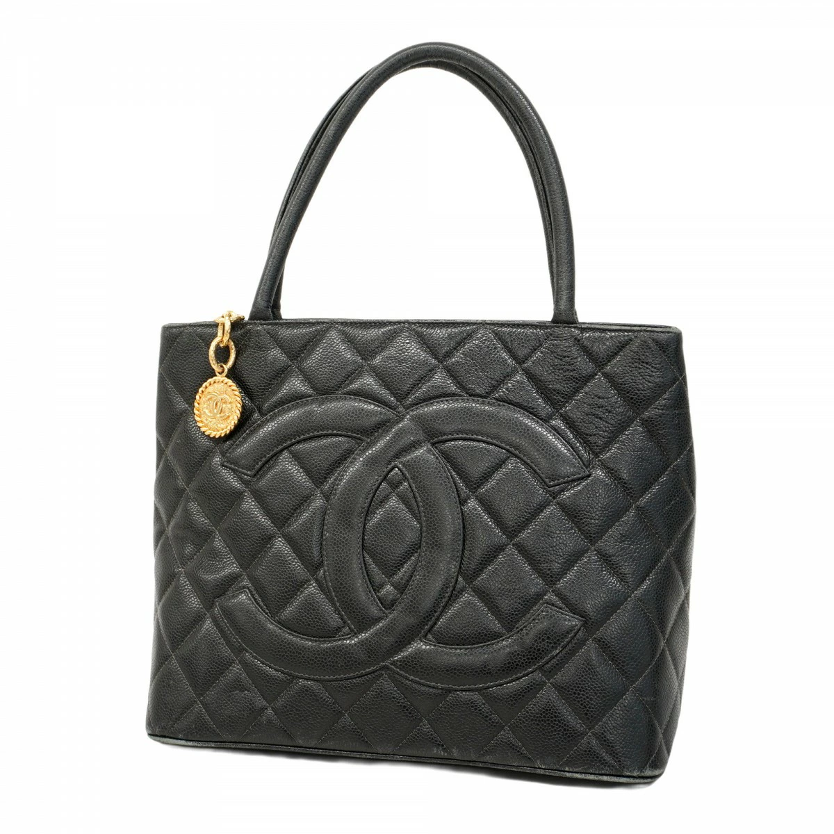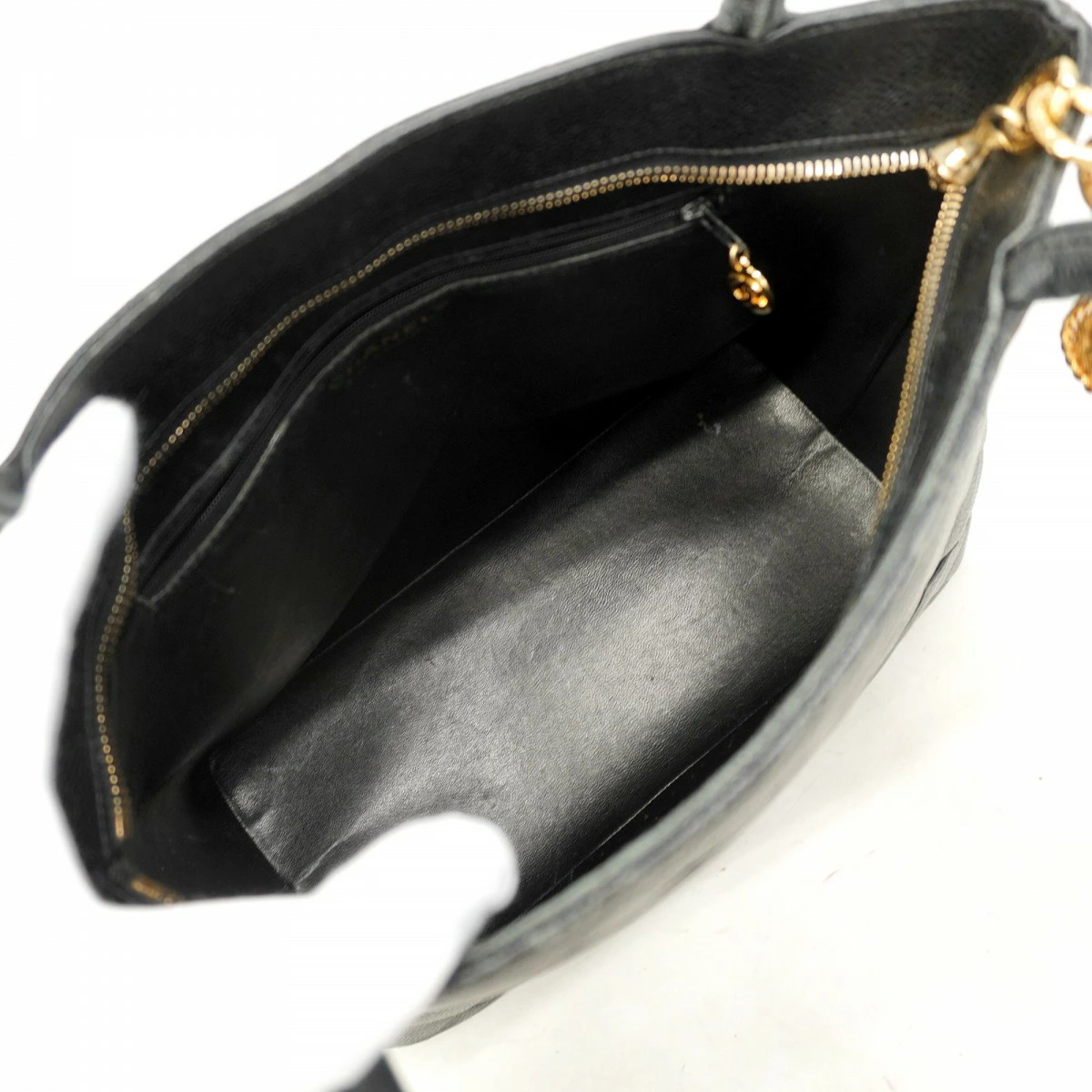 【5me6558-h】シャネル トートバッグトート キャビアスキン ブラック ゴールド金具【中古】レディース