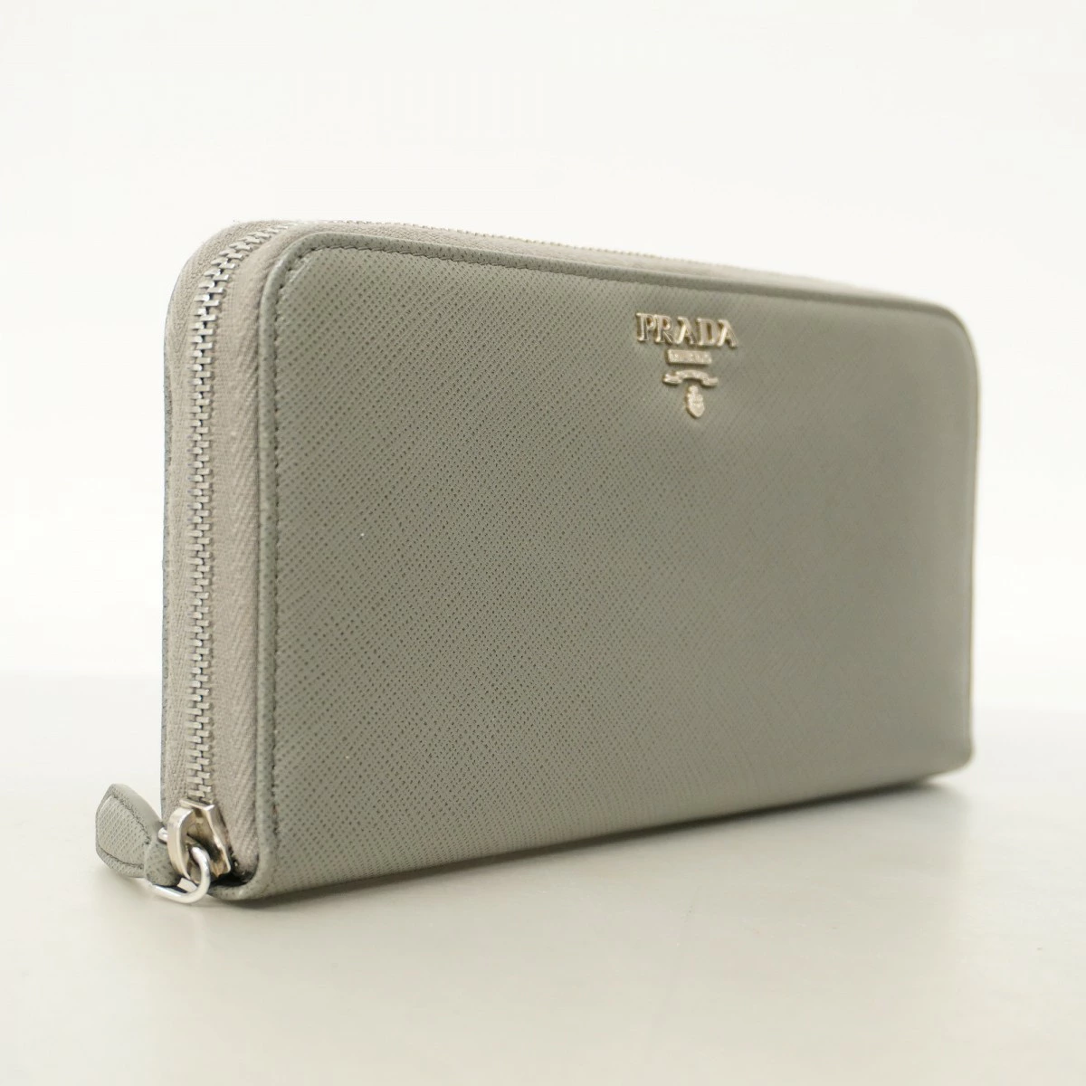 ★SALE【5ob0046】プラダ 長財布 サフィアーノ レザー グレー シルバー金具【中古】メンズ レディース ユニセックス