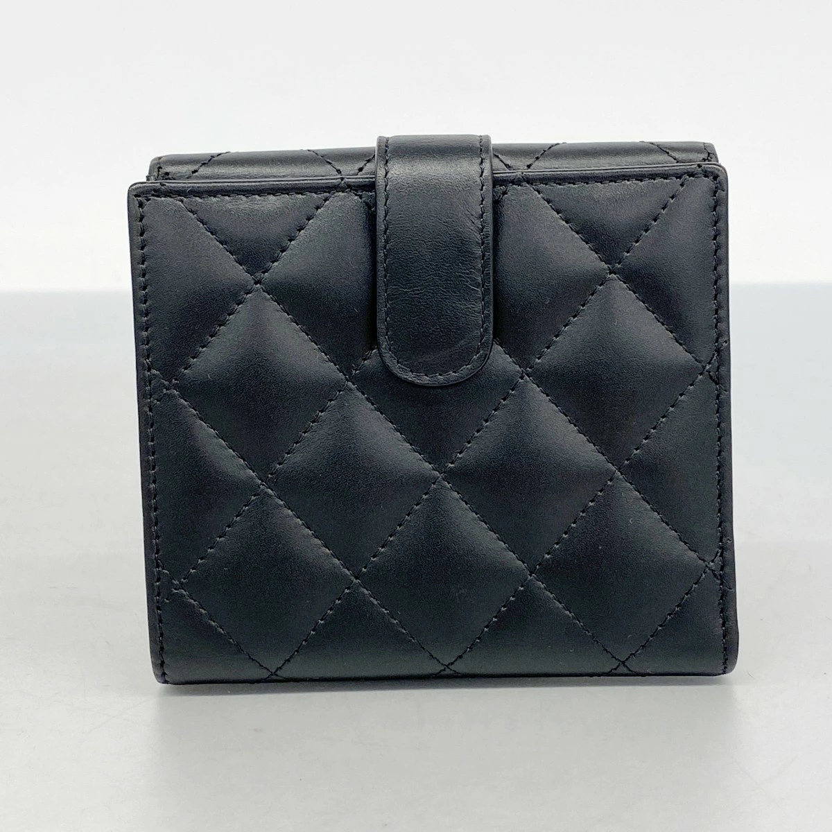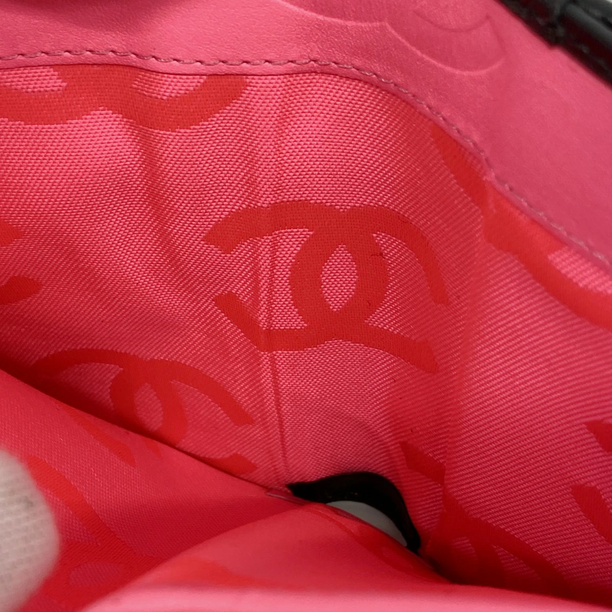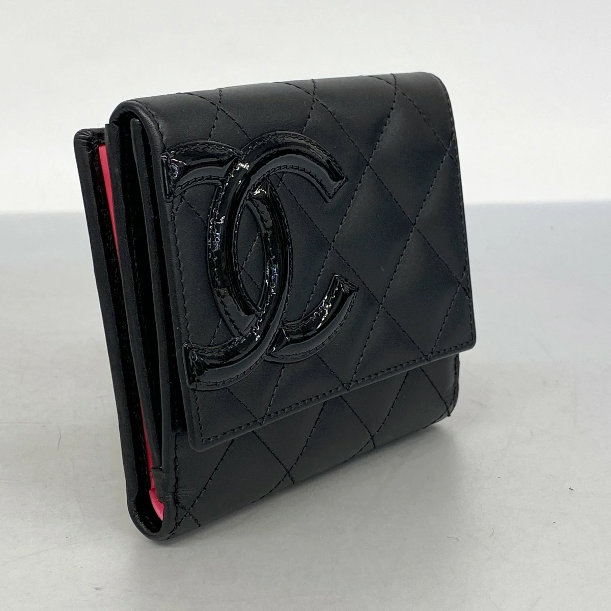 【5ob0300】シャネル 財布 カンボン ラムスキン ブラック ピンク シルバー金具【中古】レディース