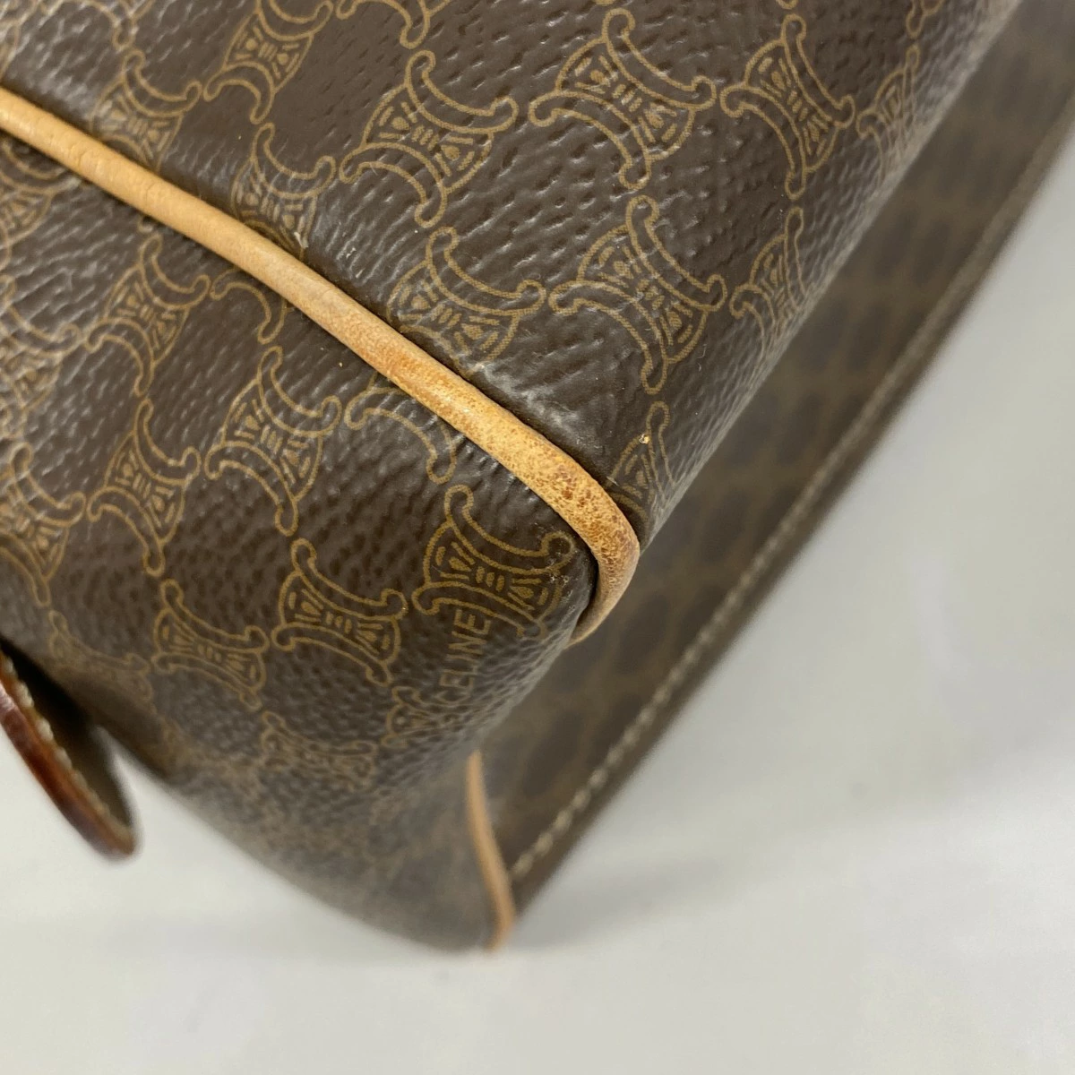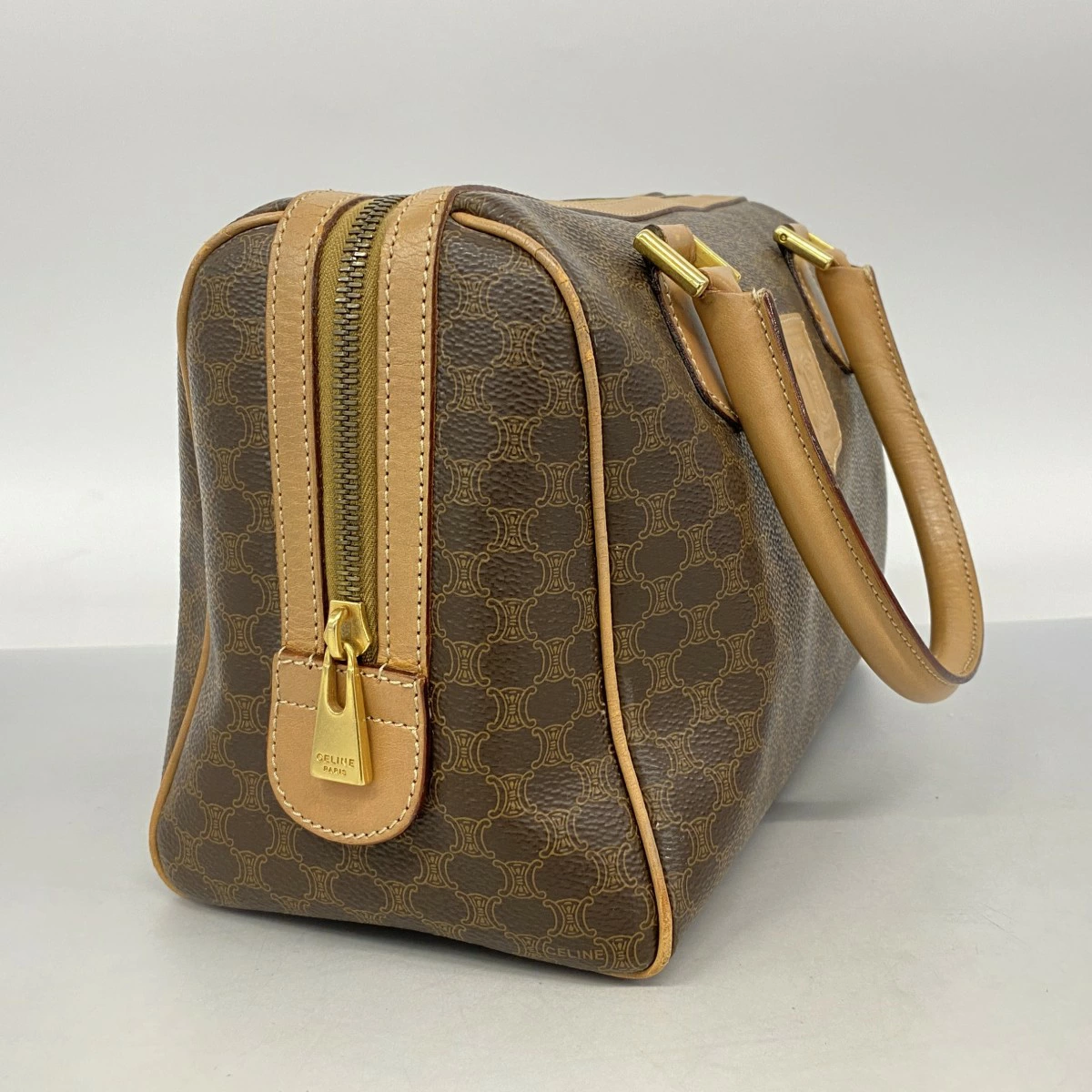 【5ob0460】セリーヌ ハンドバッグ マカダム PVC ブラウン ゴールド金具【中古】レディース