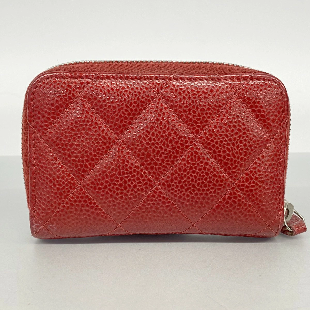 【5ob0687】シャネル コインケース マトラッセ キャビアスキン レッド シルバー金具【中古】レディース