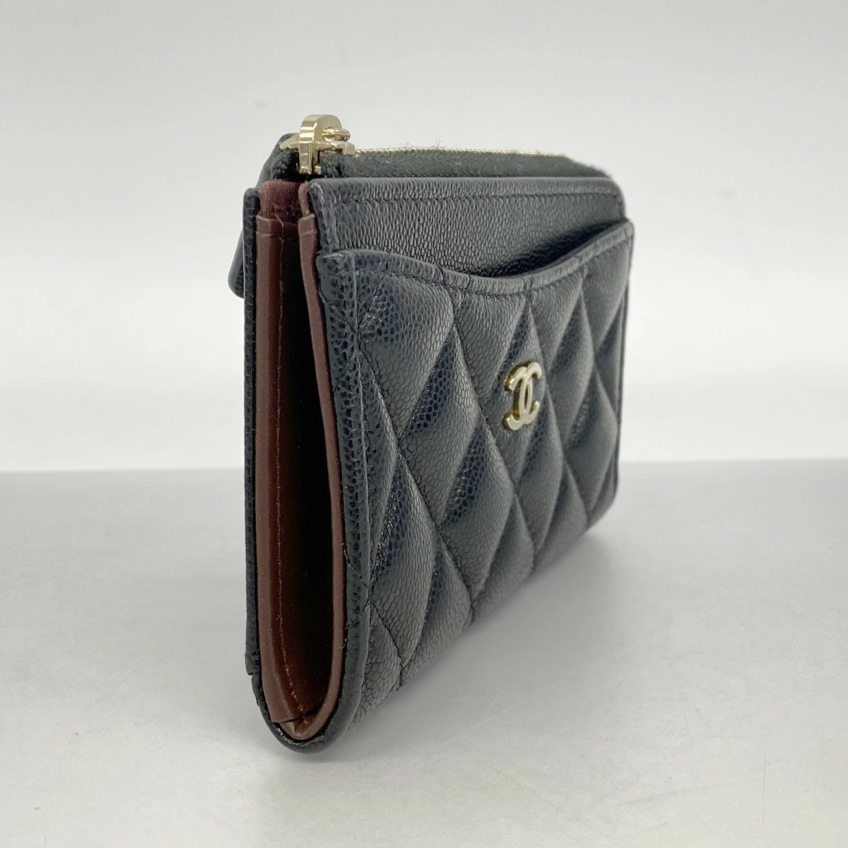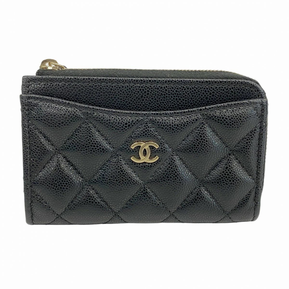 【5ob0767-h】シャネル コインケース マトラッセ キャビアスキン ブラック シャンパンゴールド金具【中古】レディース