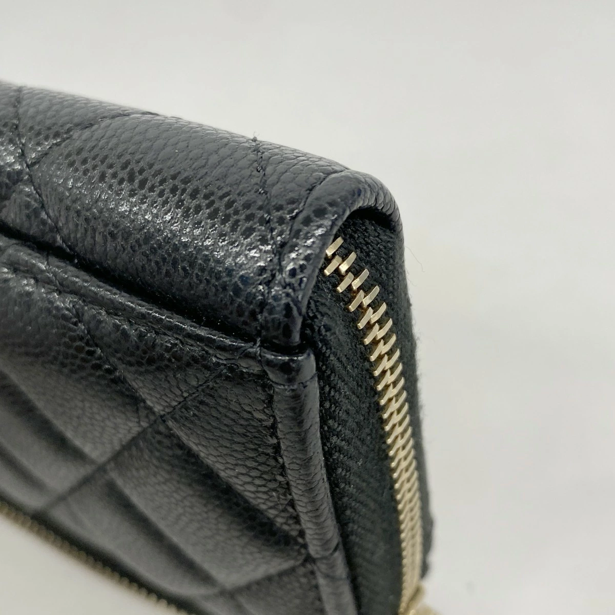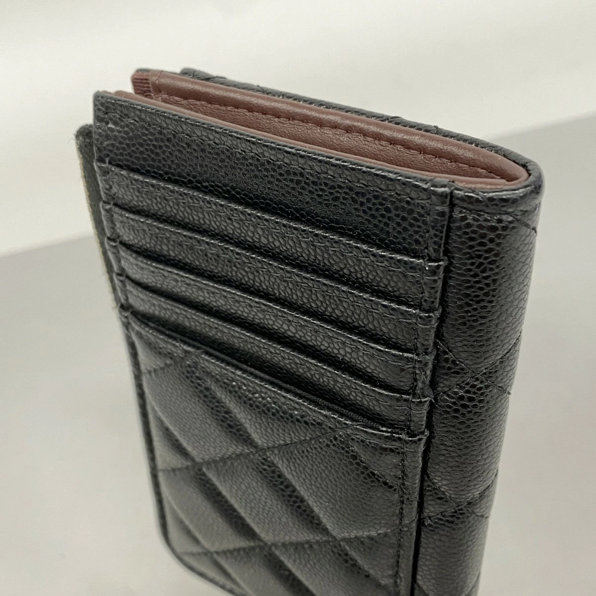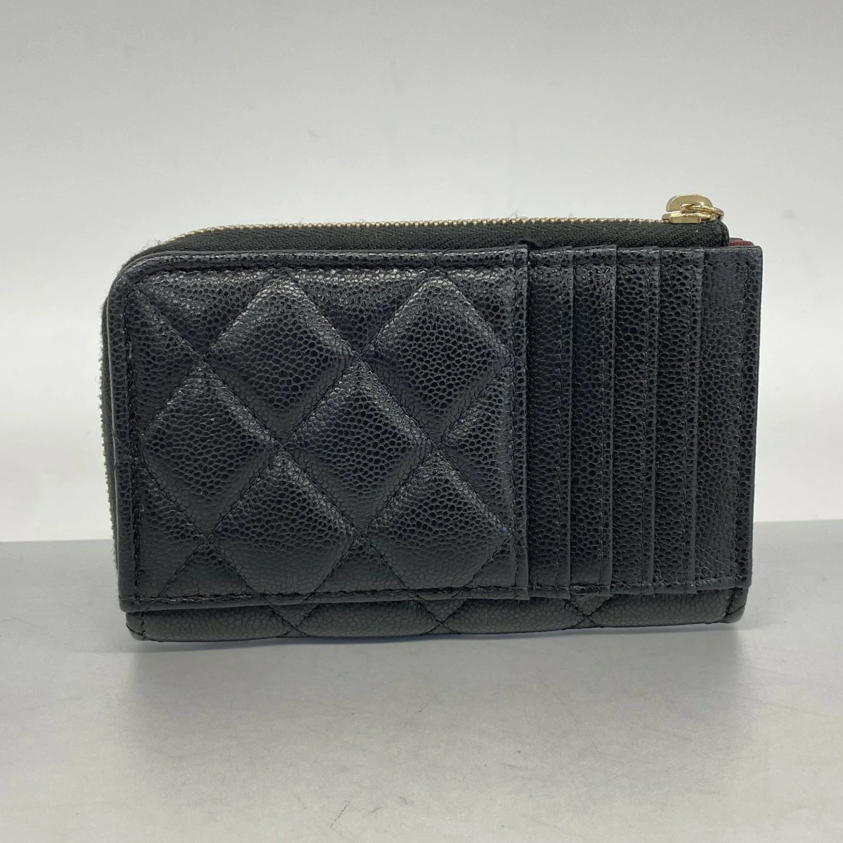 [5ob0767-h] Chanel Matelasse Coin Case, Caviar Leather, Black, Champagne Gold Hardware, Pre-owned, Women's