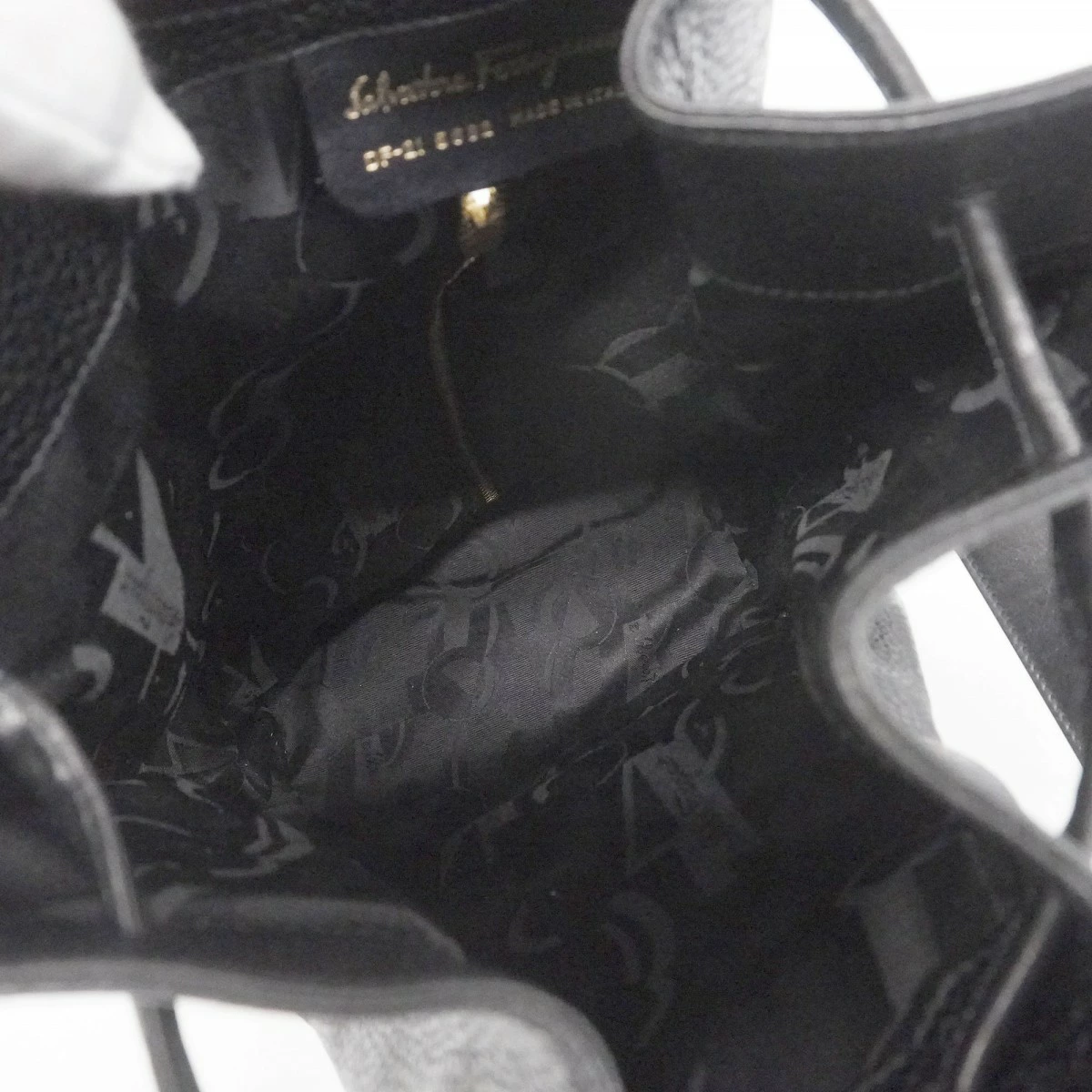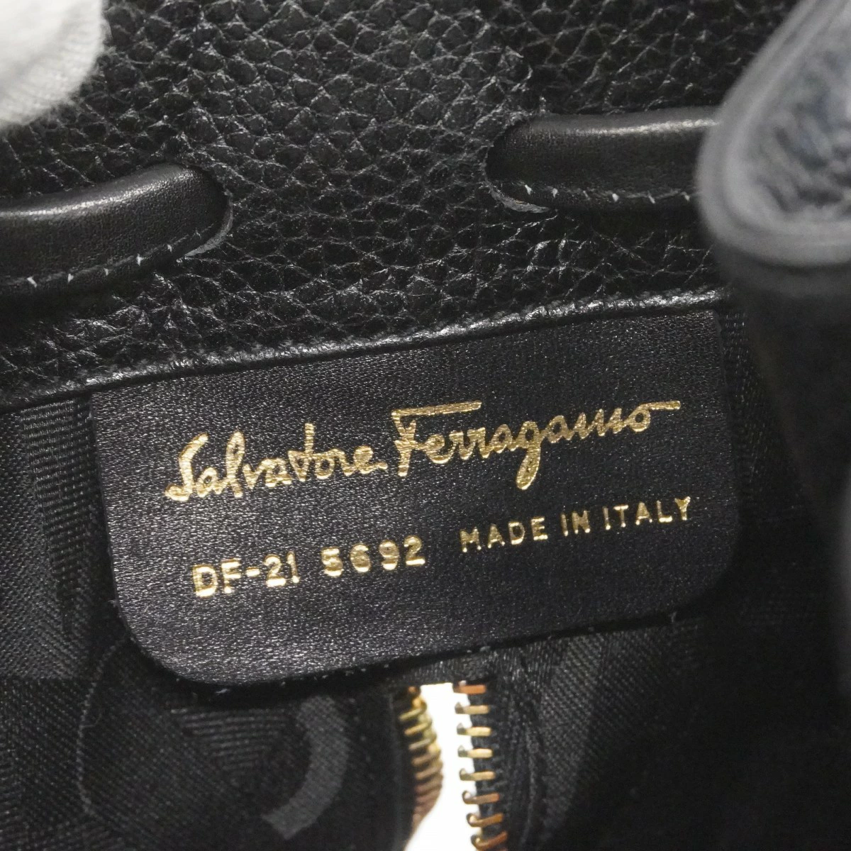 【5ob1044】サルヴァトーレフェラガモ ボディバッグ ヴァラ レザー ブラック ゴールド金具【中古】レディース