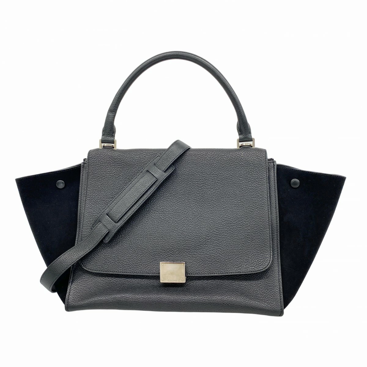【5oc1714】セリーヌ ハンドバッグ トラぺーズ スウェード レザー ブラック シルバー金具 2wayバッグ【中古】レディース
