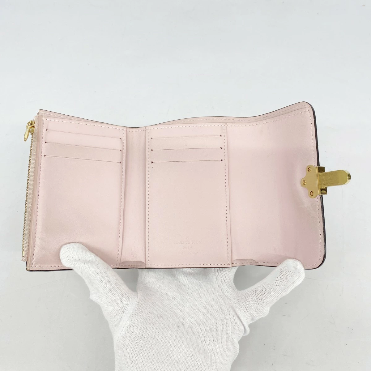 【5oc1775-h】ルイヴィトン 三つ折り財布 モノグラム ヴェルニ ポルトフォイユチェリーウッドコンパクト M61911 ローズバレリーヌ【中古】レディース
