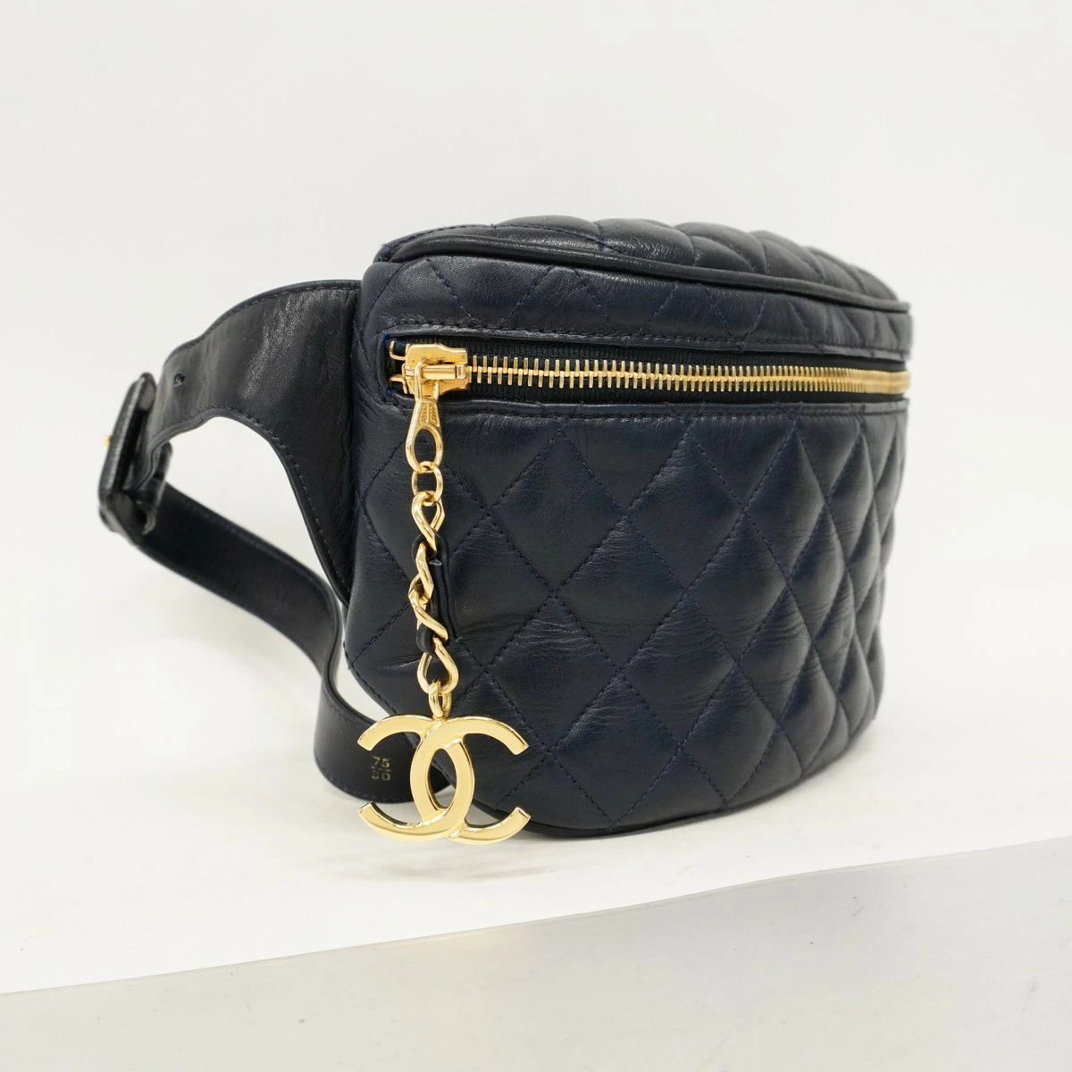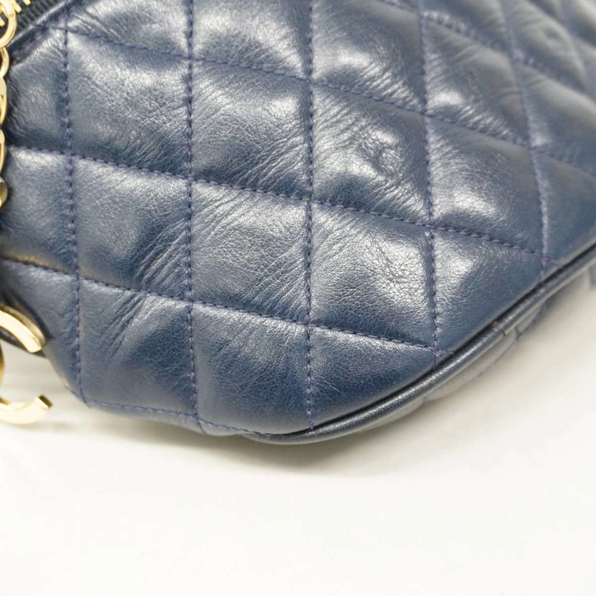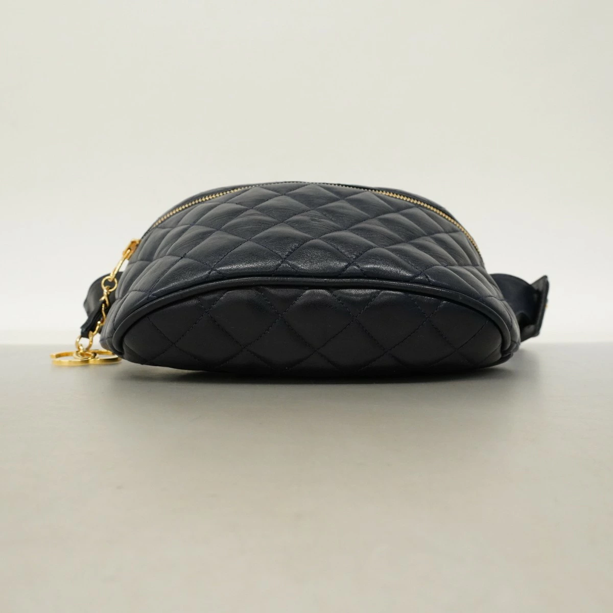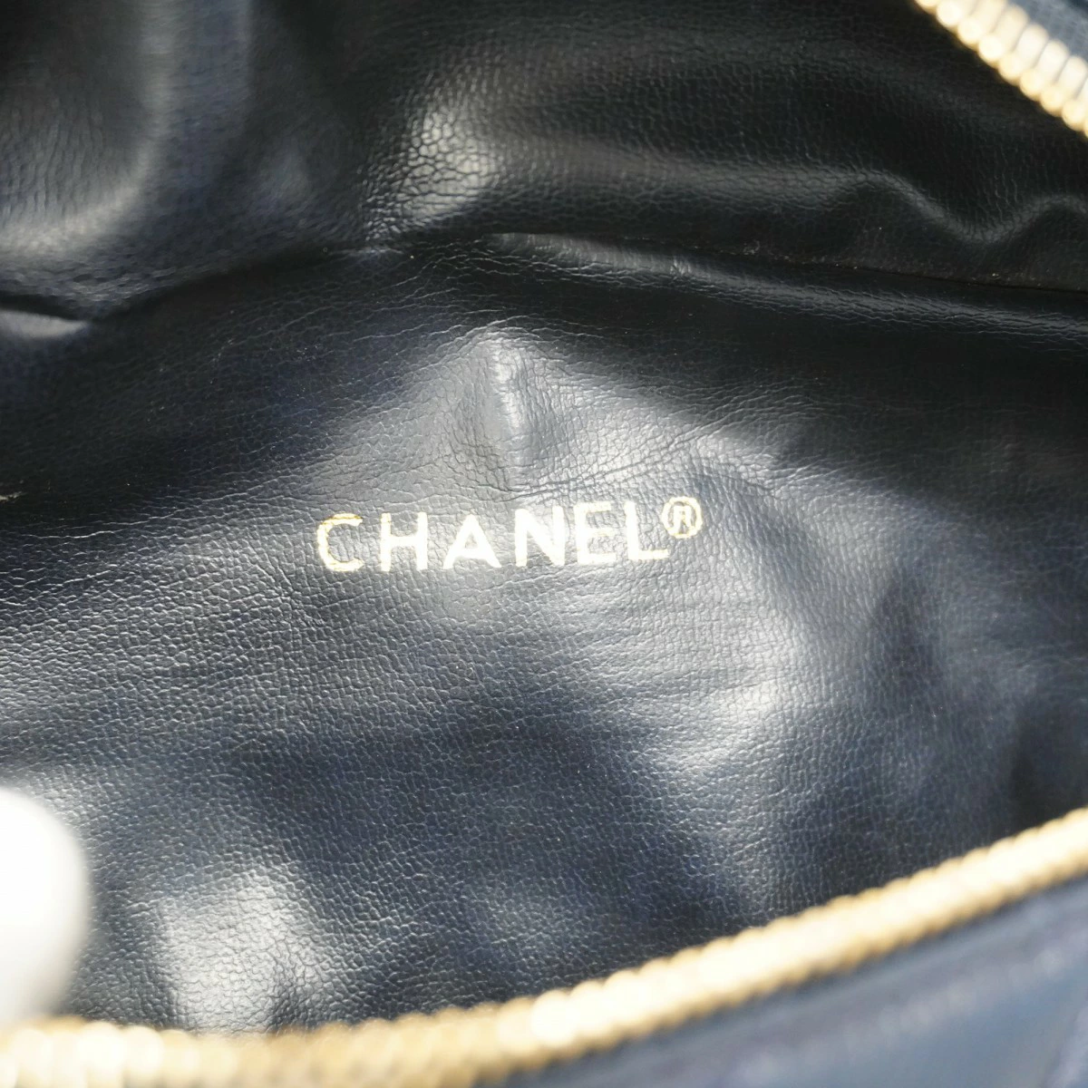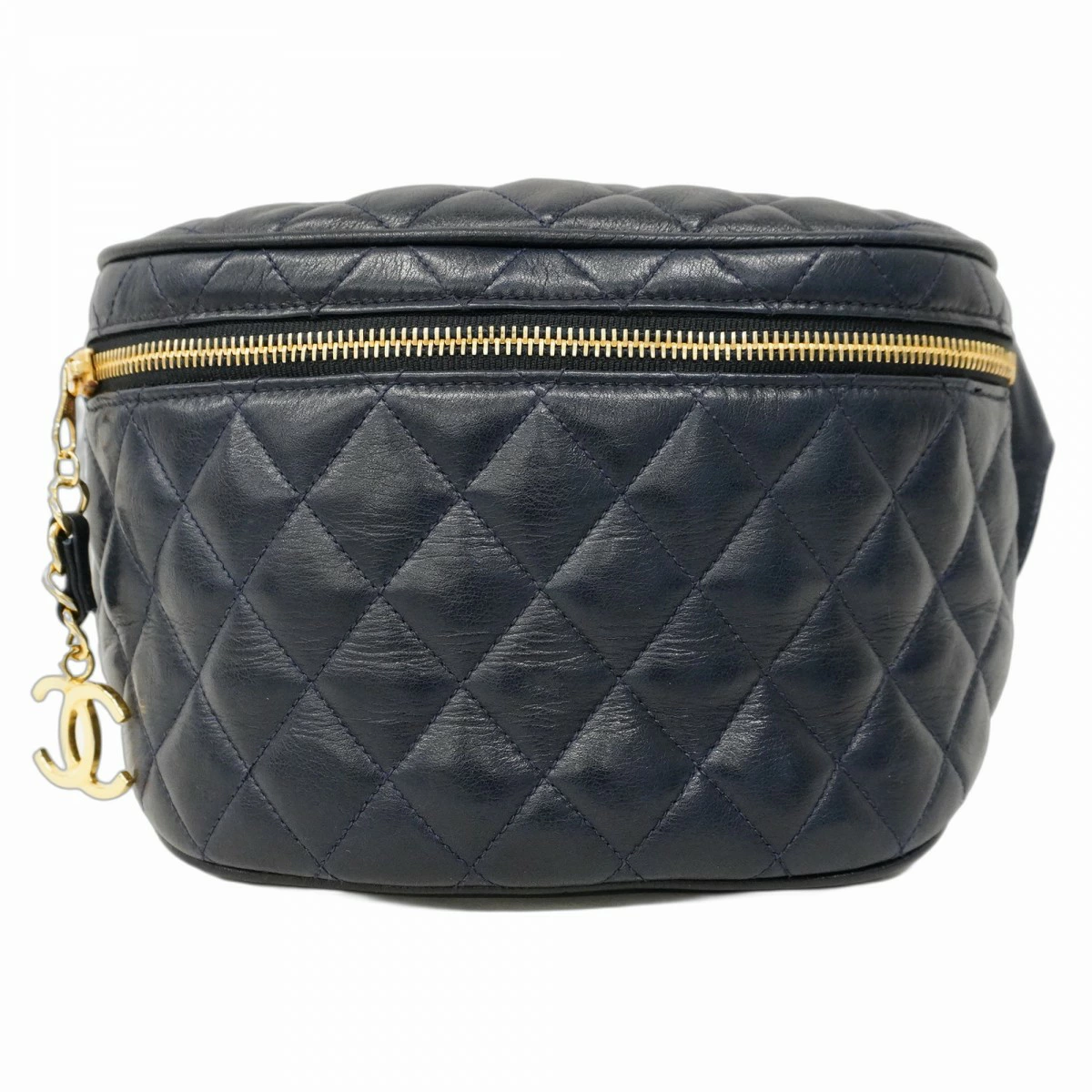 【5oc2017-h】シャネル ウエストバッグ マトラッセ ラムスキン ネイビー ゴールド金具【中古】レディース