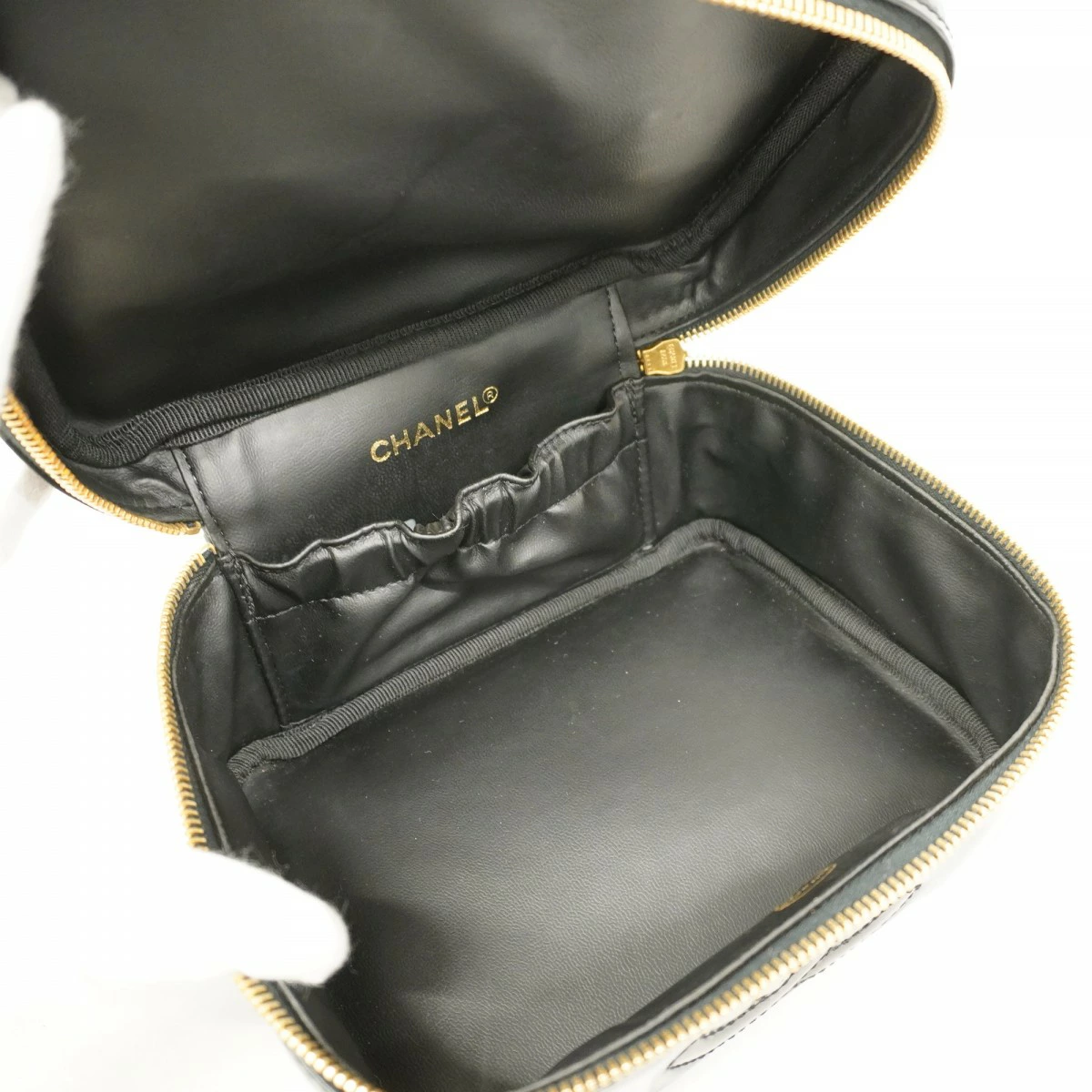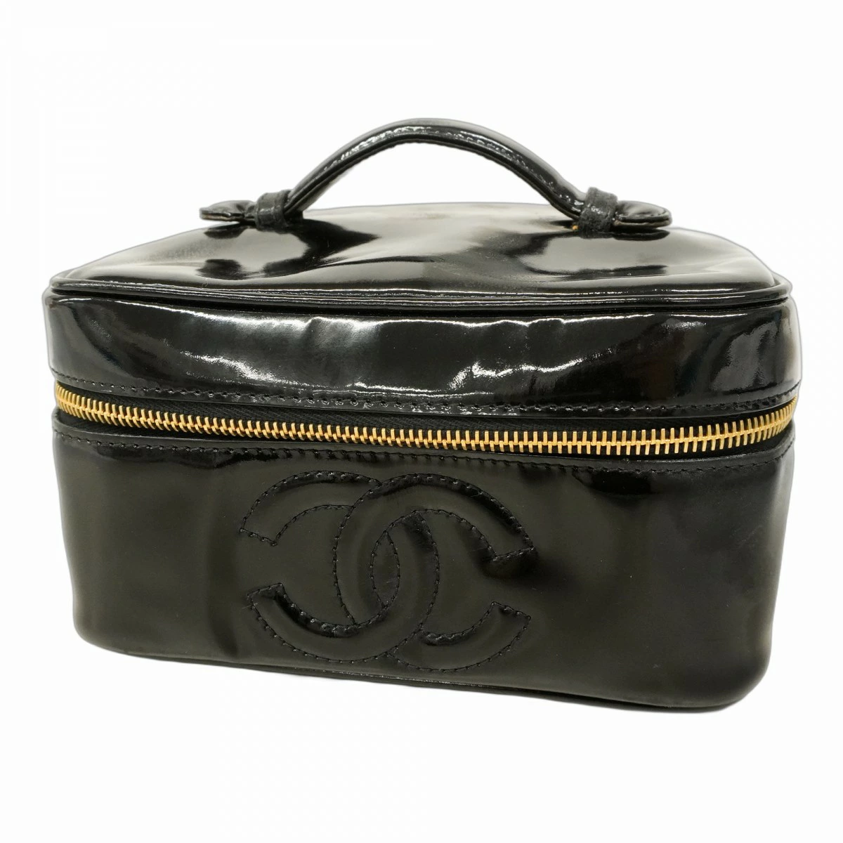 【5oc2026】シャネル バニティバッグ パテントレザー ブラック ゴールド金具【中古】レディース