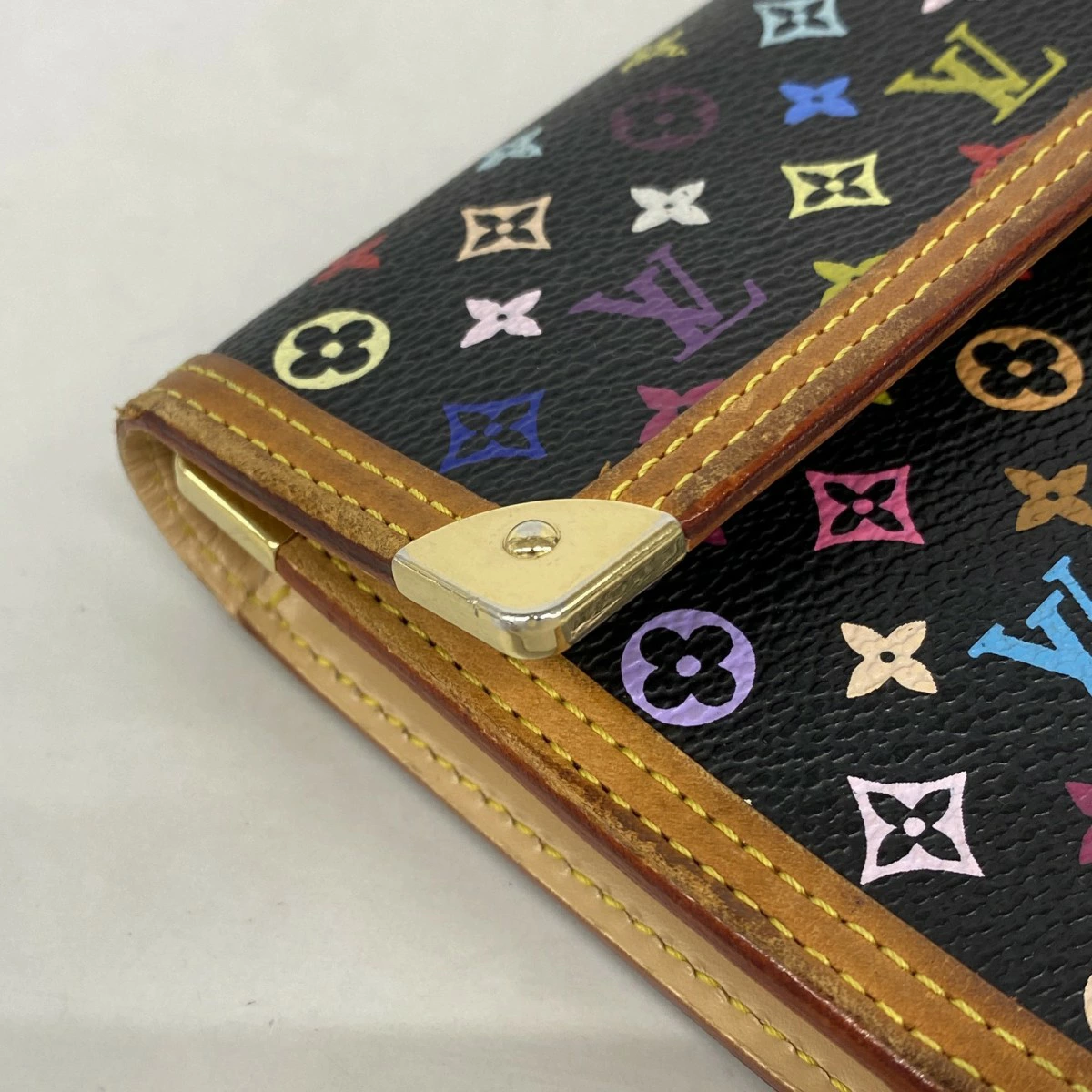 【5oc2179】ルイヴィトン 三つ折り長財布 モノグラム・マルチカラー ポルトトレゾール インターナショナル M92658 ノワール【中古】レディース
