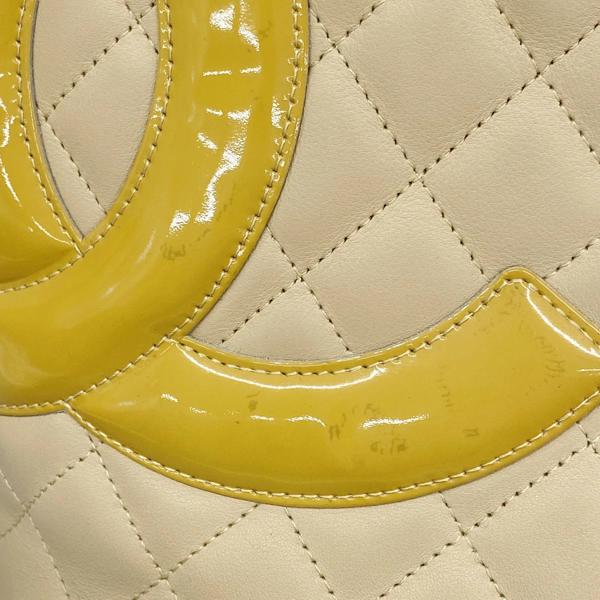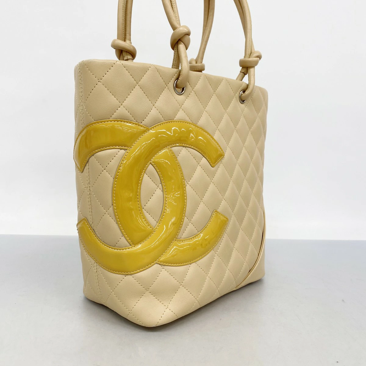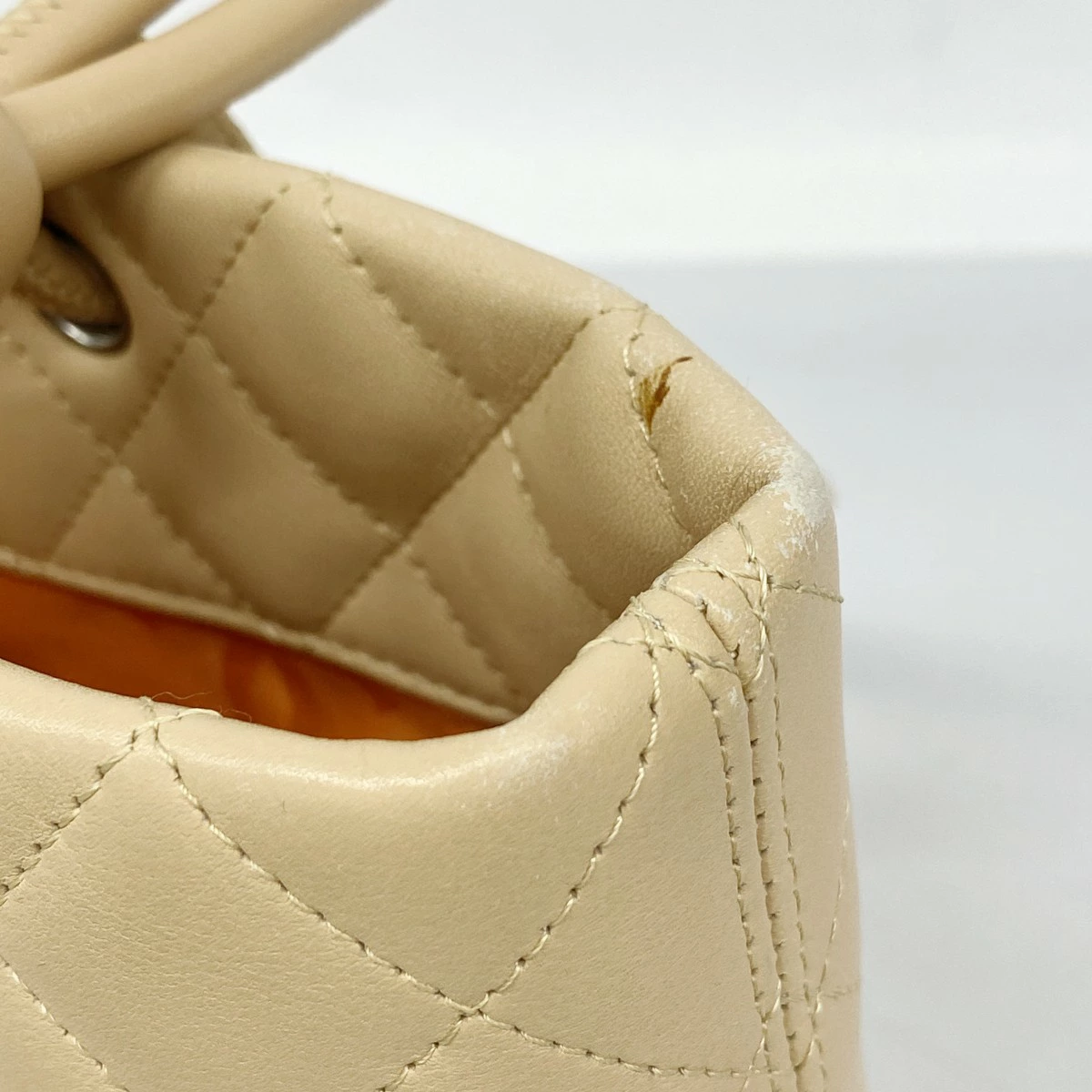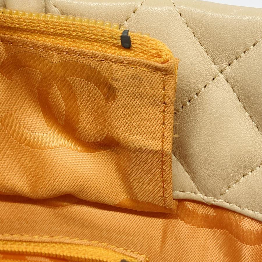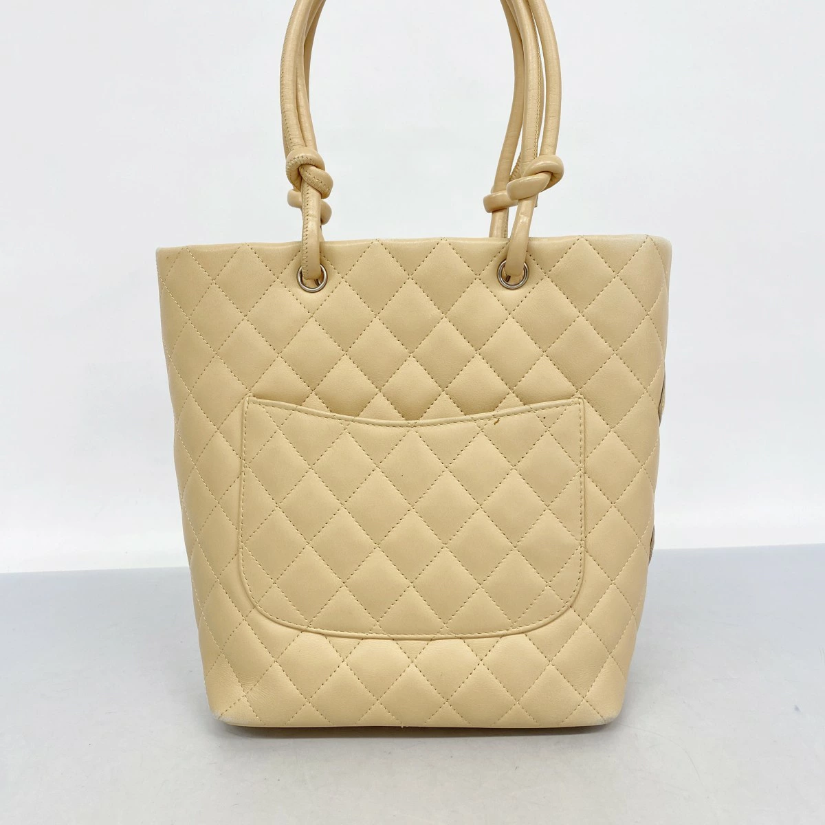 【5od3221-h】シャネル トートバッグ カンボン ラムスキン ベージュ シルバー金具【中古】レディース