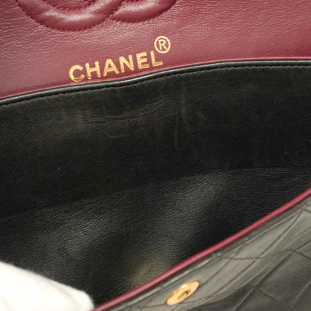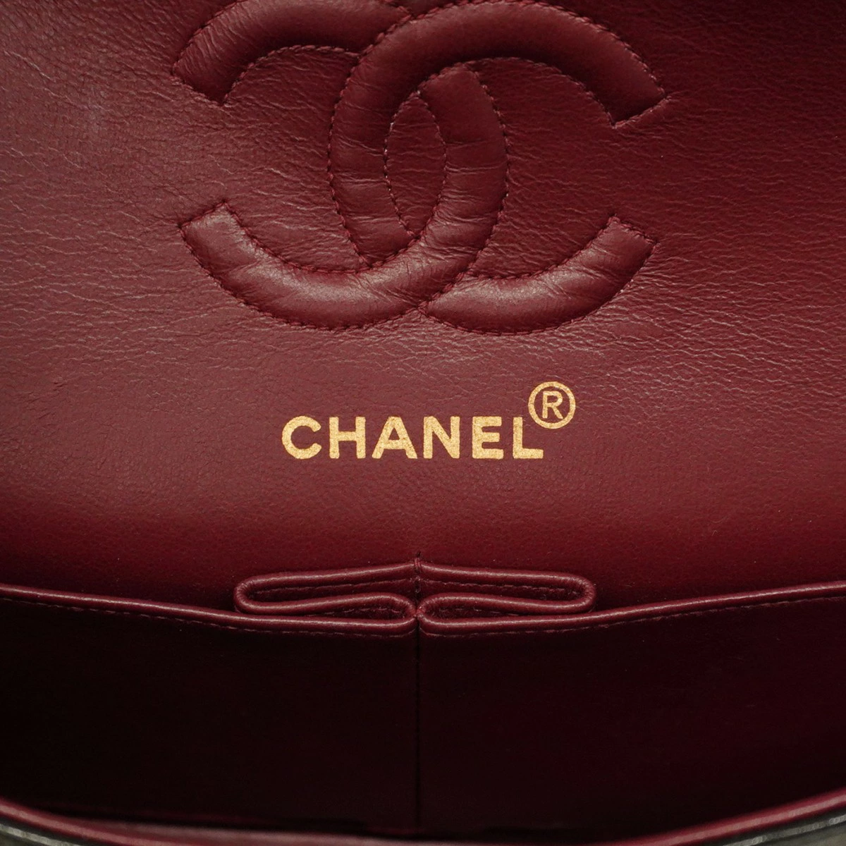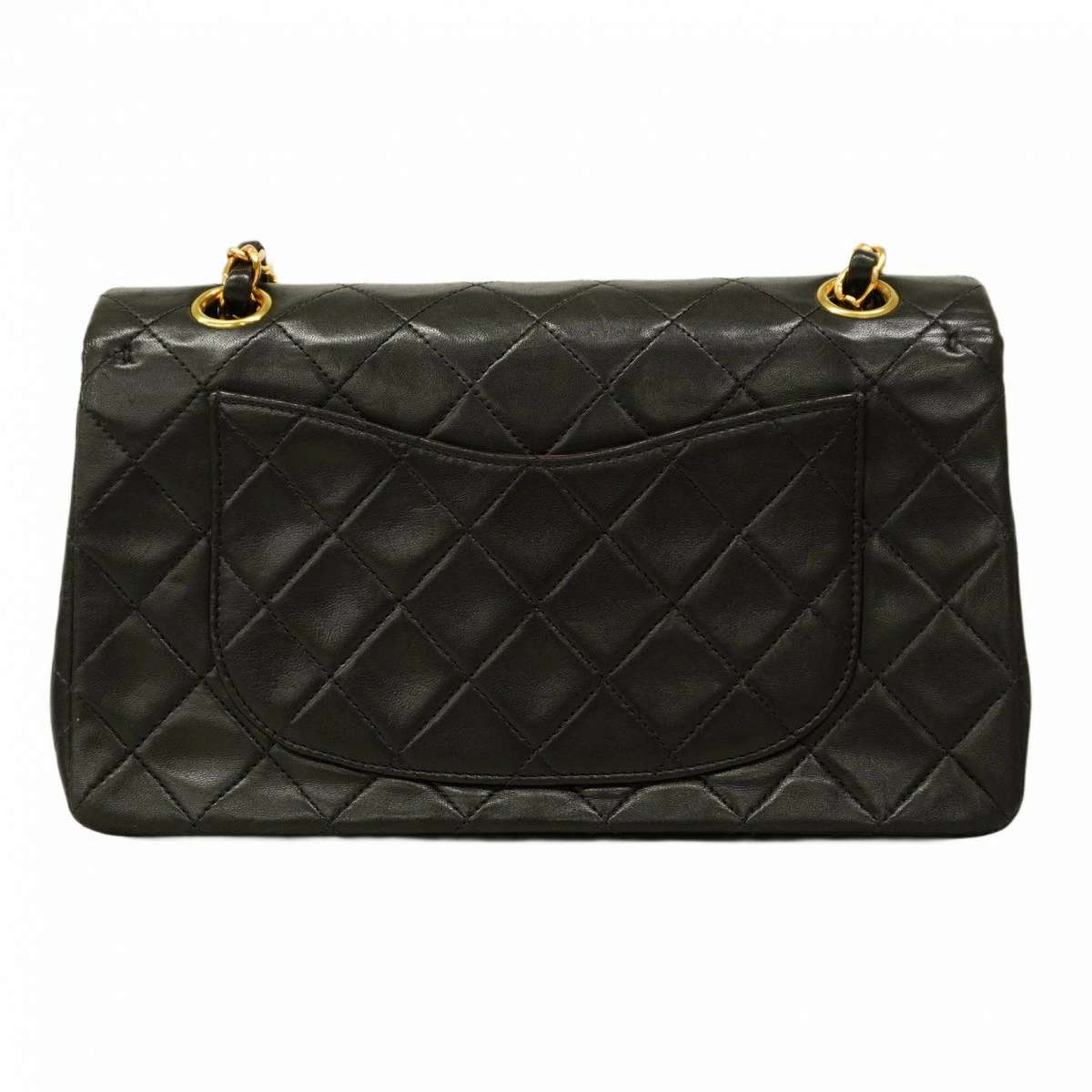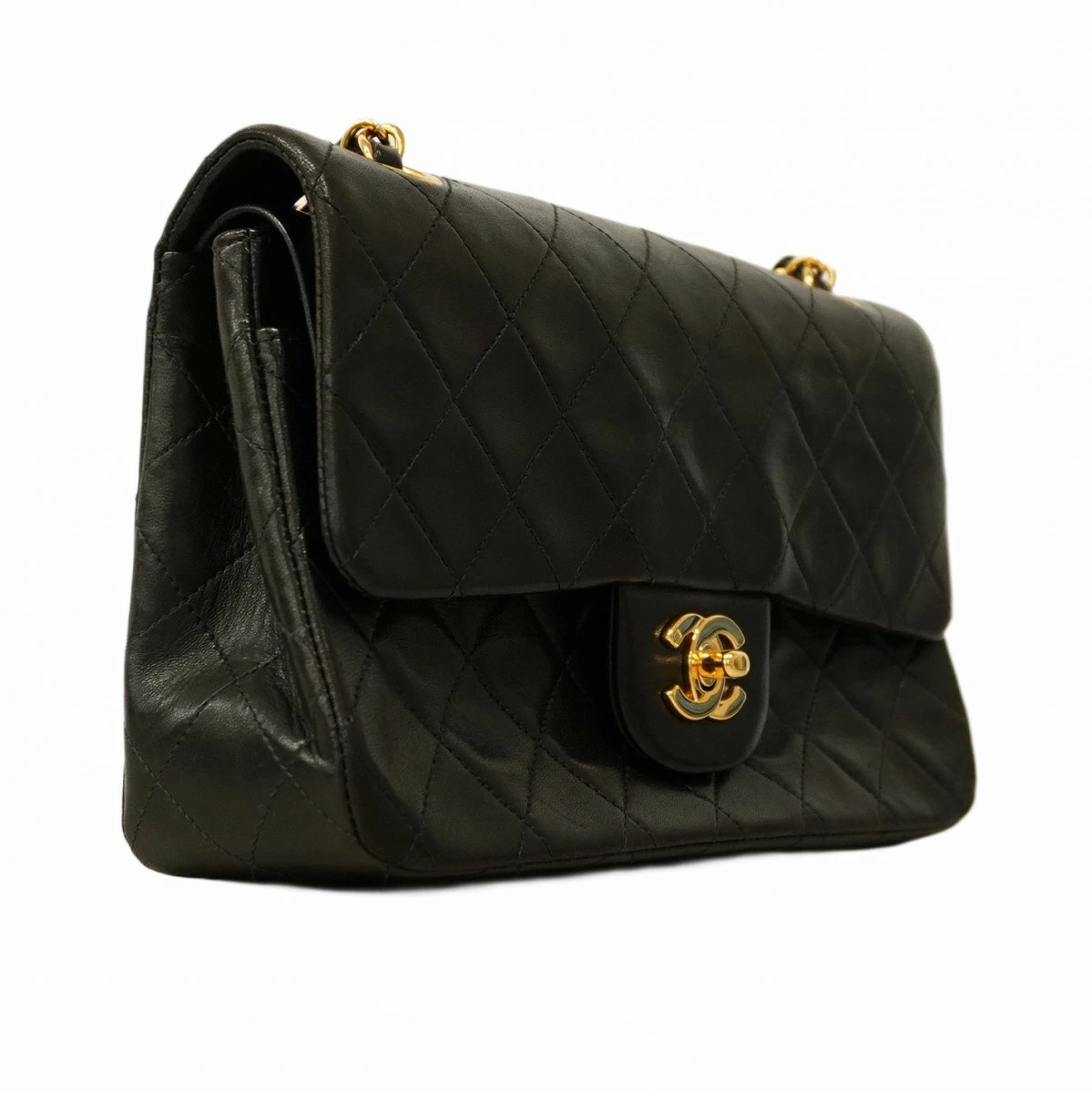 【5od3308-h】シャネル ショルダーバッグ マトラッセ Wフラップ Wチェーン ラムスキン ブラック ゴールド金具【中古】レディース