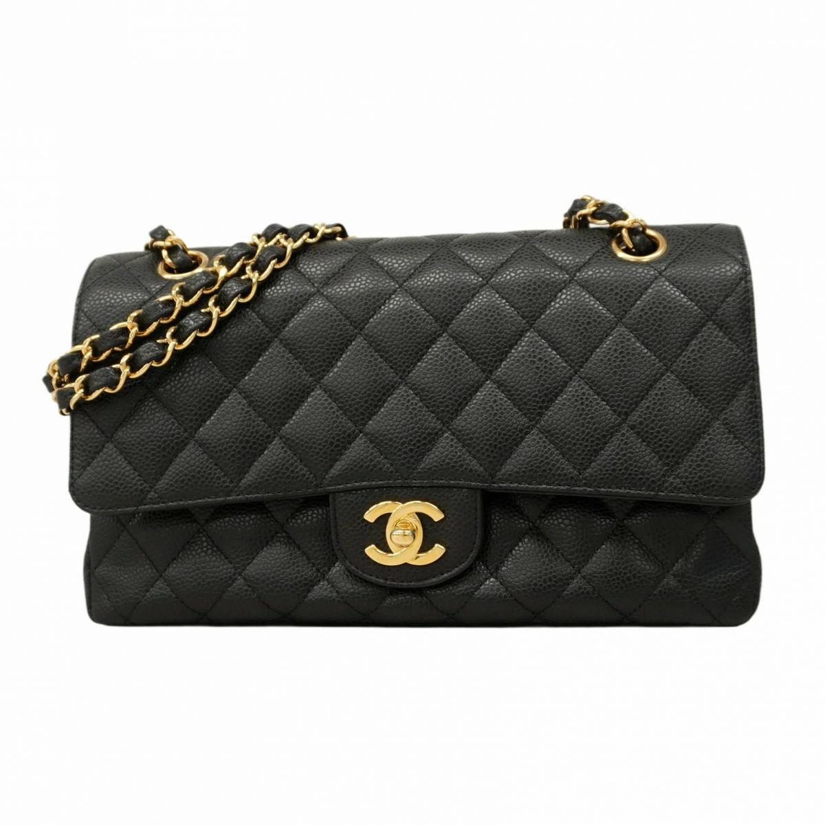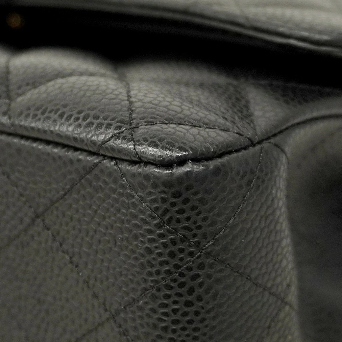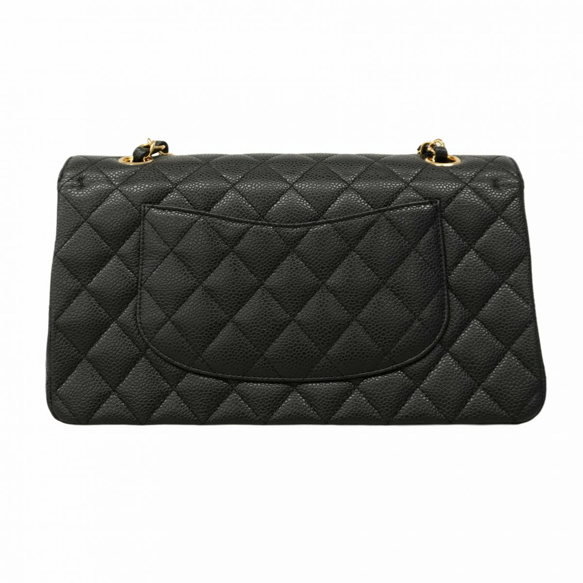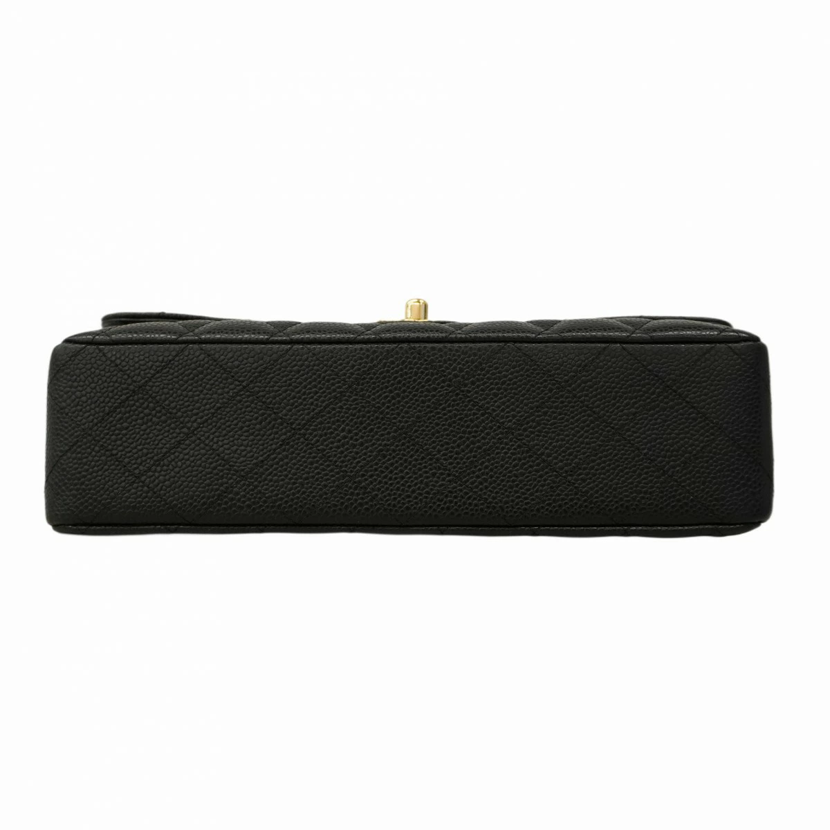 【5od3529-h】シャネル ショルダーバッグ マトラッセ Wフラップ Wチェーン キャビアスキン ブラック ゴールド金具【中古】レディース