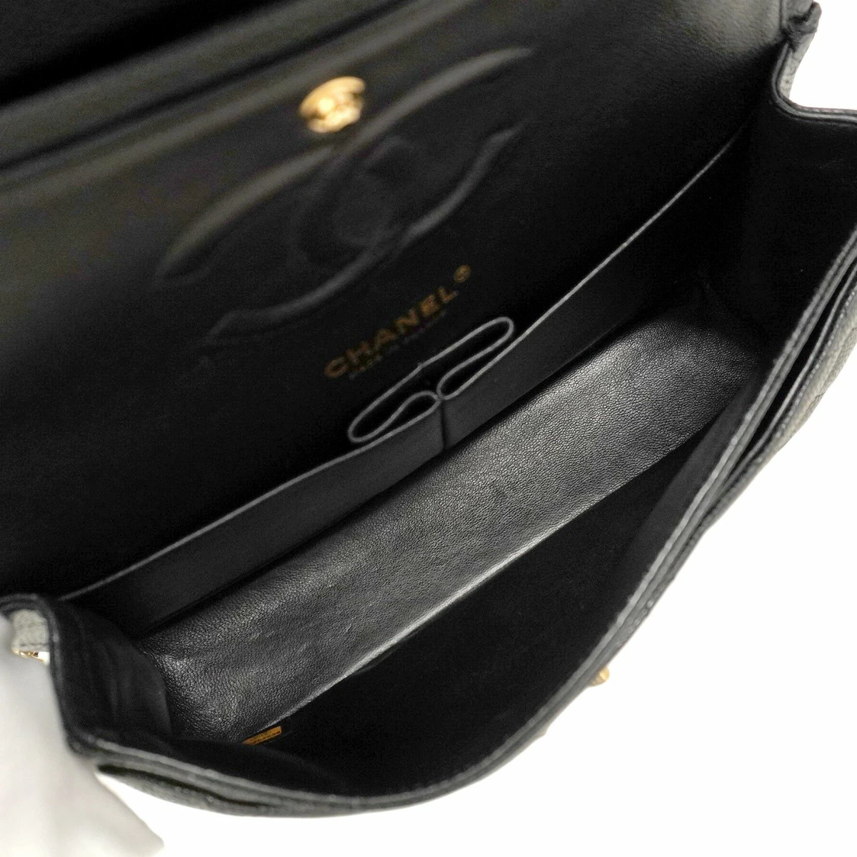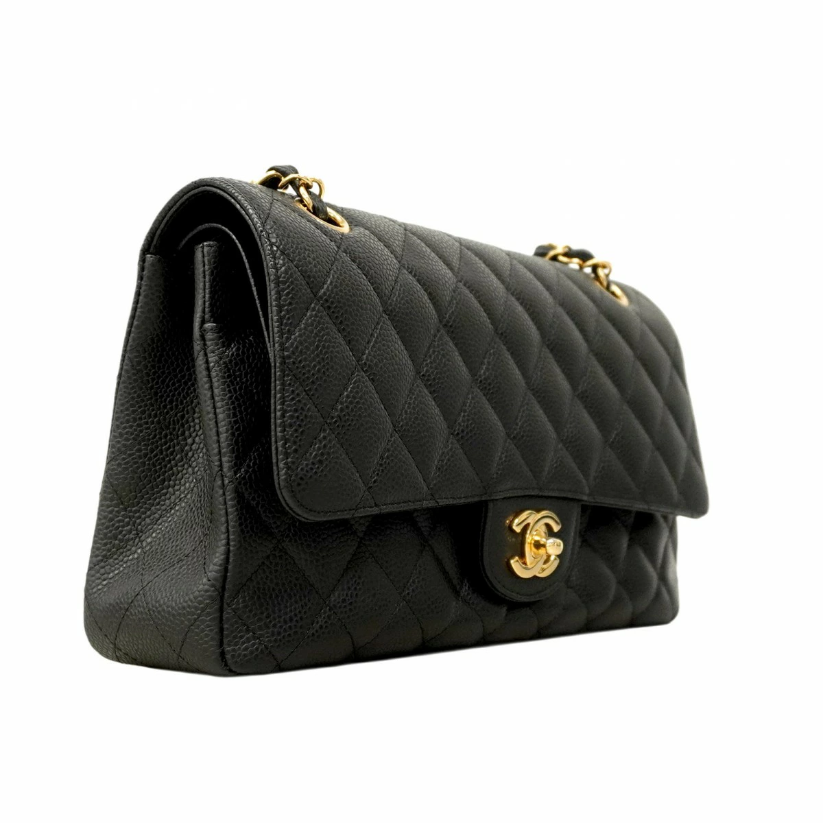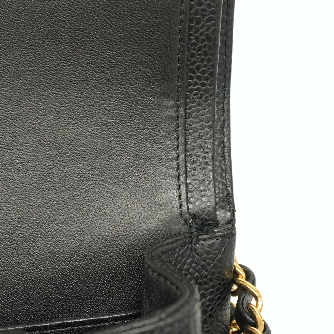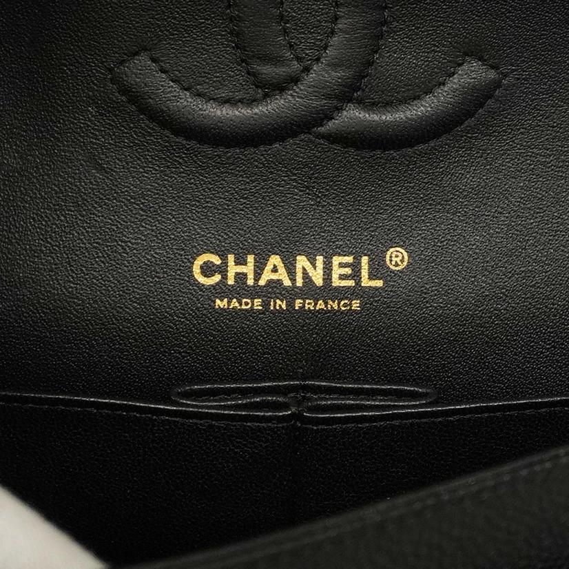 【5od3529-h】シャネル ショルダーバッグ マトラッセ Wフラップ Wチェーン キャビアスキン ブラック ゴールド金具【中古】レディース