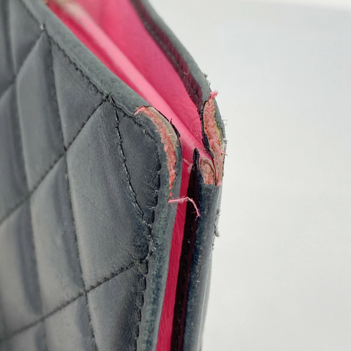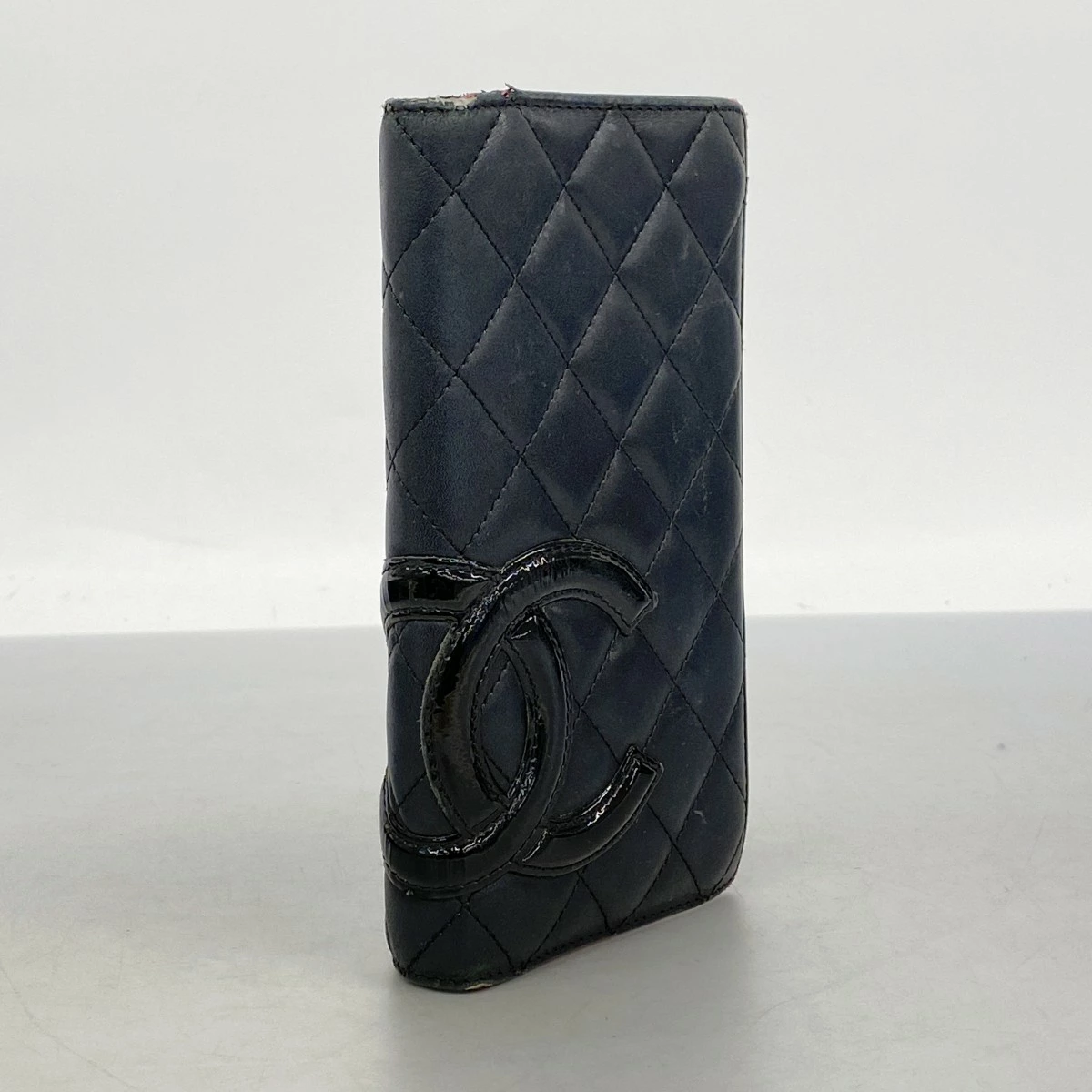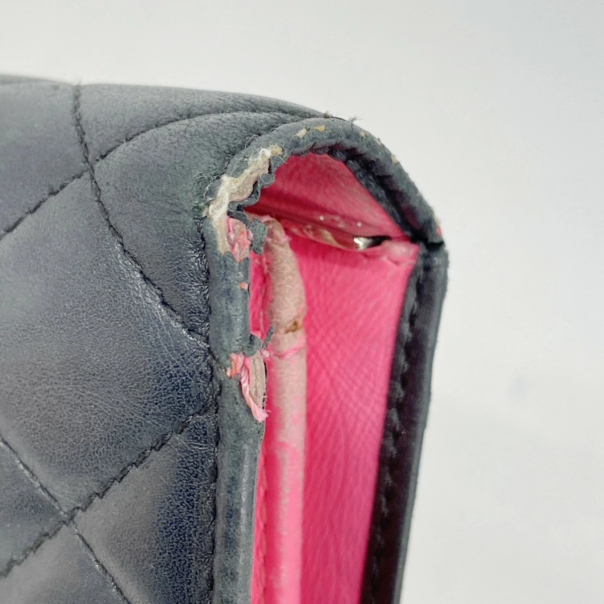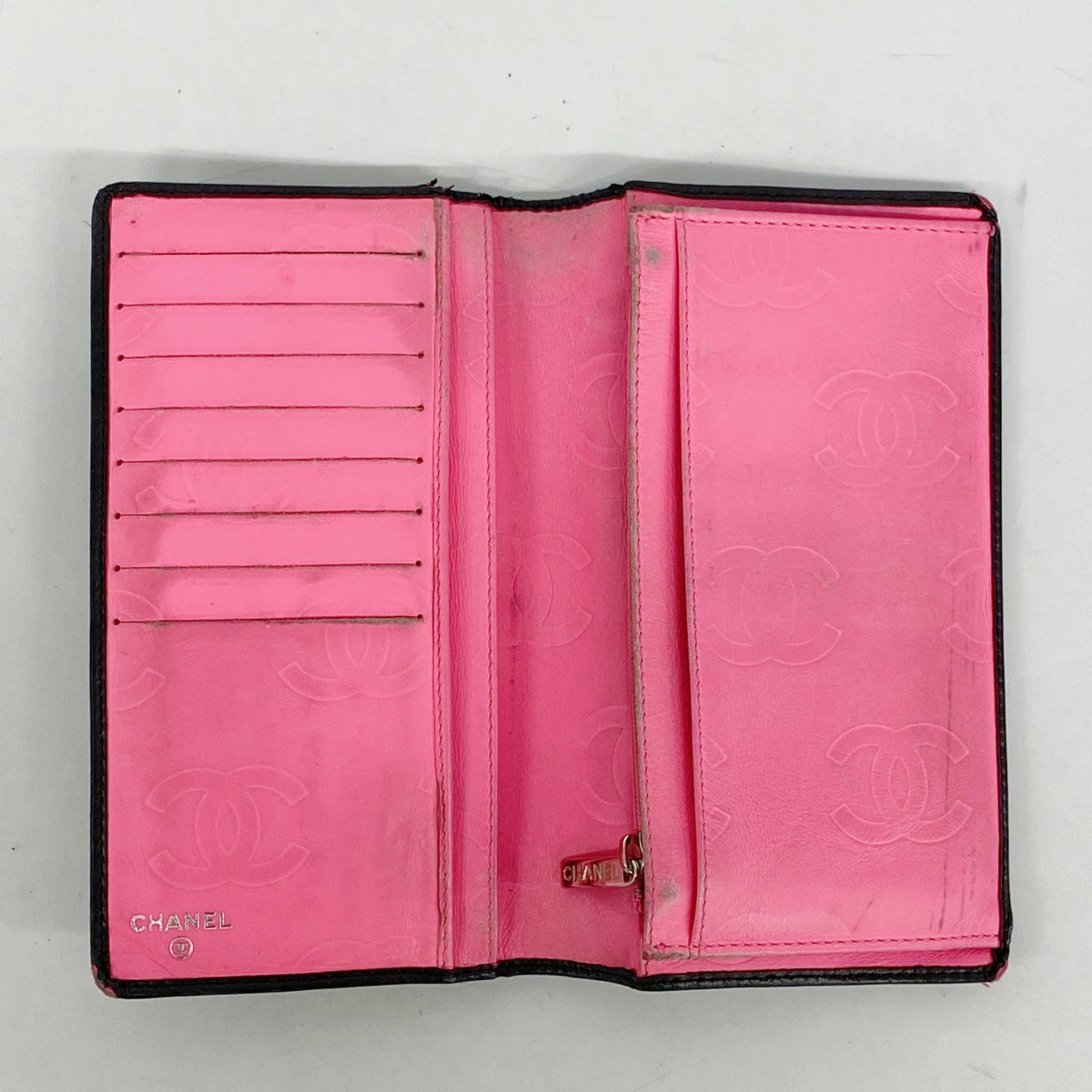 【5od3538】シャネル 長財布 カンボン ラムスキン ブラック シルバー金具【中古】レディース