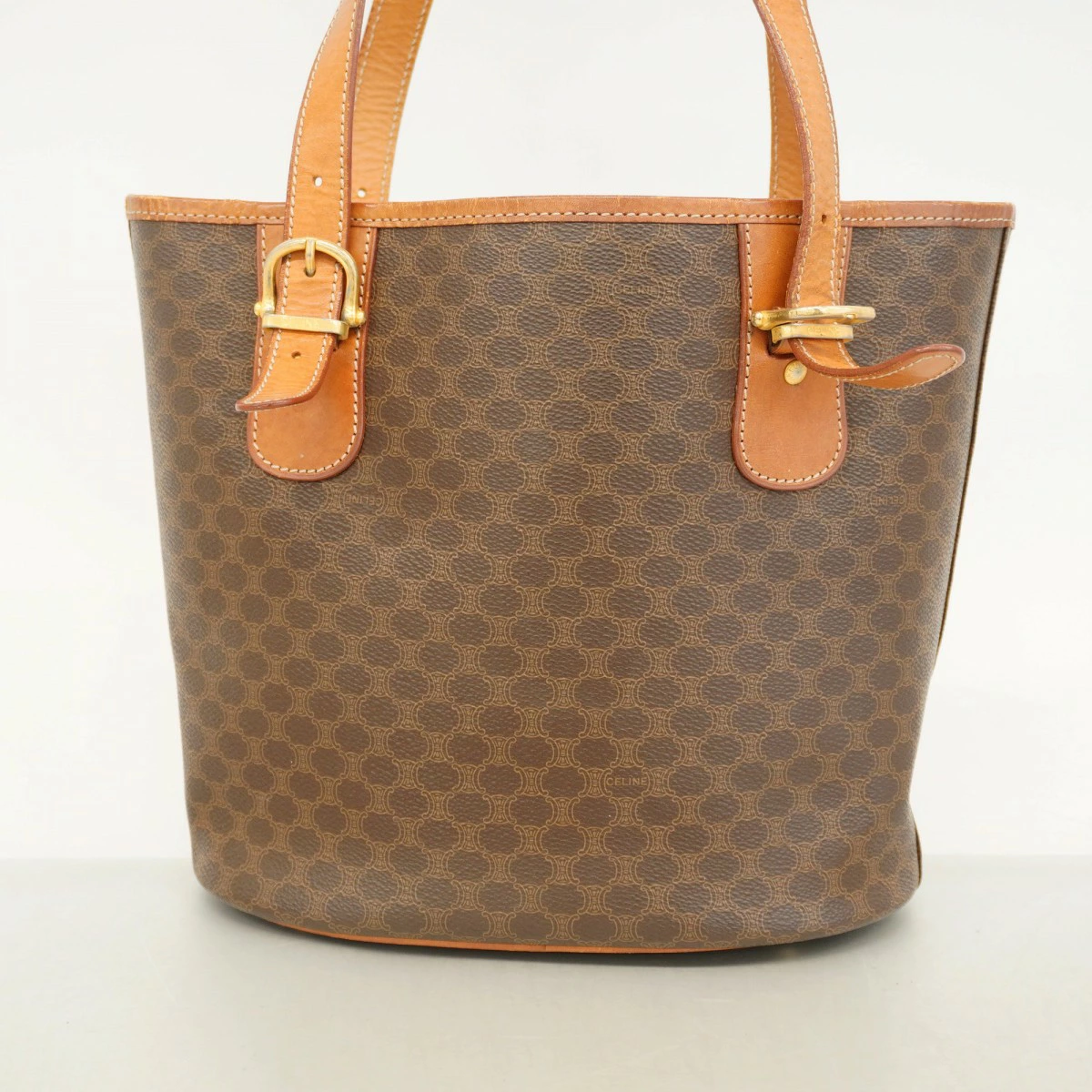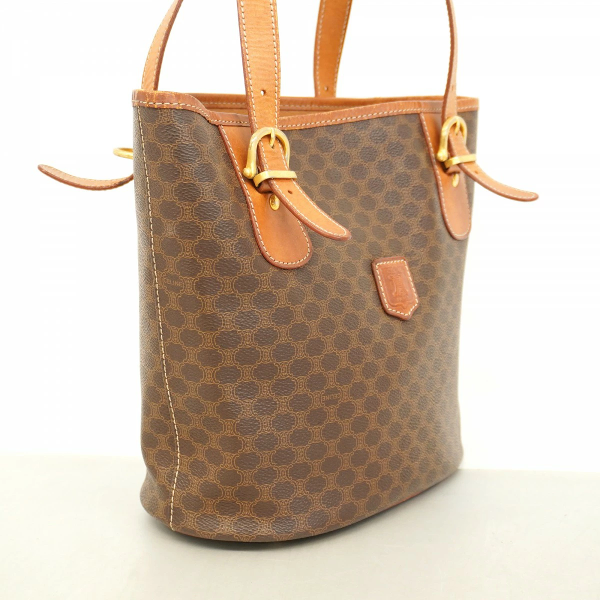 【5od3852】セリーヌ トートバッグ マカダム PVC ブラウン ゴールド金具【中古】レディース