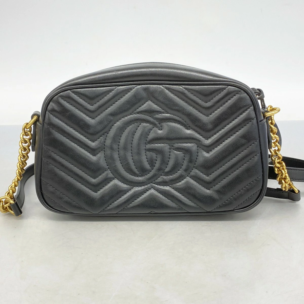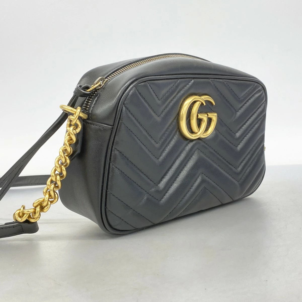 [5od4033-h] Gucci GG Marmont Shoulder Bag 447632 Black Leather with Gold Hardware [Pre-owned] Women's