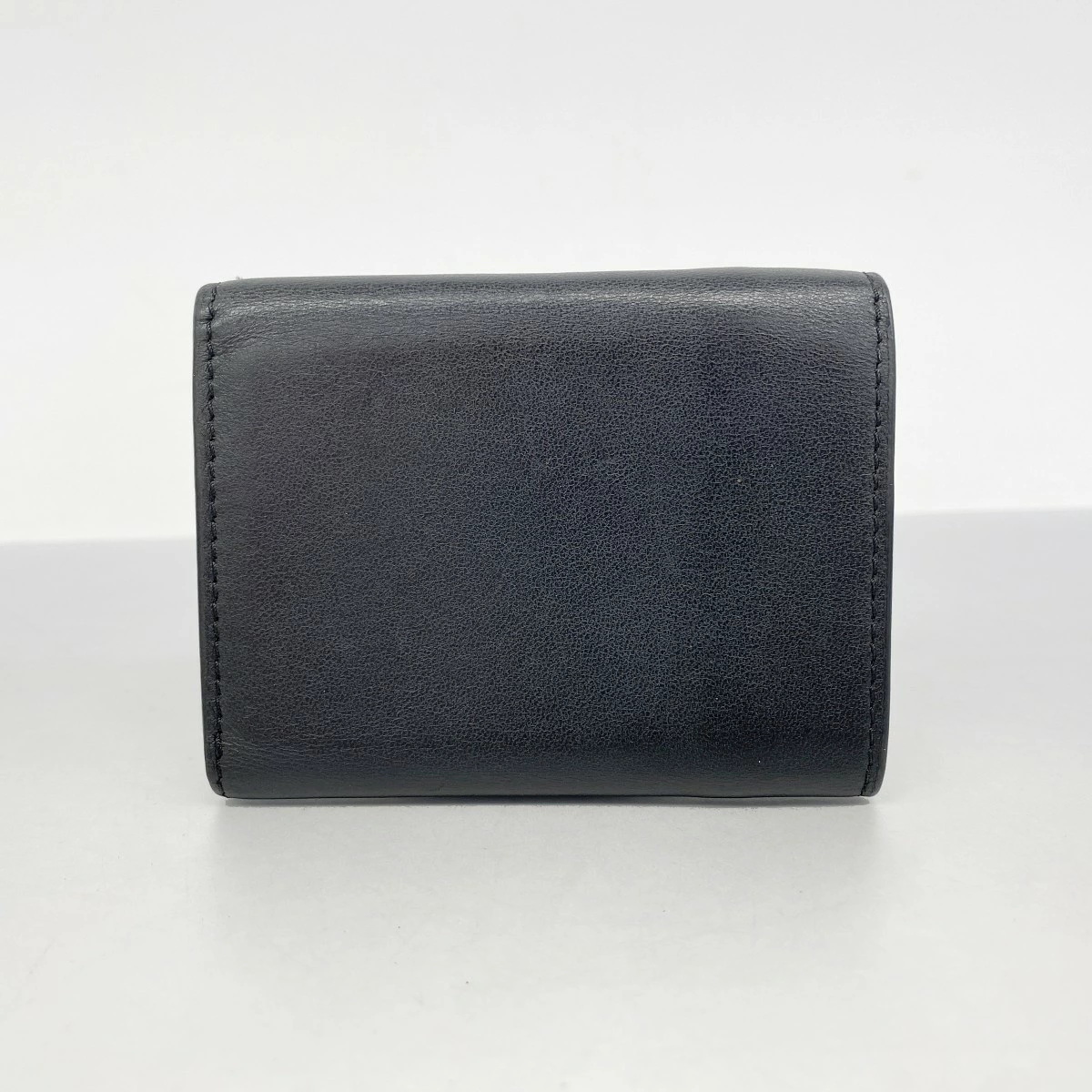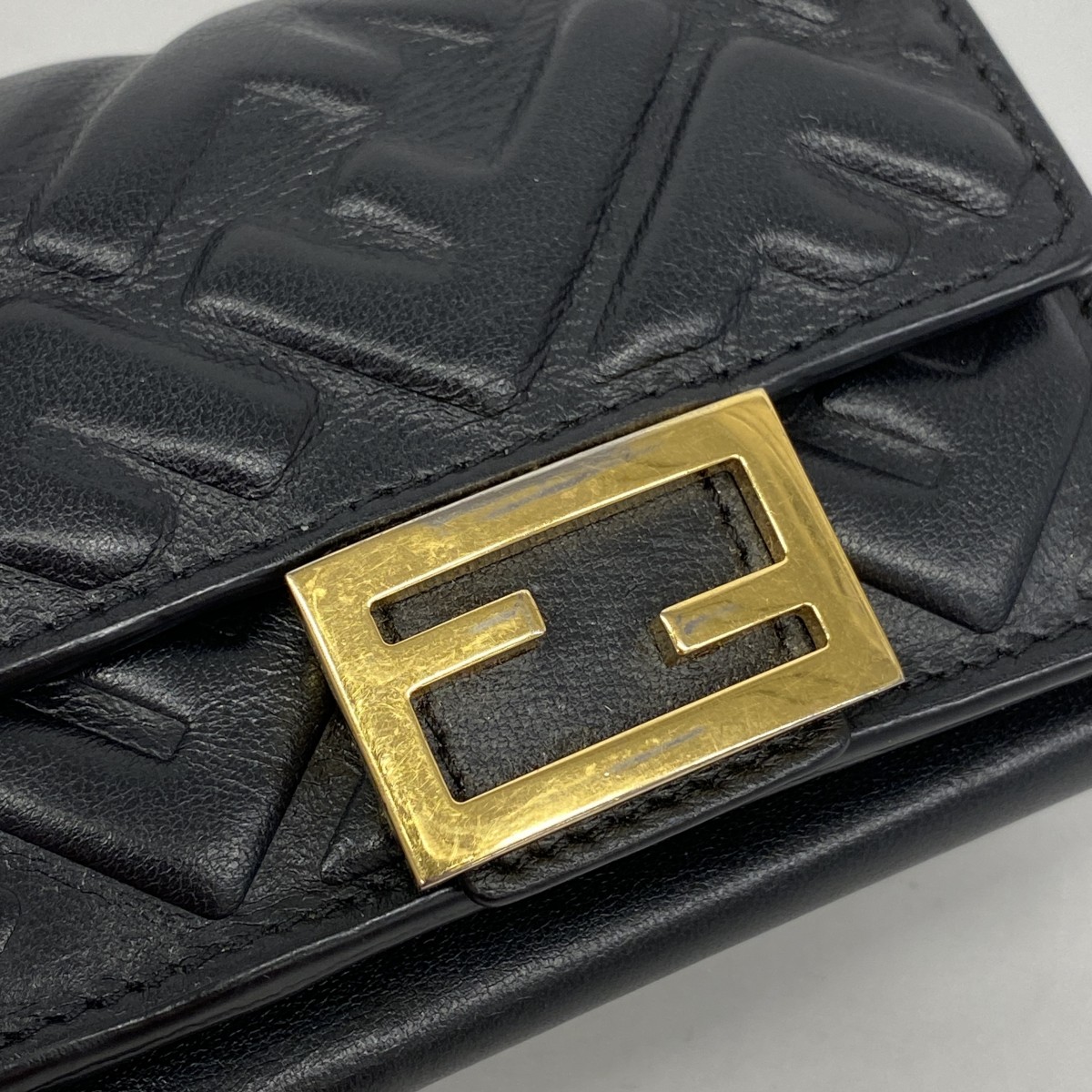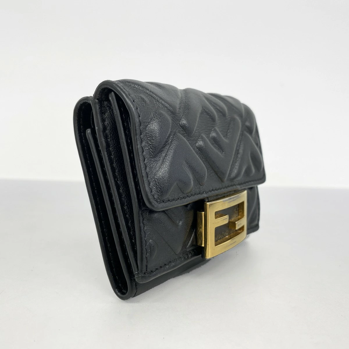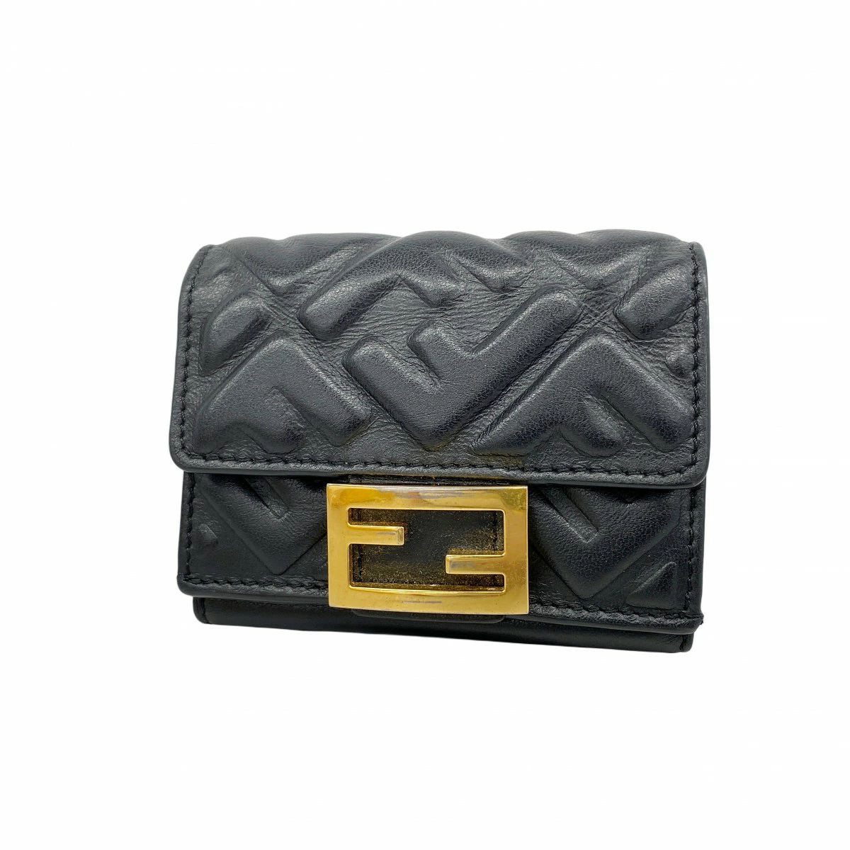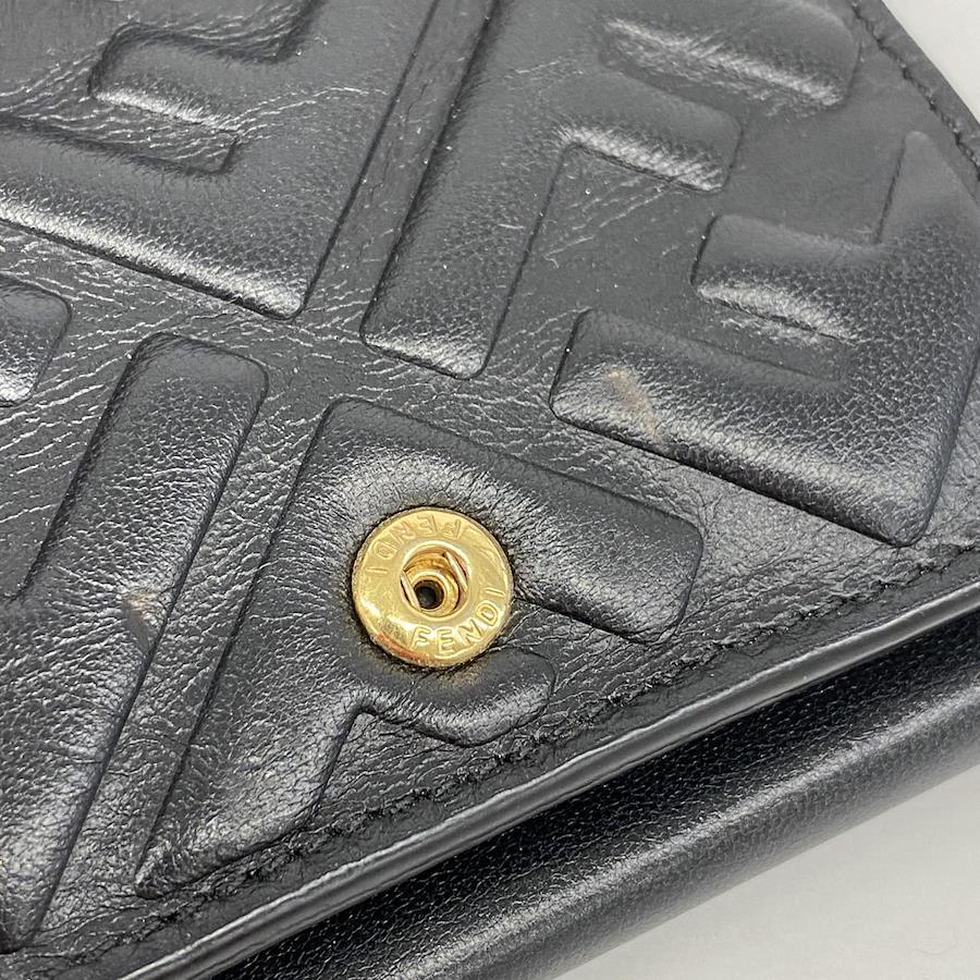 【5od4168】フェンディ 三つ折り財布 レザー ブラック ゴールド金具【中古】レディース