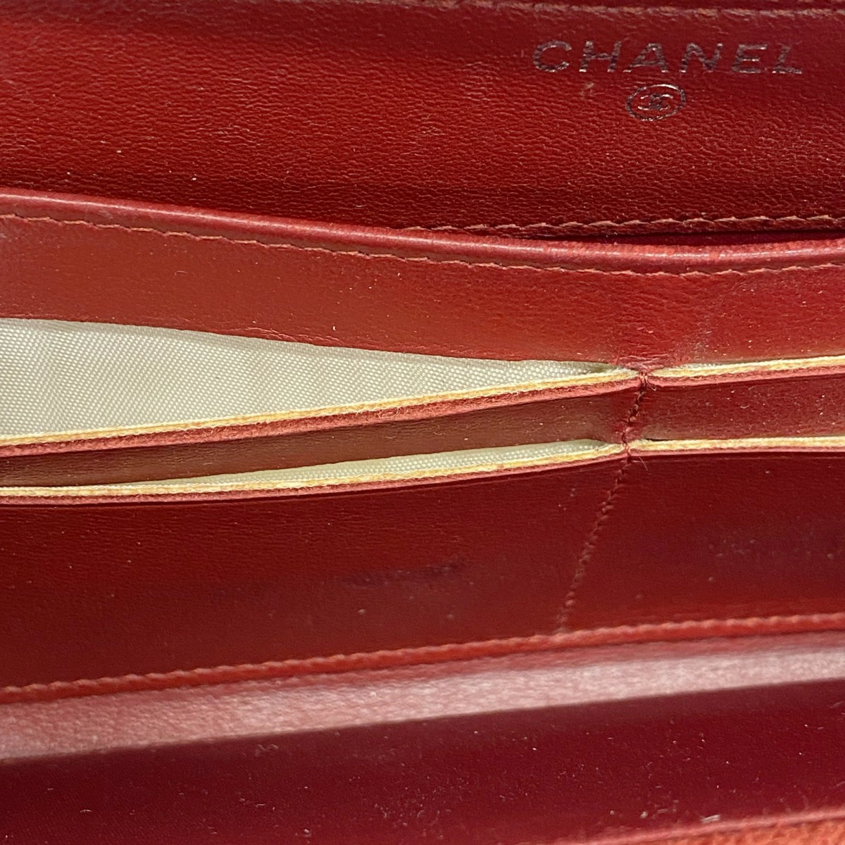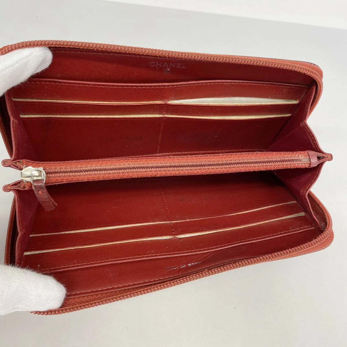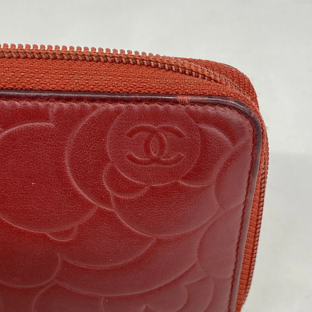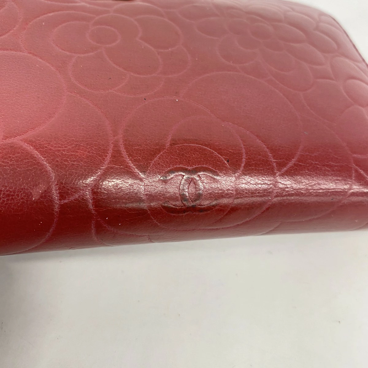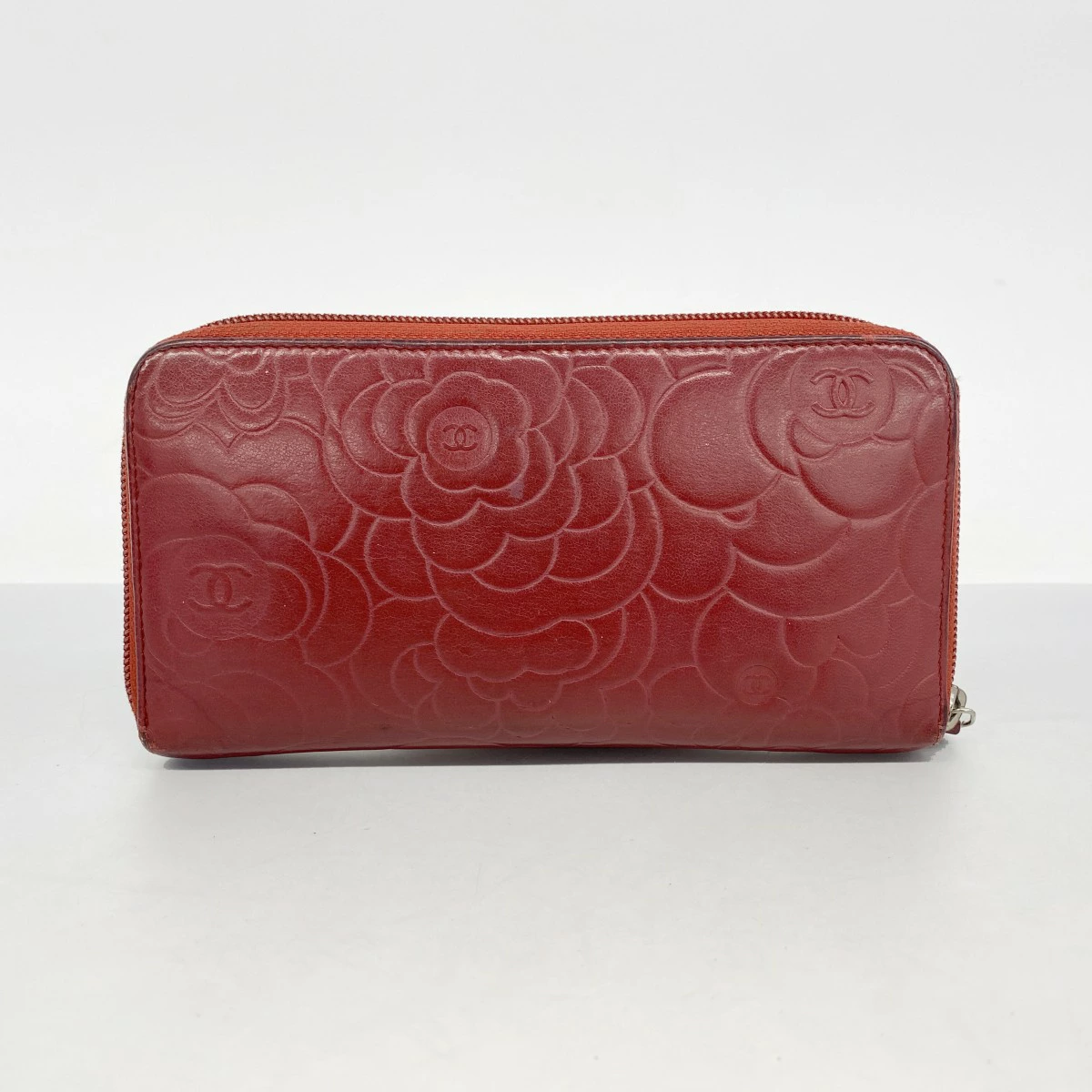 【5od4184】シャネル 長財布 カメリア ラムスキン ボルドー シルバー金具【中古】レディース