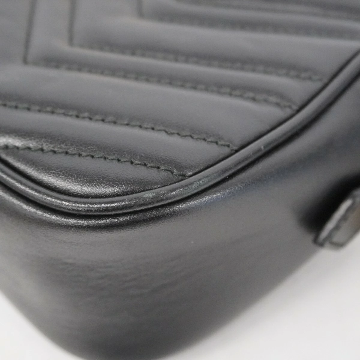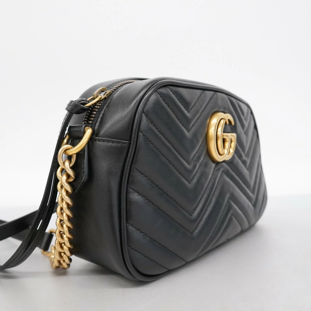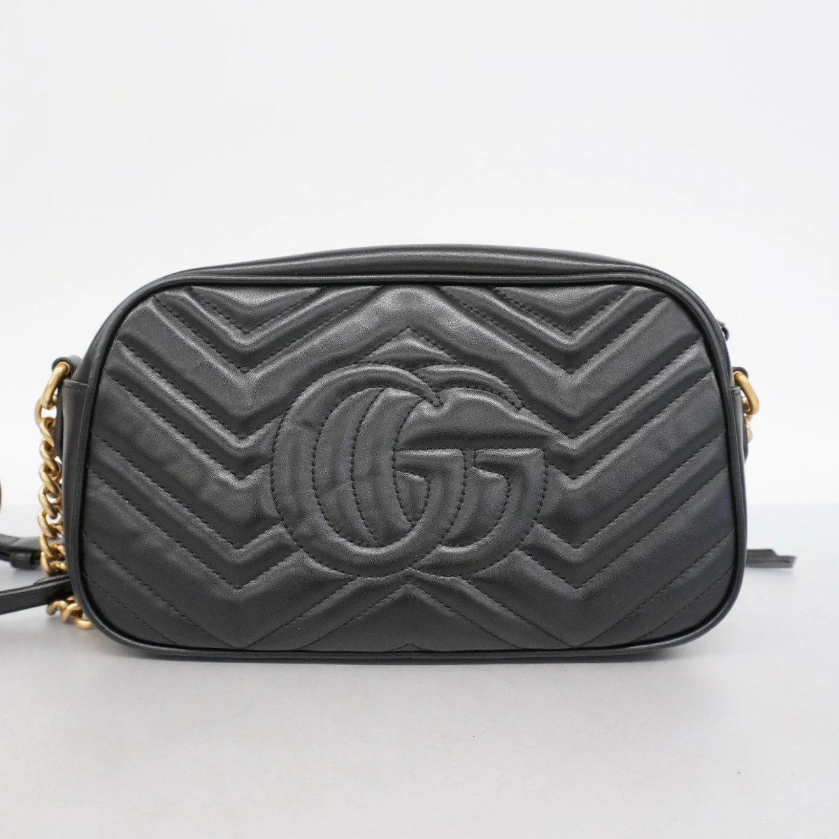 【5od4275】グッチ ショルダーバッグ GGマーモント 447632 レザー ブラック ゴールド金具【中古】レディース