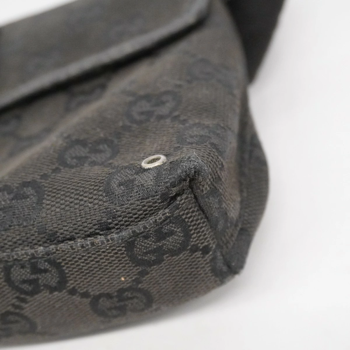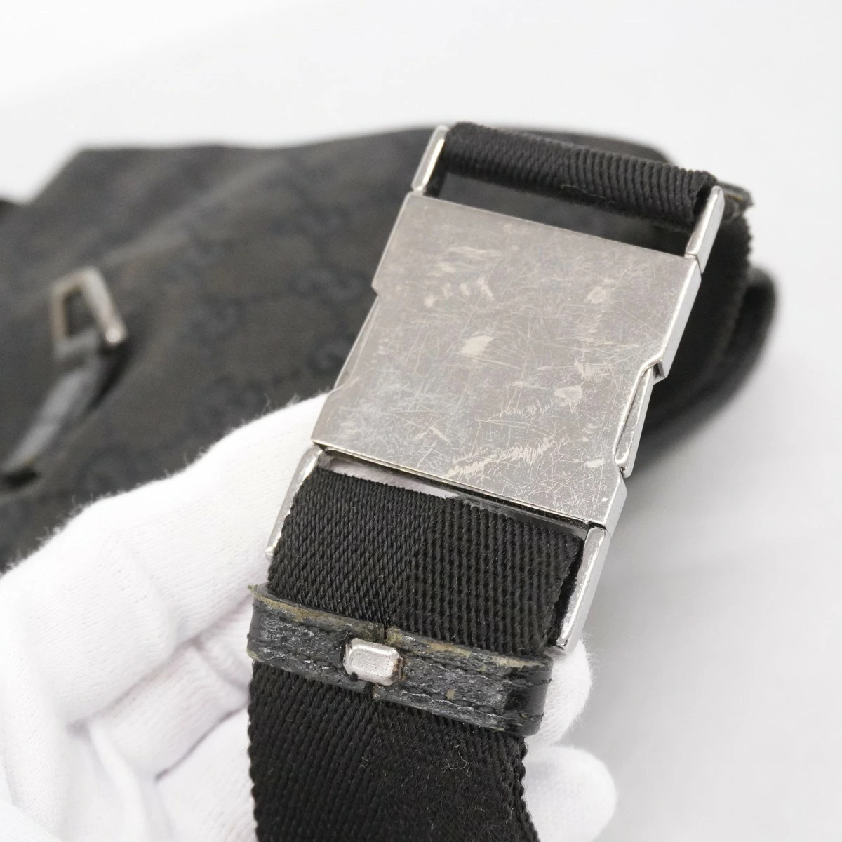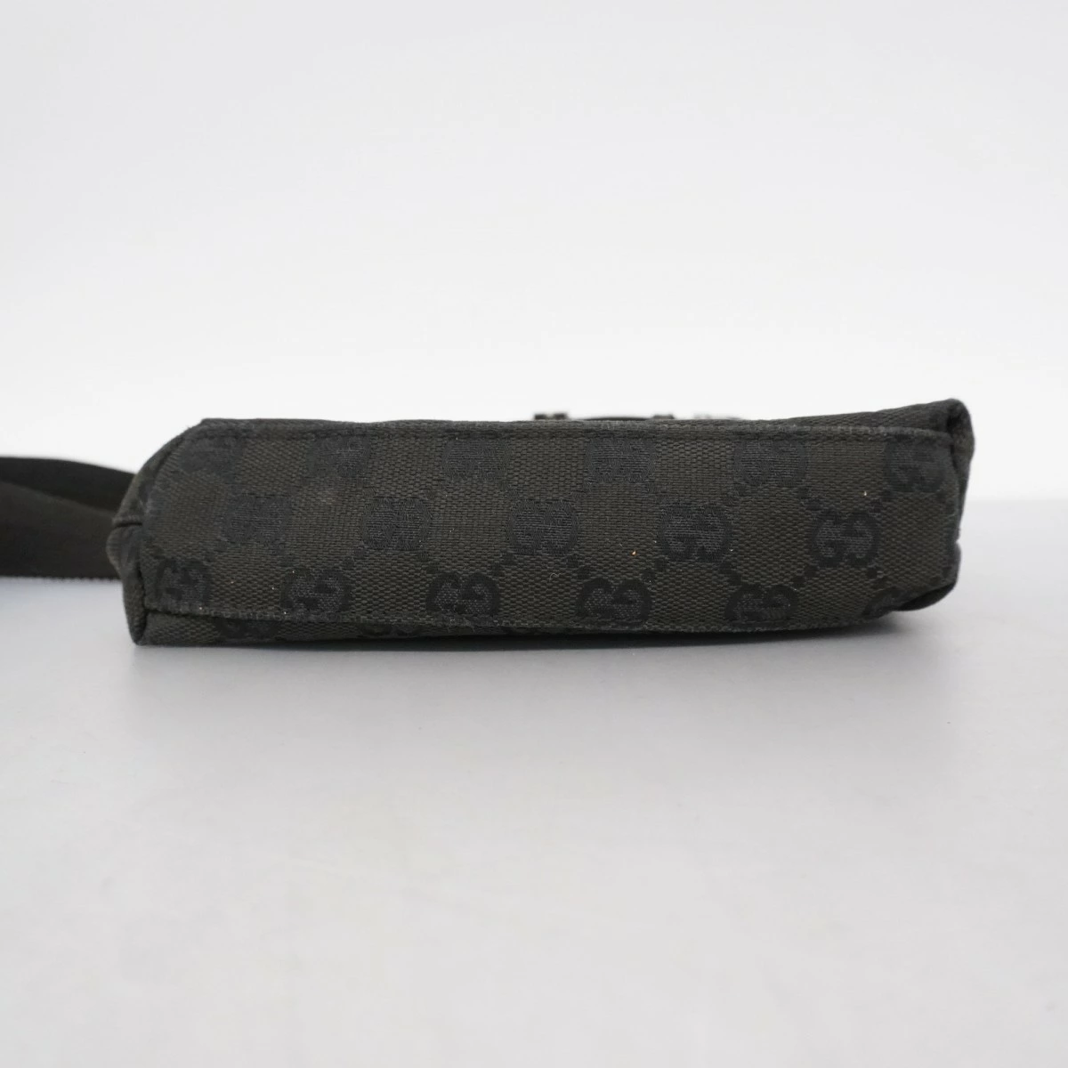 【5od4291】グッチ ウエストバッグ GGキャンバス 92543 キャンバス ブラック シルバー金具【中古】メンズ レディース ユニセックス