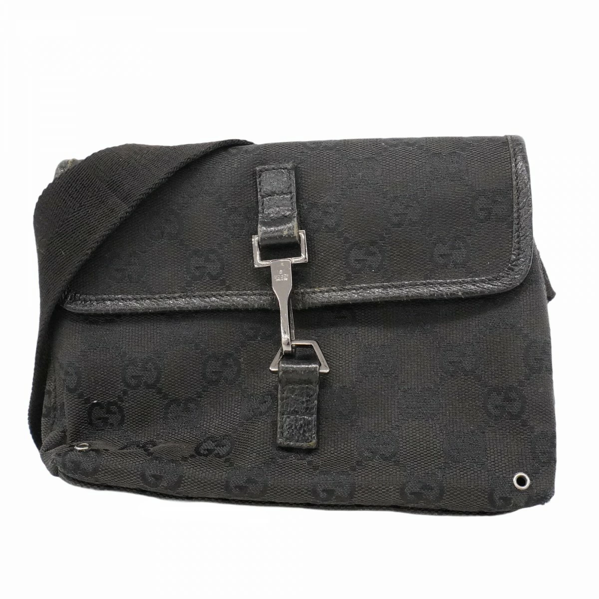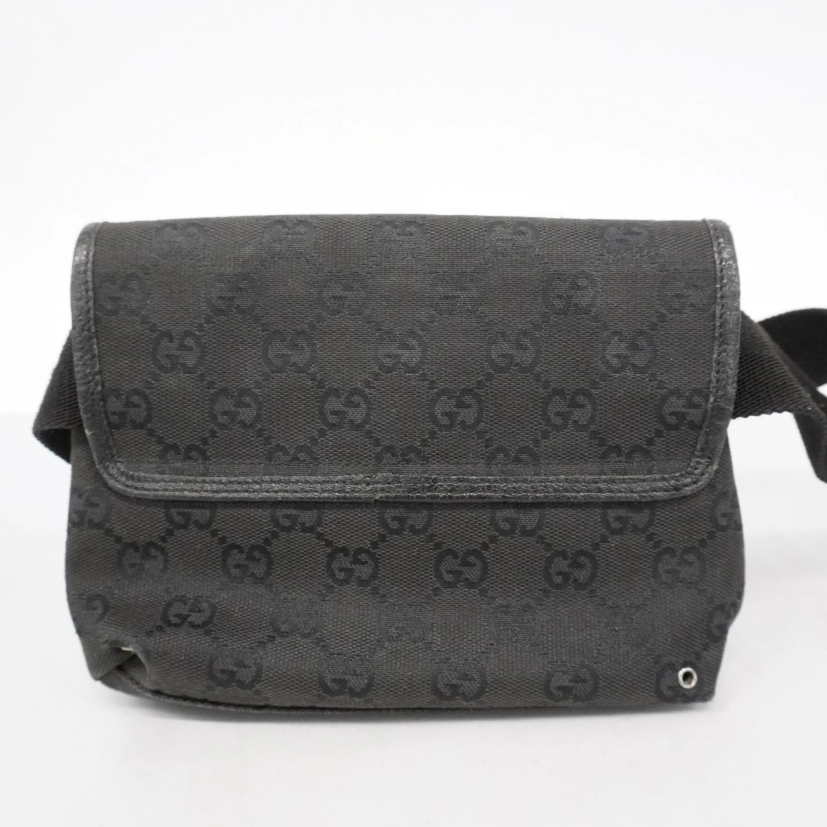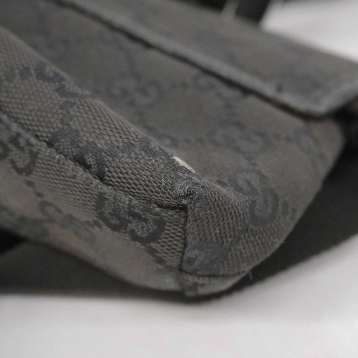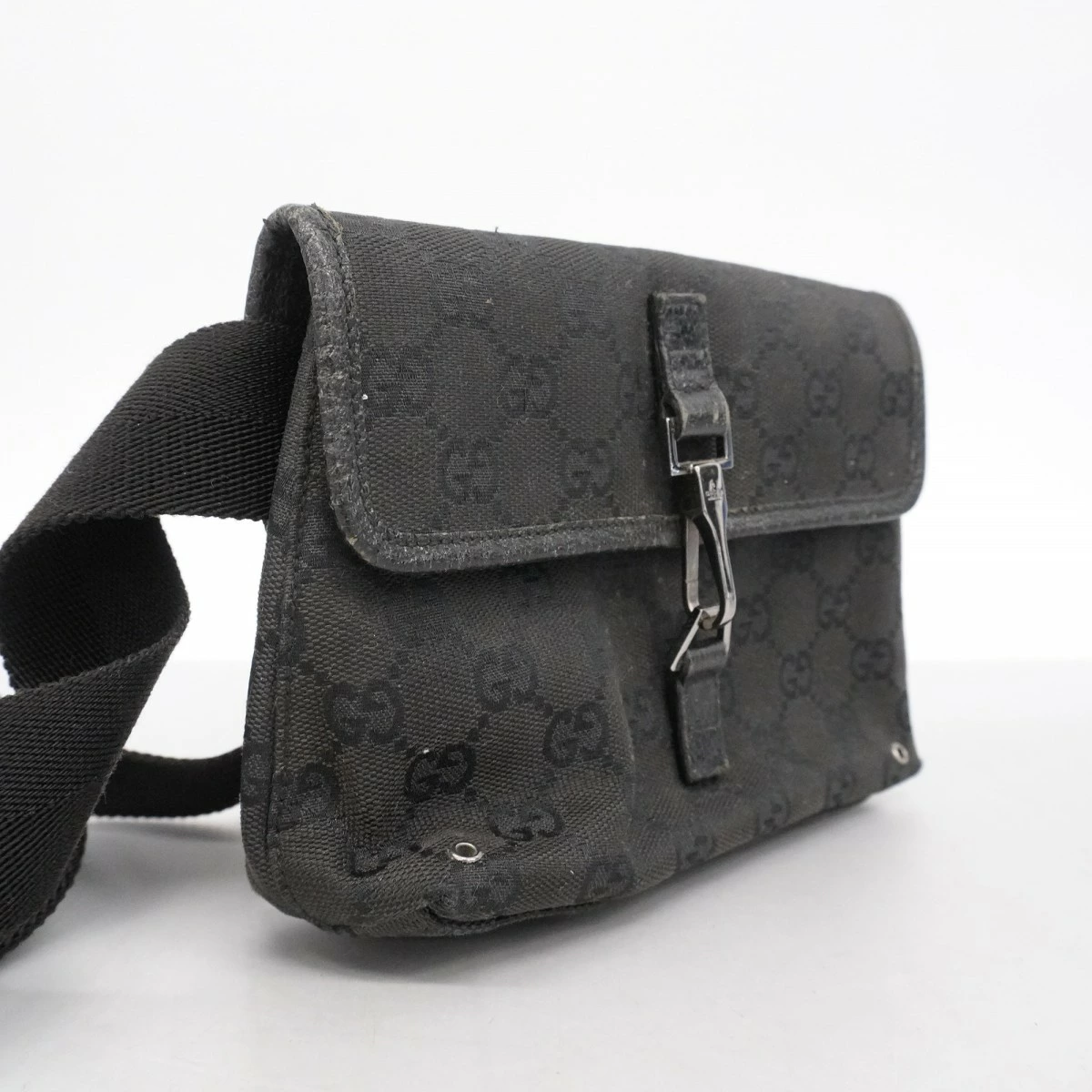 【5od4291】グッチ ウエストバッグ GGキャンバス 92543 キャンバス ブラック シルバー金具【中古】メンズ レディース ユニセックス