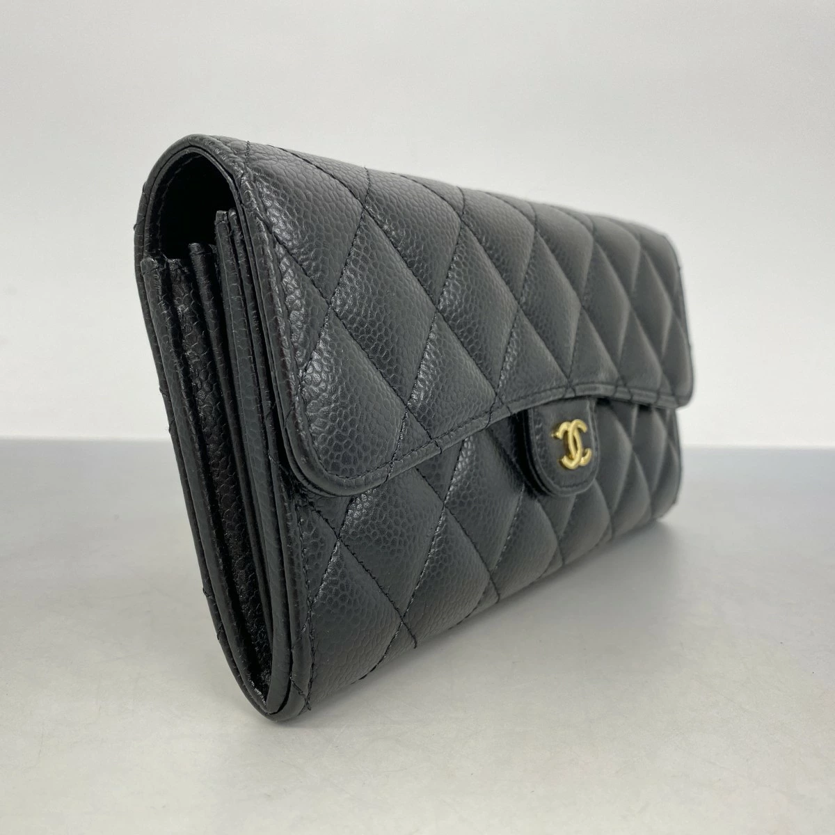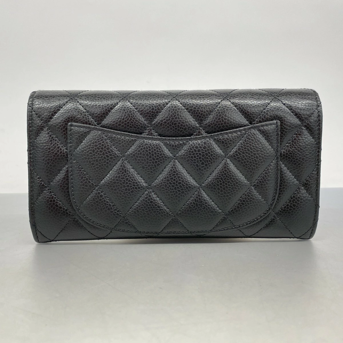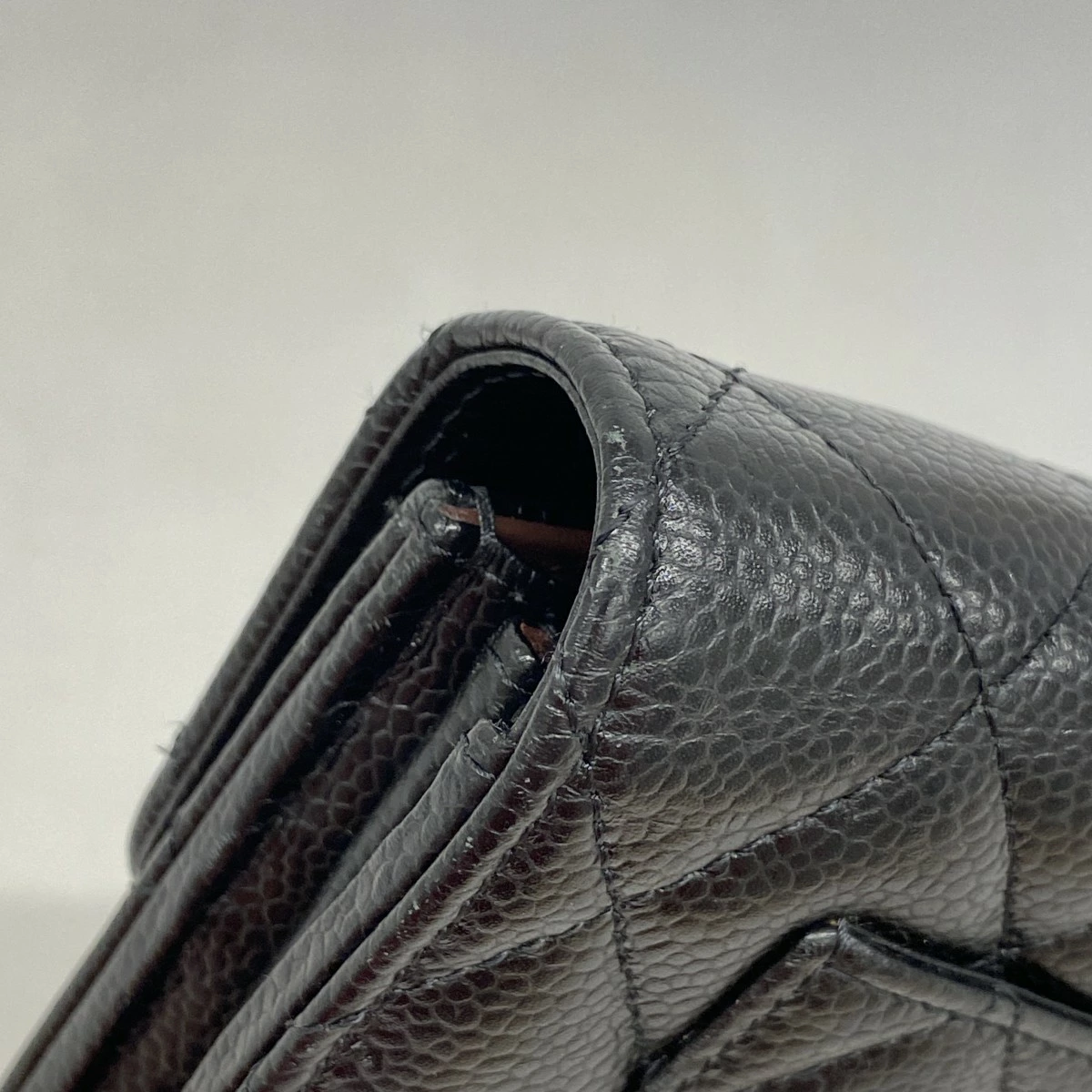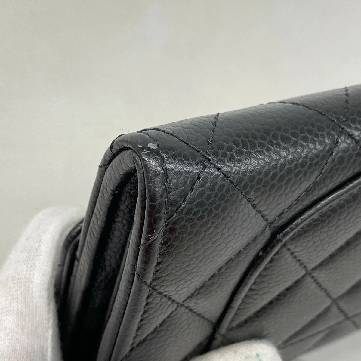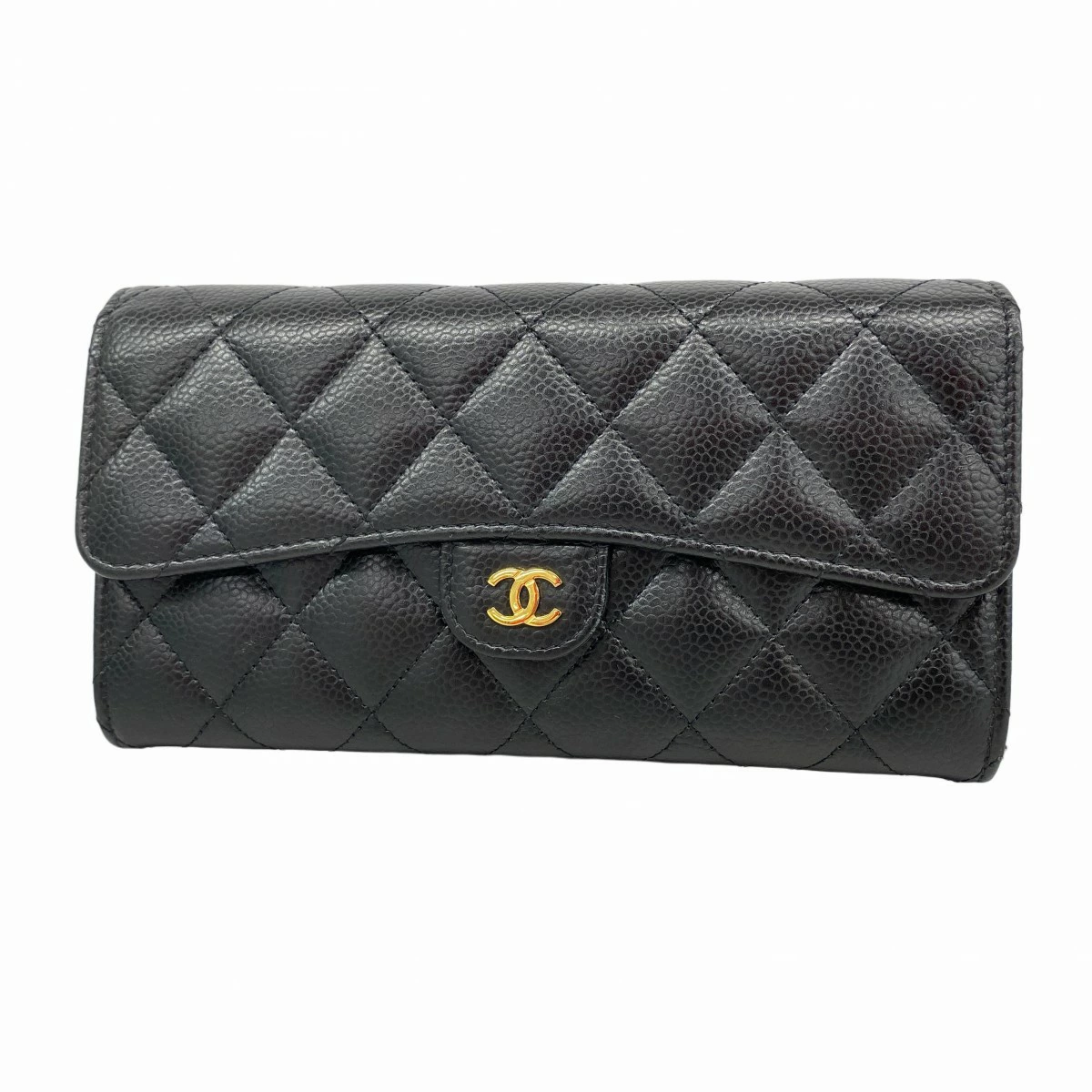 【5od4428-h】シャネル 長財布 マトラッセ キャビアスキン ブラック ゴールド金具【中古】レディース